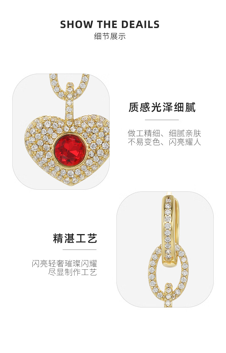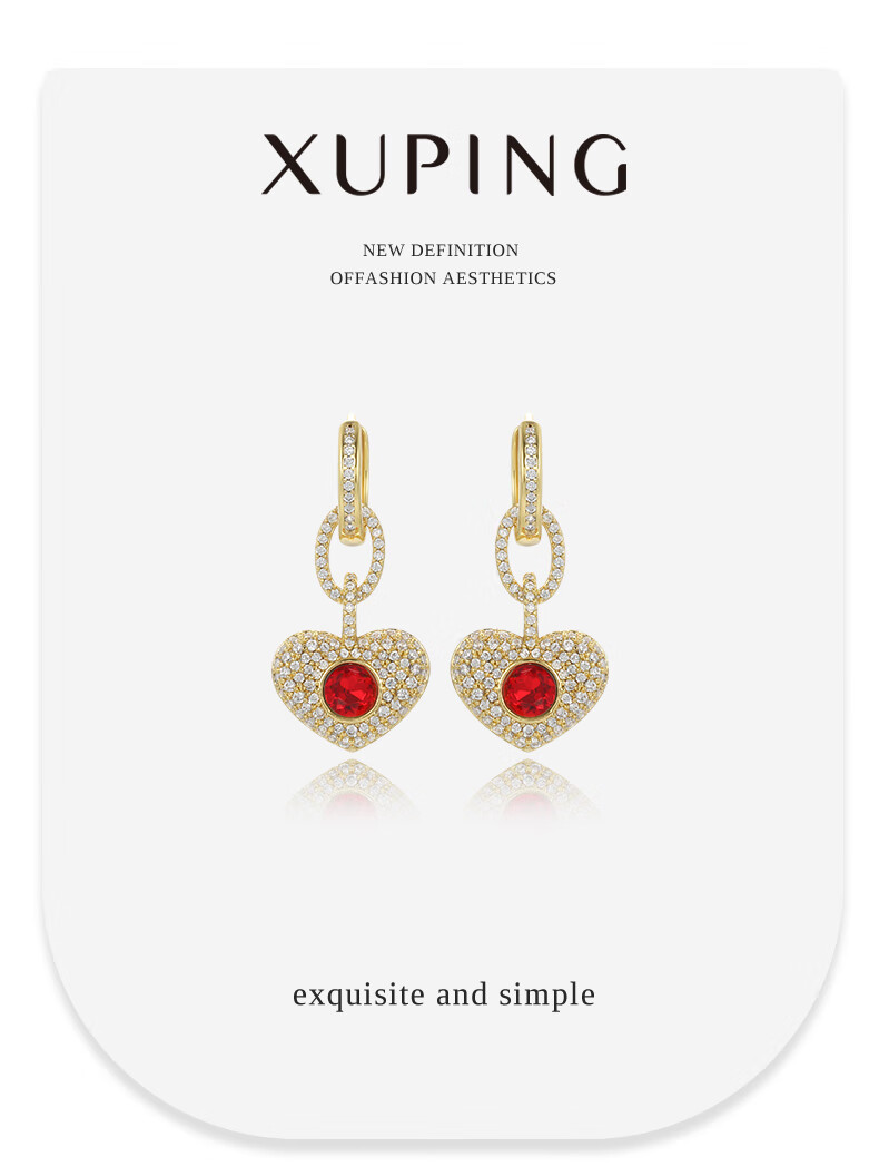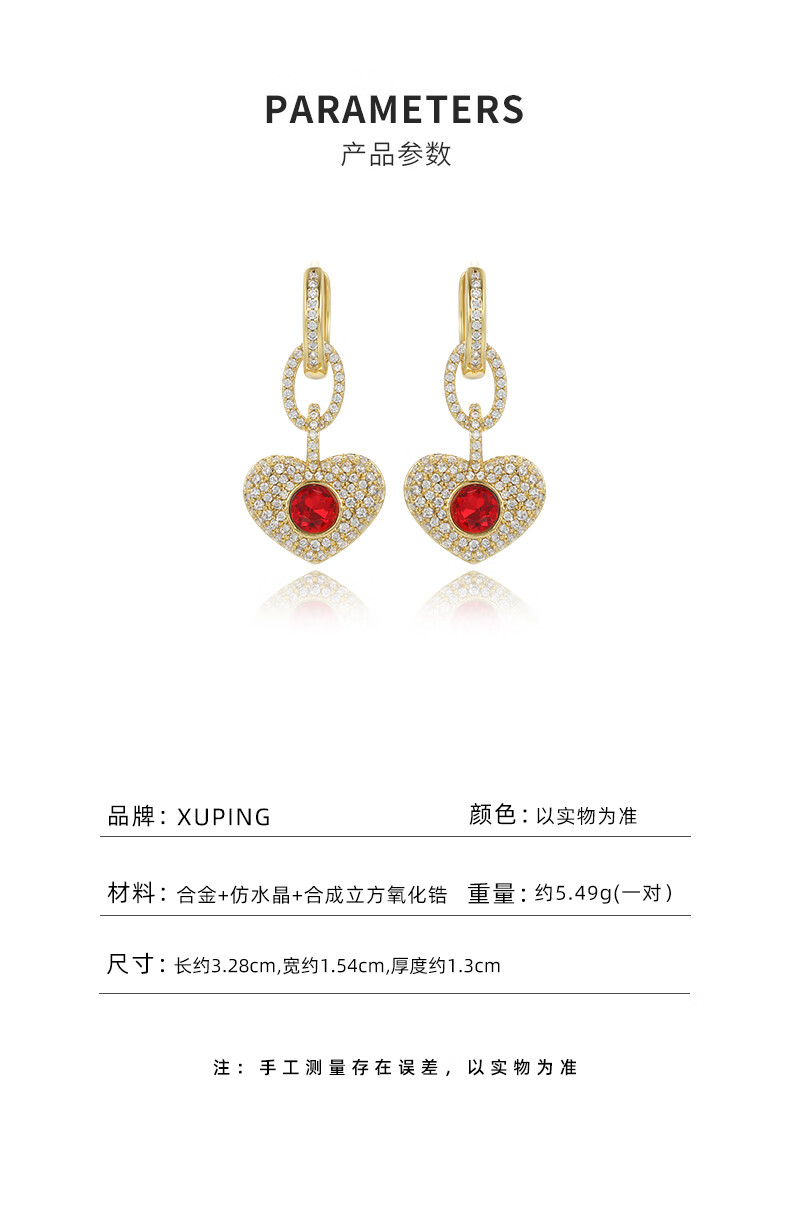 XUPING旭平首饰仿水晶系列时尚气质甜美爱心耳扣送礼饰品X001022092 1号色-红色