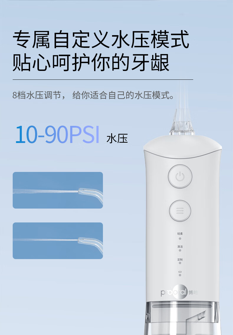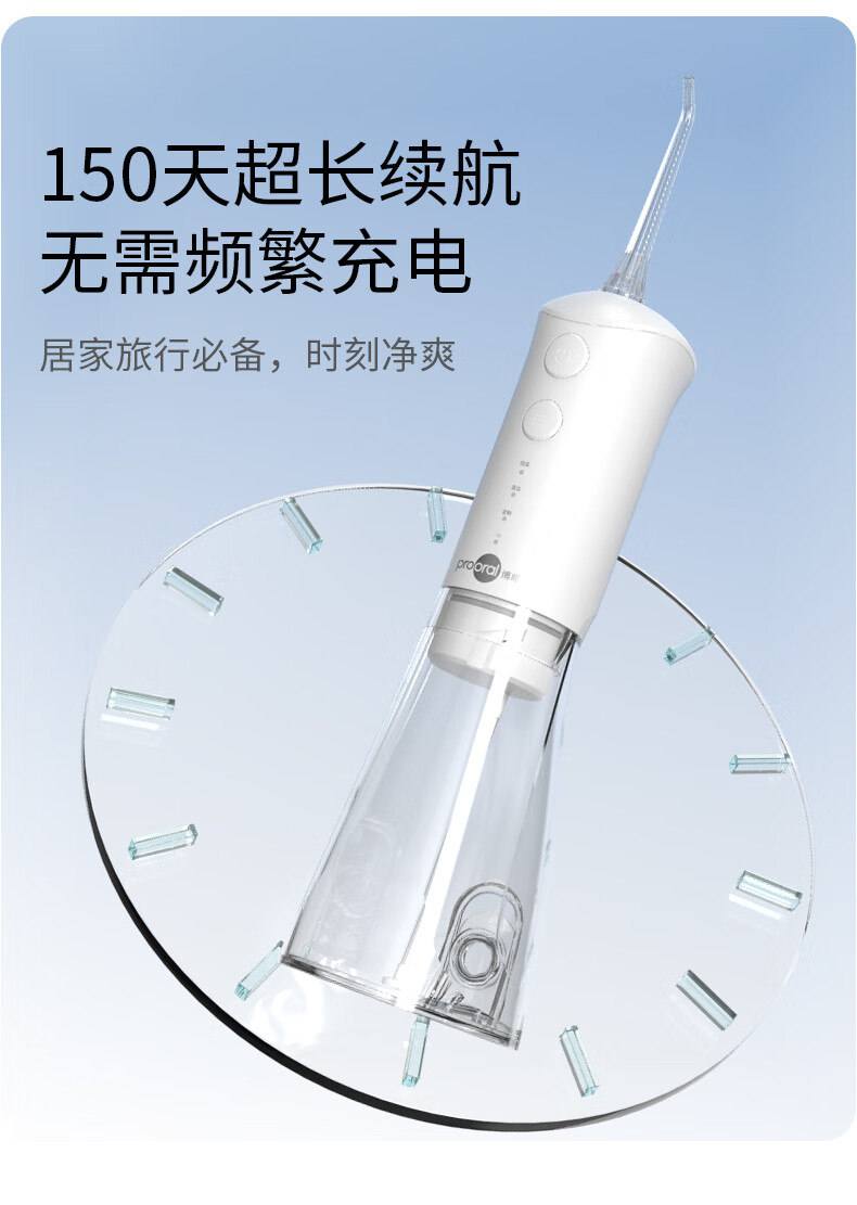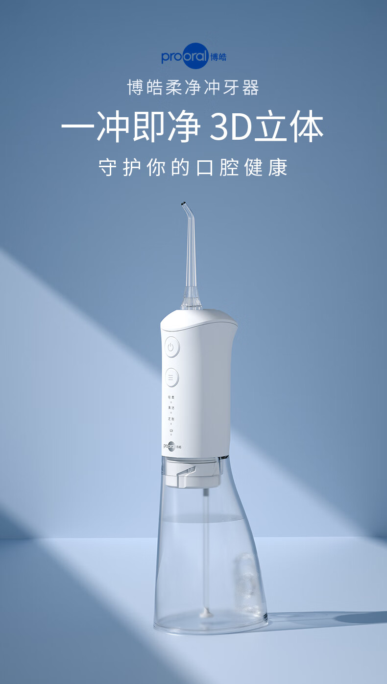 博皓(prooral)冲牙器家用牙齿洁牙器便携式洗牙器冲洗器水牙线 牙缝清洁器牙垢去除器 送情侣朋友父母礼物 F38 象牙白-总共6支喷嘴