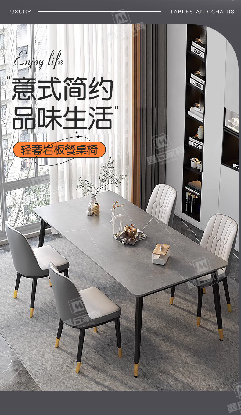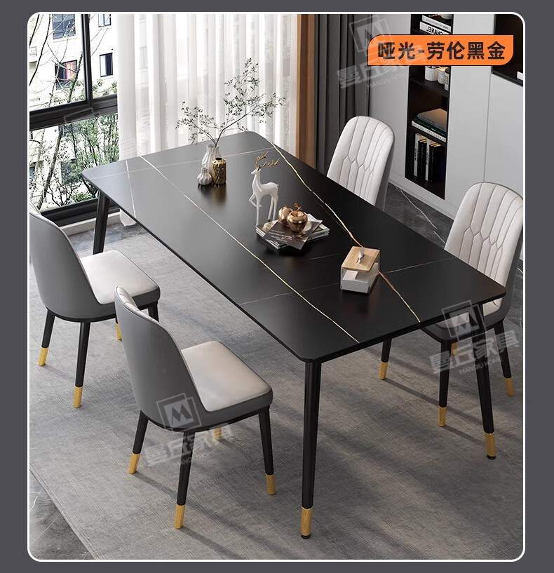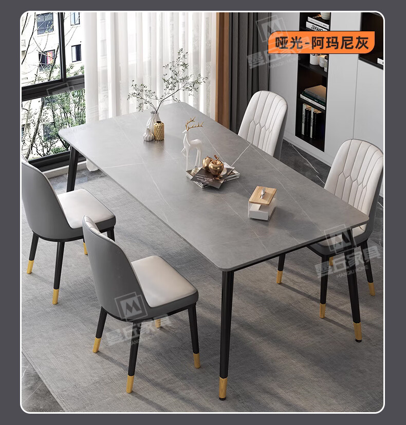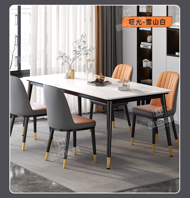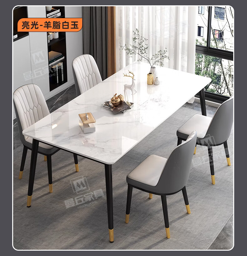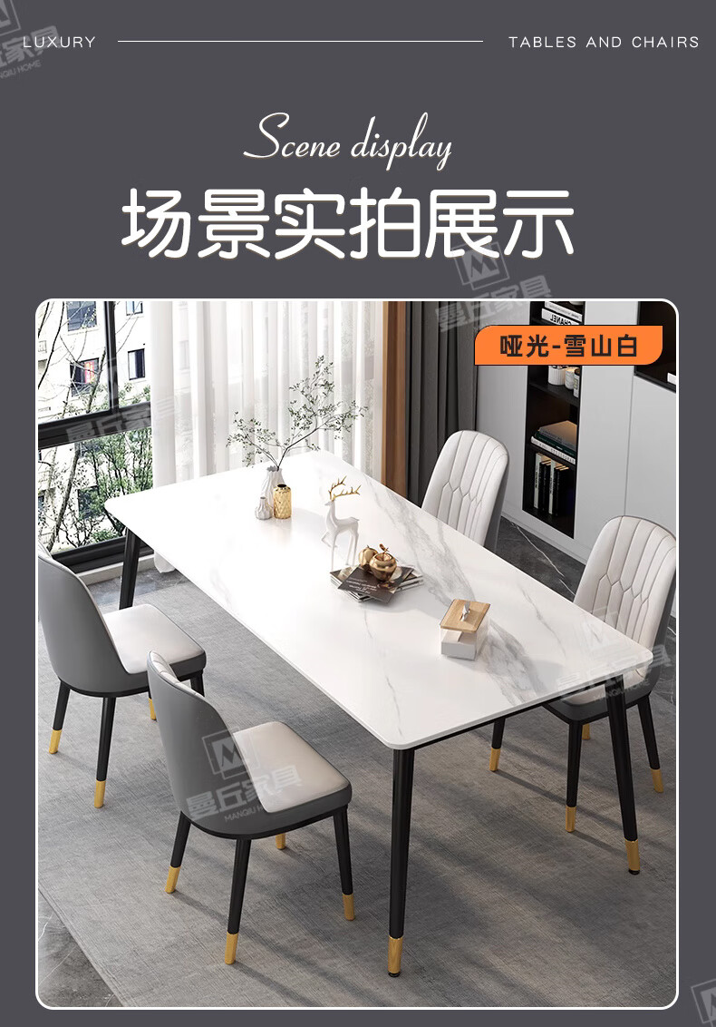 曼丘岩板餐桌家用轻奢现代简约小户型饭桌客厅长方形大理石餐桌椅组合 哑光白12mm(一桌四椅) 1.2m *宽70cm【推荐】
