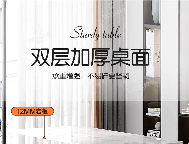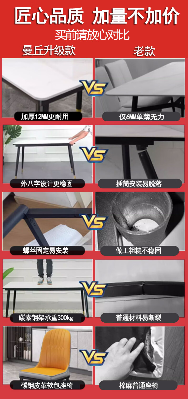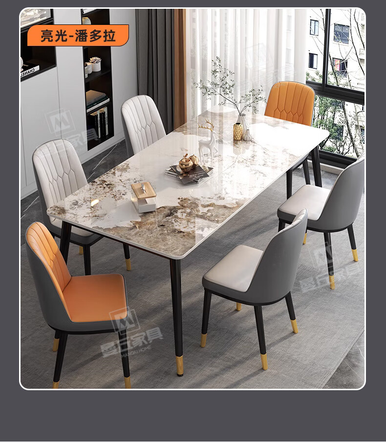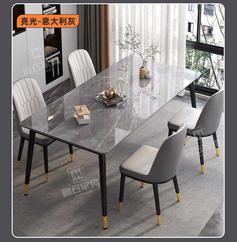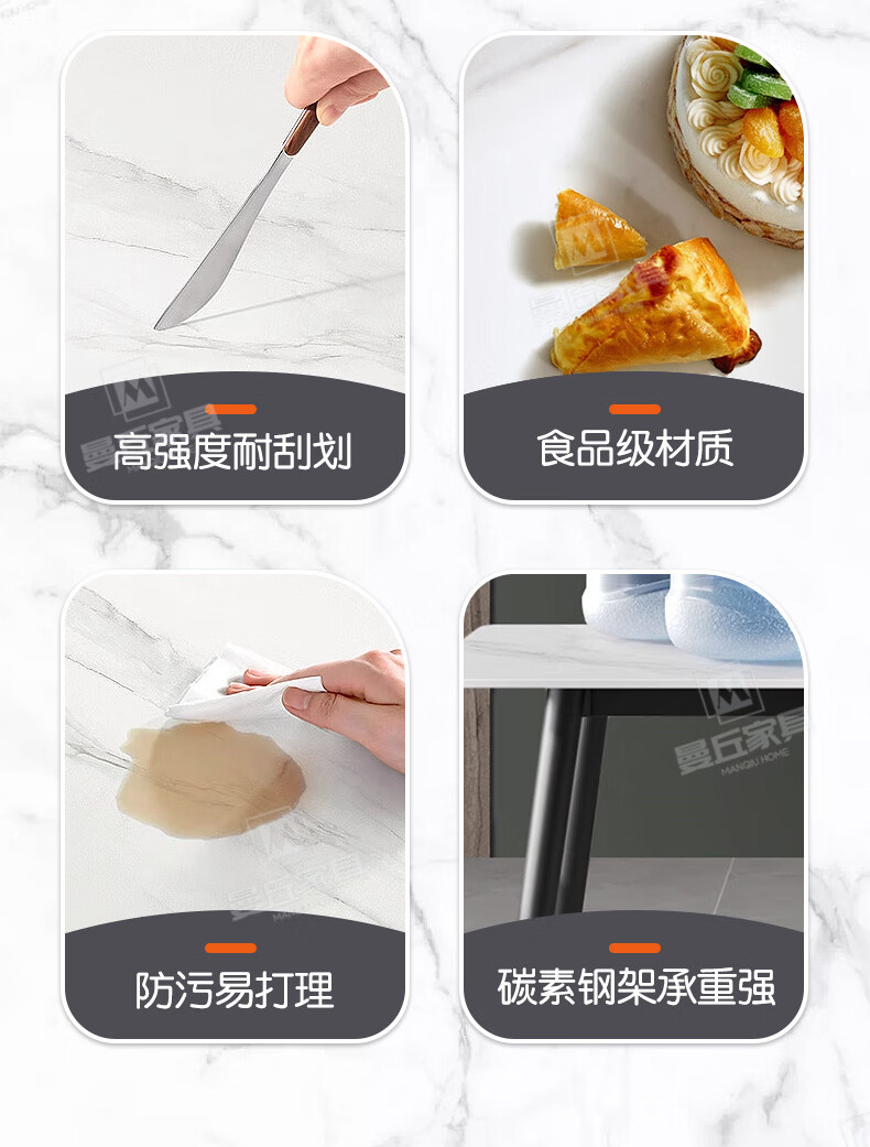 曼丘岩板餐桌家用轻奢现代简约小户型饭桌客厅长方形大理石餐桌椅组合 哑光白12mm(一桌四椅) 1.2m *宽70cm【推荐】