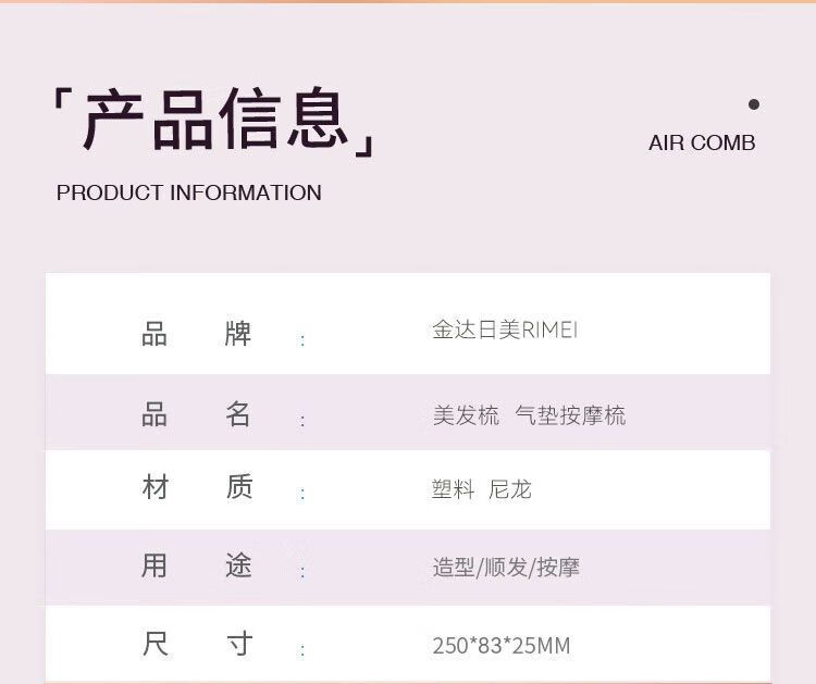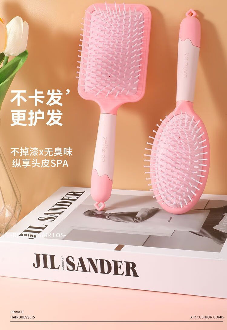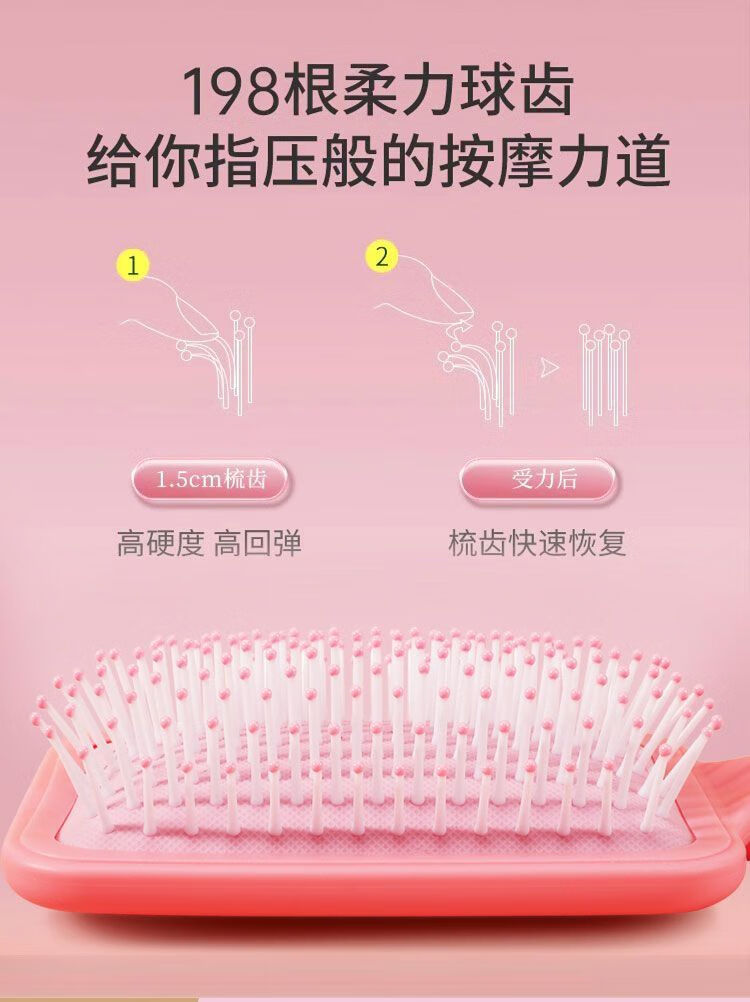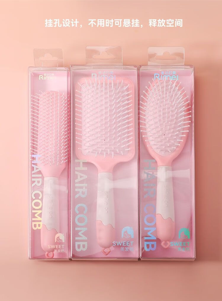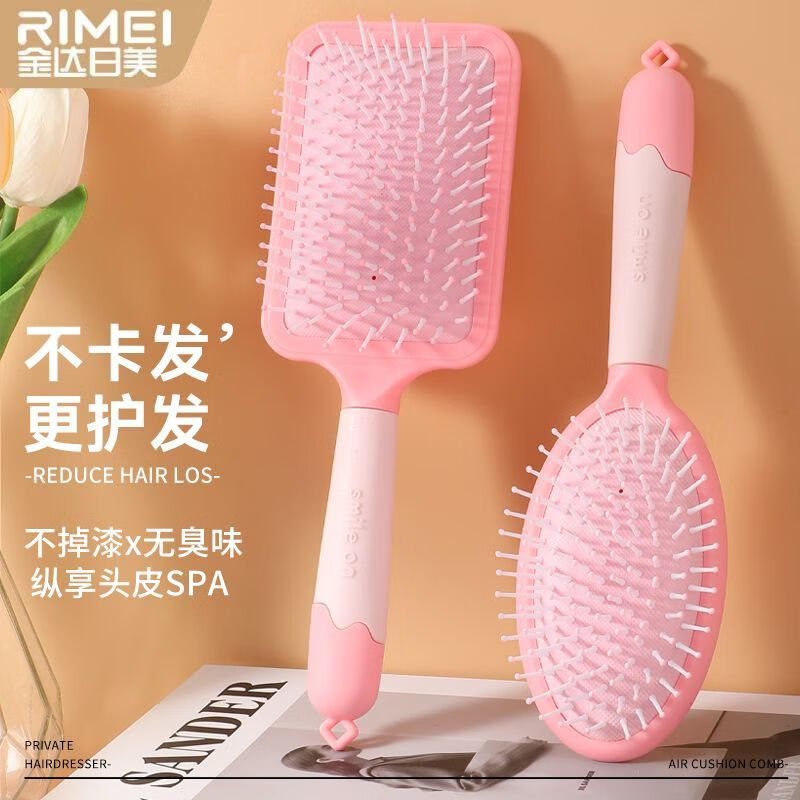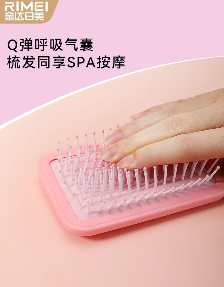 金达日美梳子气垫按摩梳全套家用卷发气囊排骨头皮经络梳头梳子蓬松神器 RIMEI-粉色圆形气垫按摩梳 1支