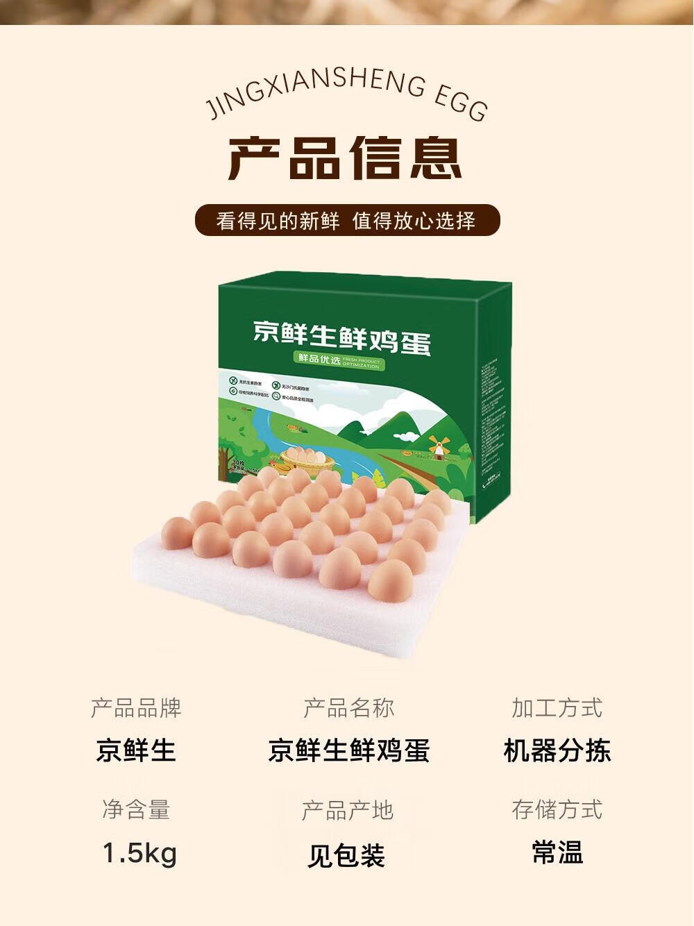 京鲜生 无抗保洁鲜鸡蛋30枚/盒 健康轻食 礼盒送礼 1.5kg/盒 源头直发