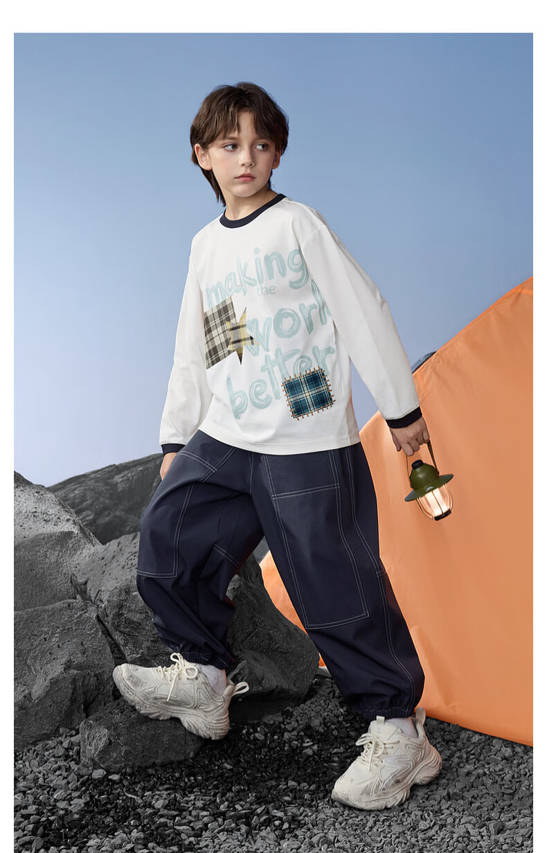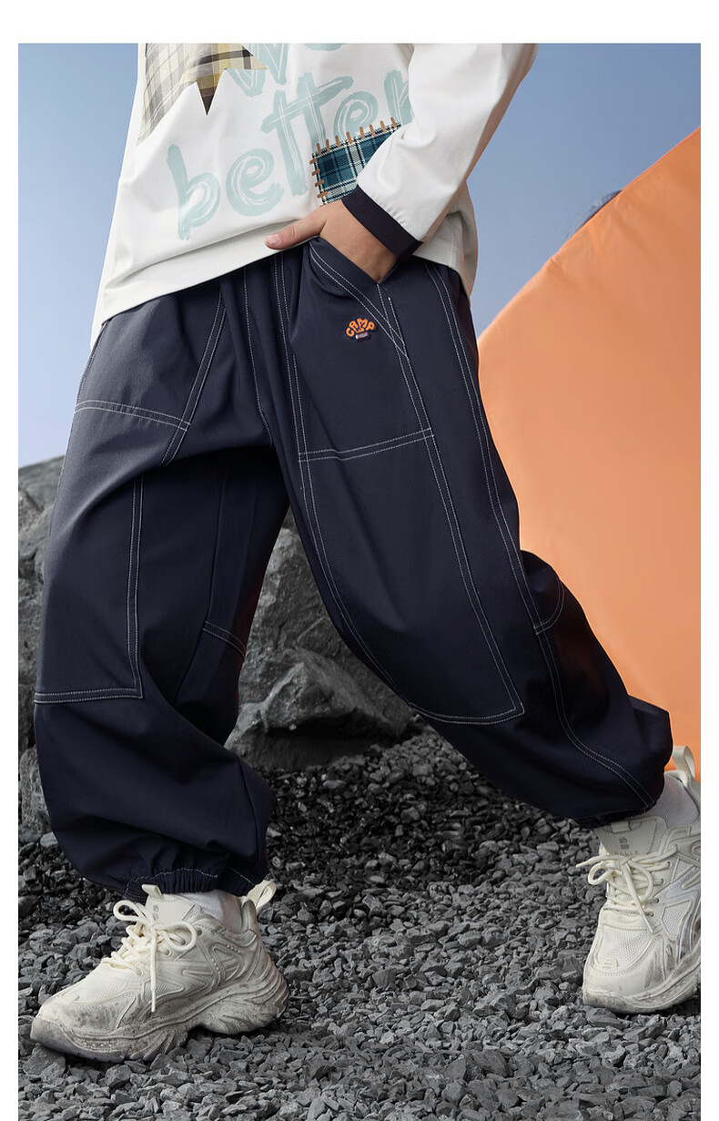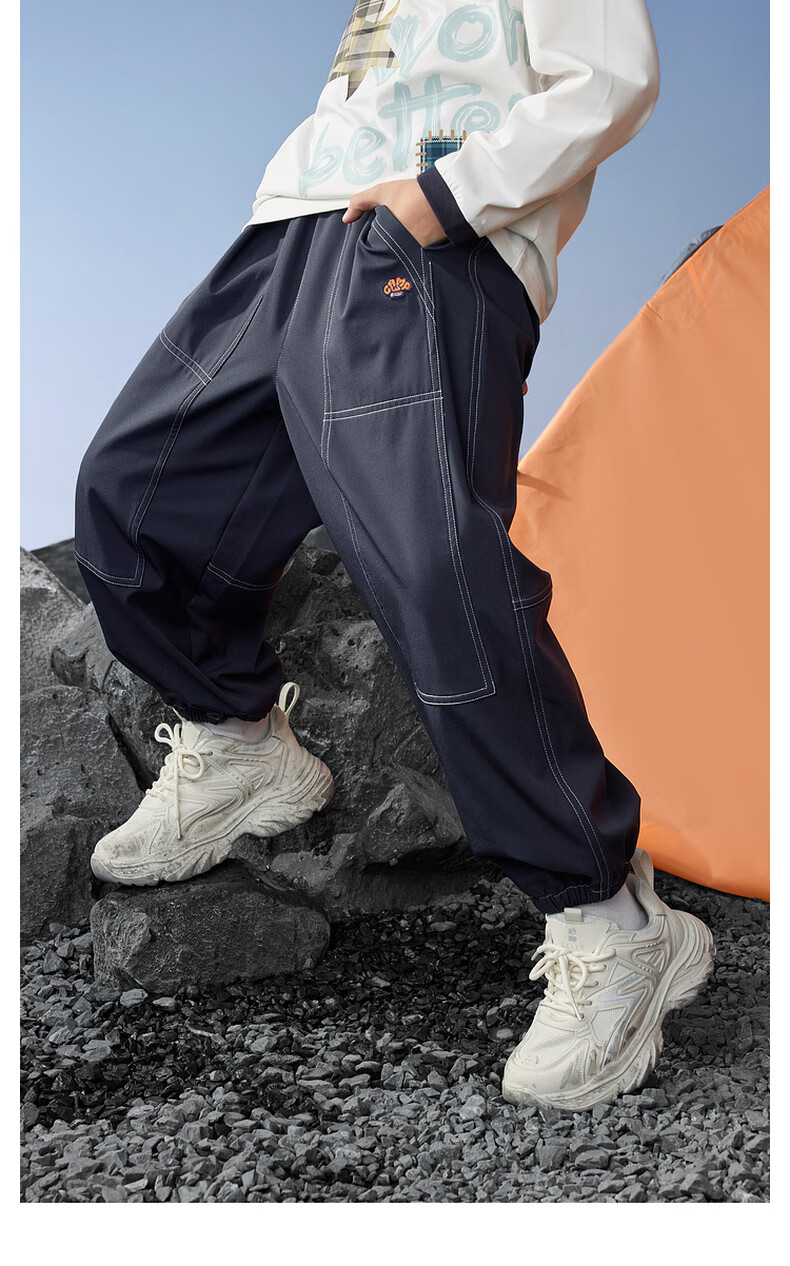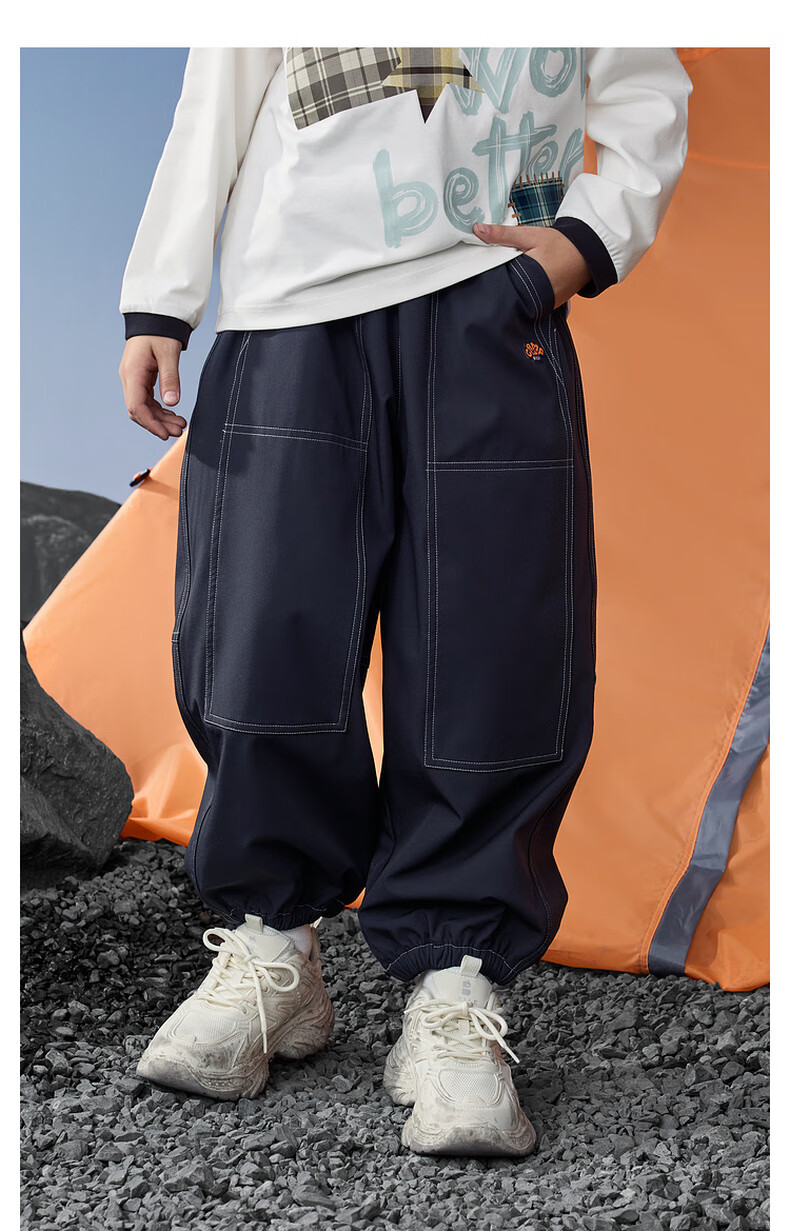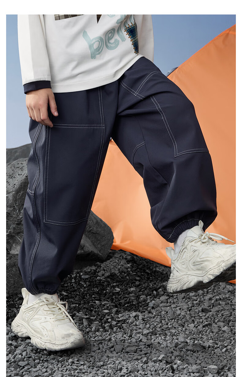 马骑顿(MQD)男童25秋新款户外工装裤露营登山束脚裤简约亲肤休闲裤 藏青 150