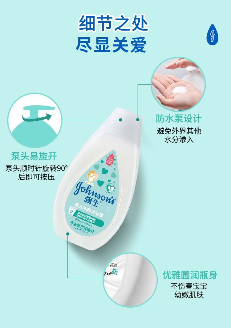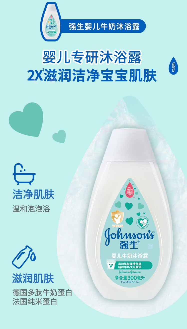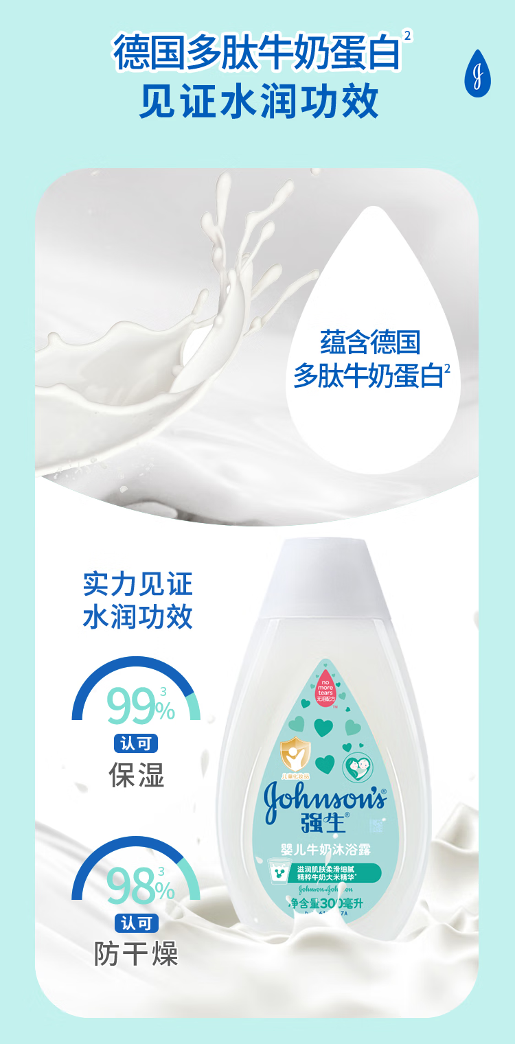 强生(Johnson)婴儿牛奶沐浴露300ml 宝宝儿童青少年沐浴保湿乳液全家可用旅行装