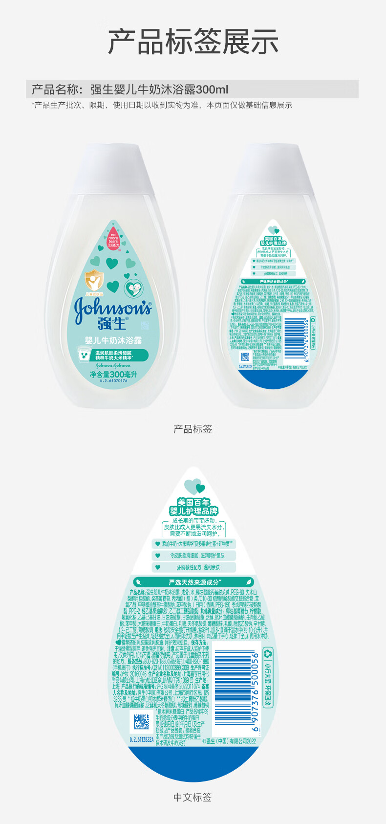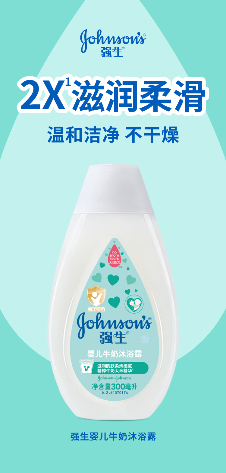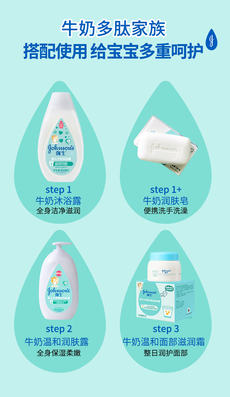 强生(Johnson)婴儿牛奶沐浴露300ml 宝宝儿童青少年沐浴保湿乳液全家可用旅行装