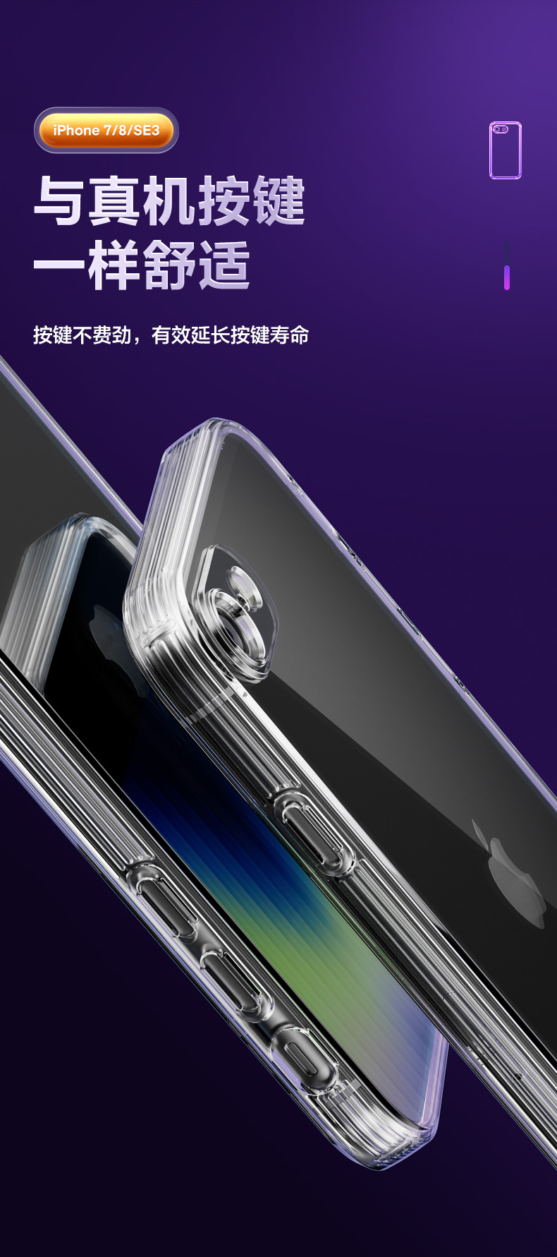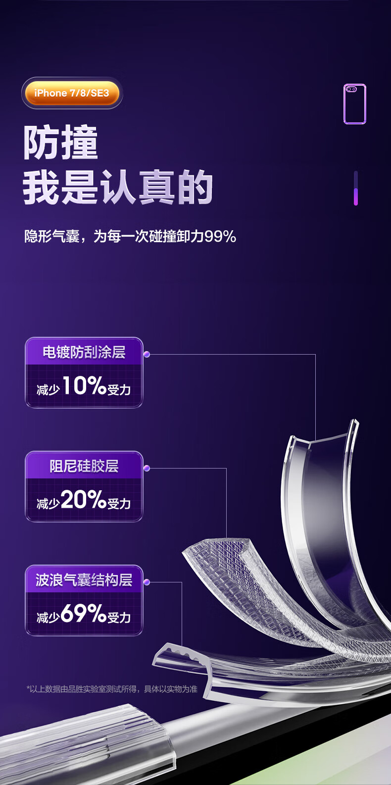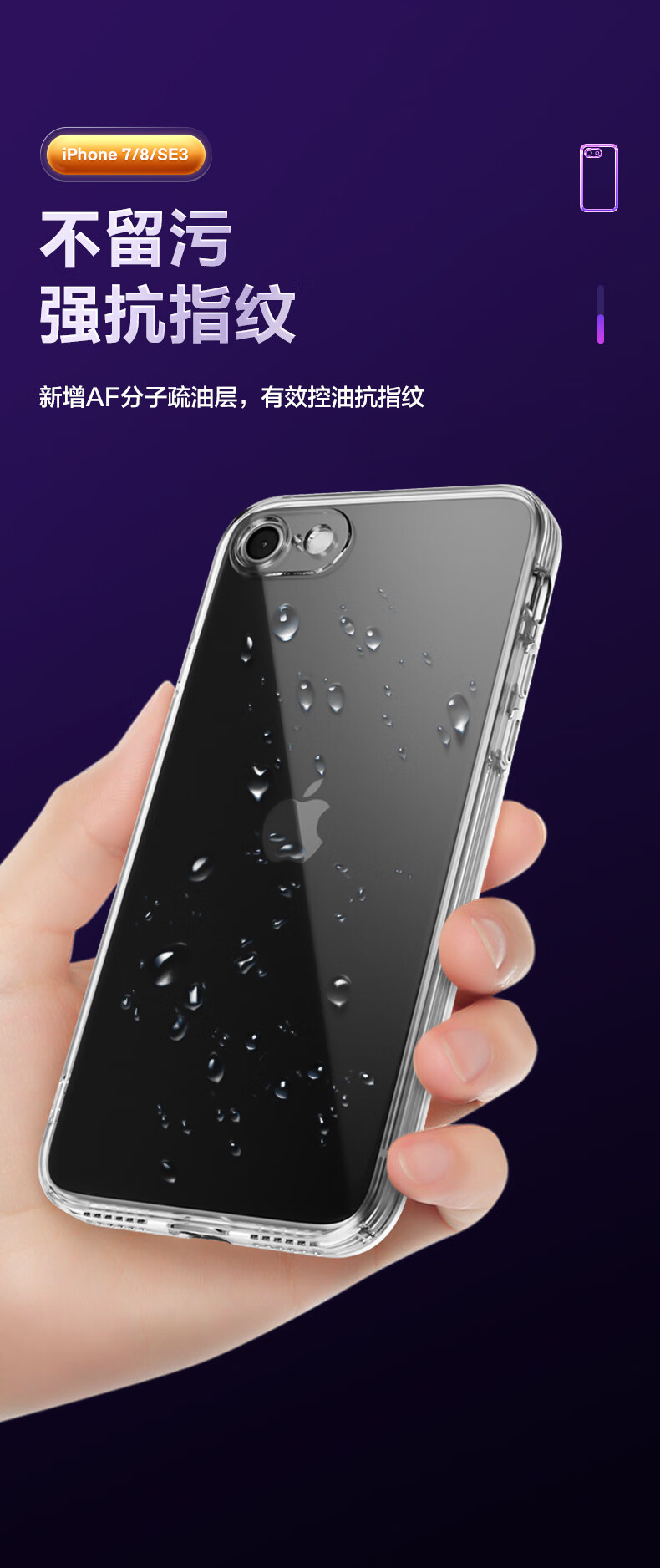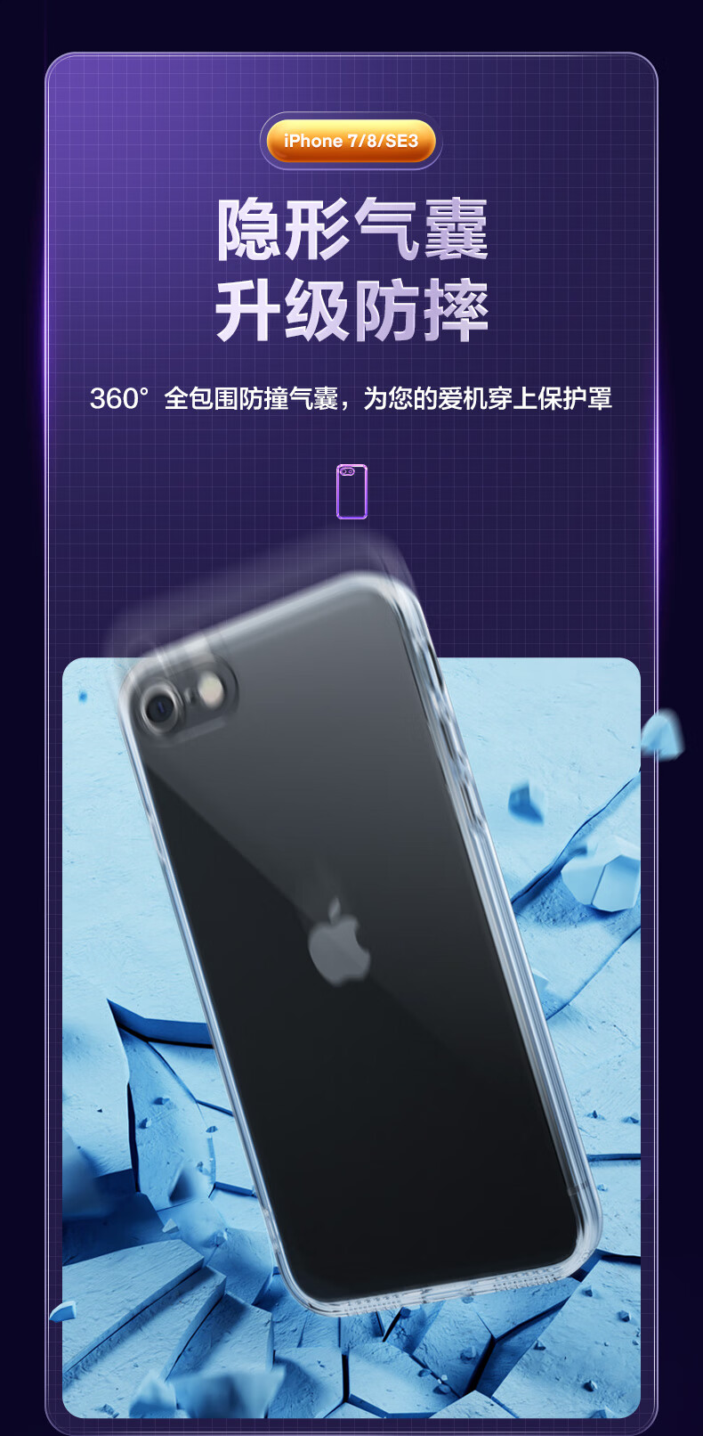 品胜 适用苹果SE3/8/7手机壳 防摔保护壳iphone se3/8/7保护套防摔抗指纹手机套软壳 透明