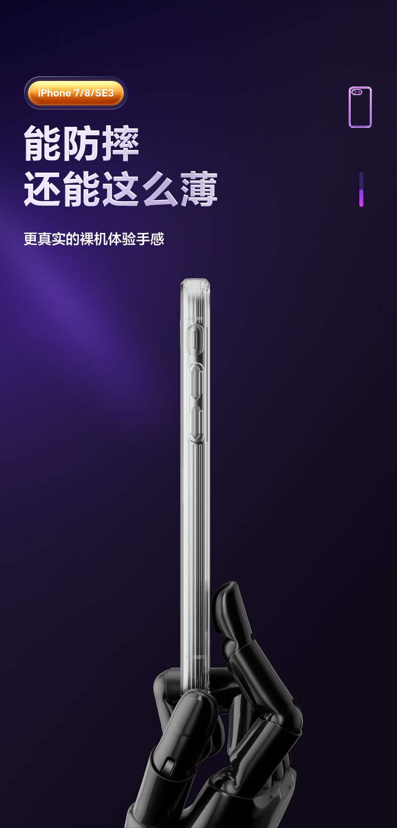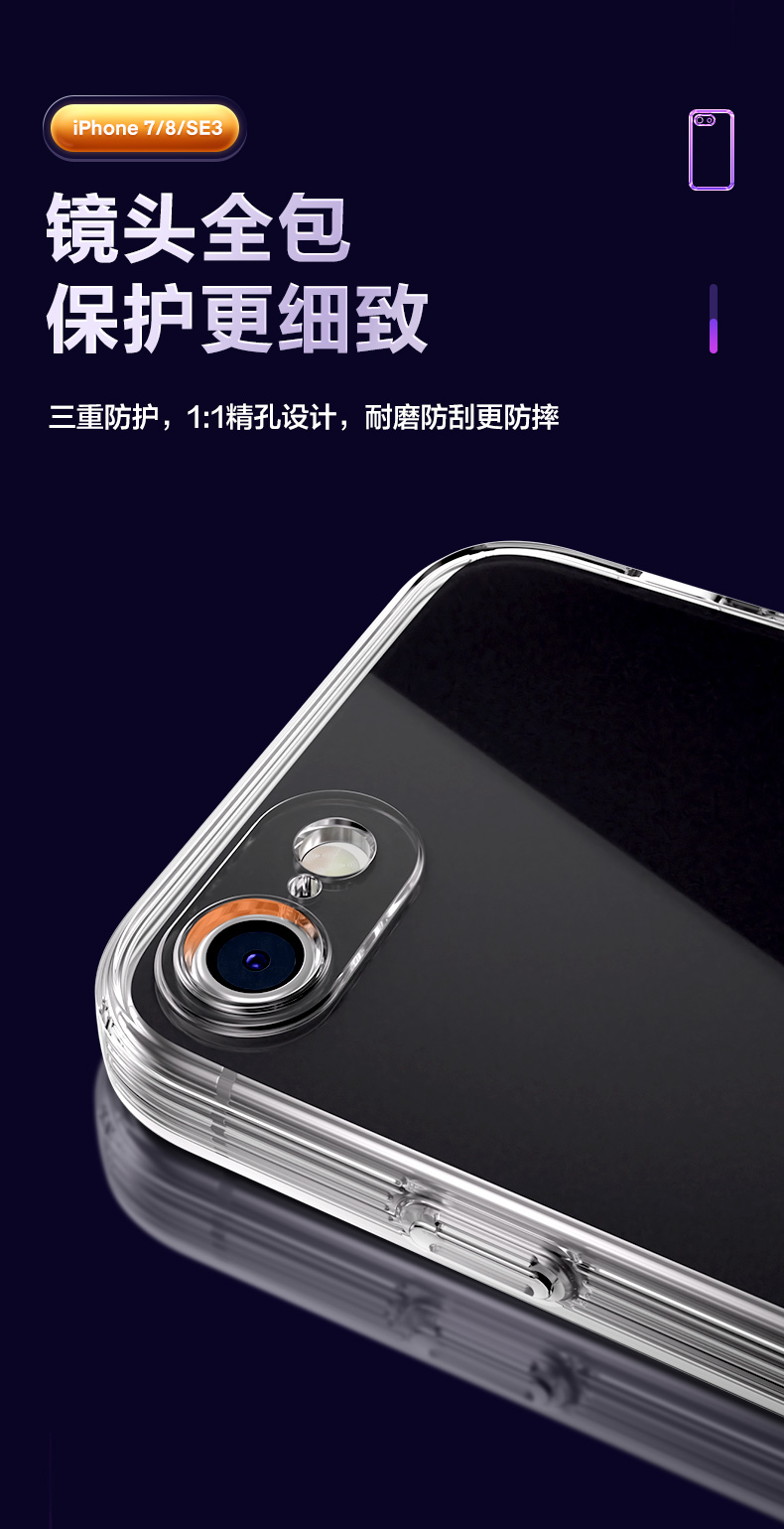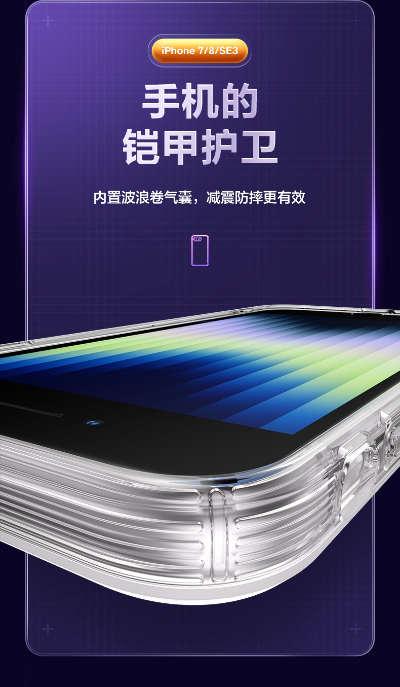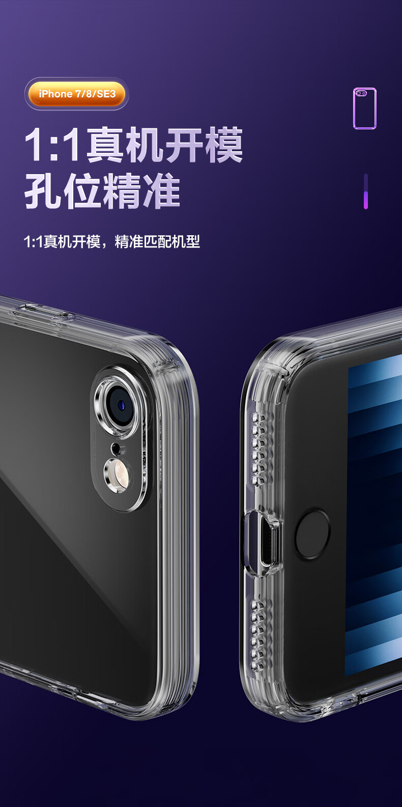 品胜 适用苹果SE3/8/7手机壳 防摔保护壳iphone se3/8/7保护套防摔抗指纹手机套软壳 透明
