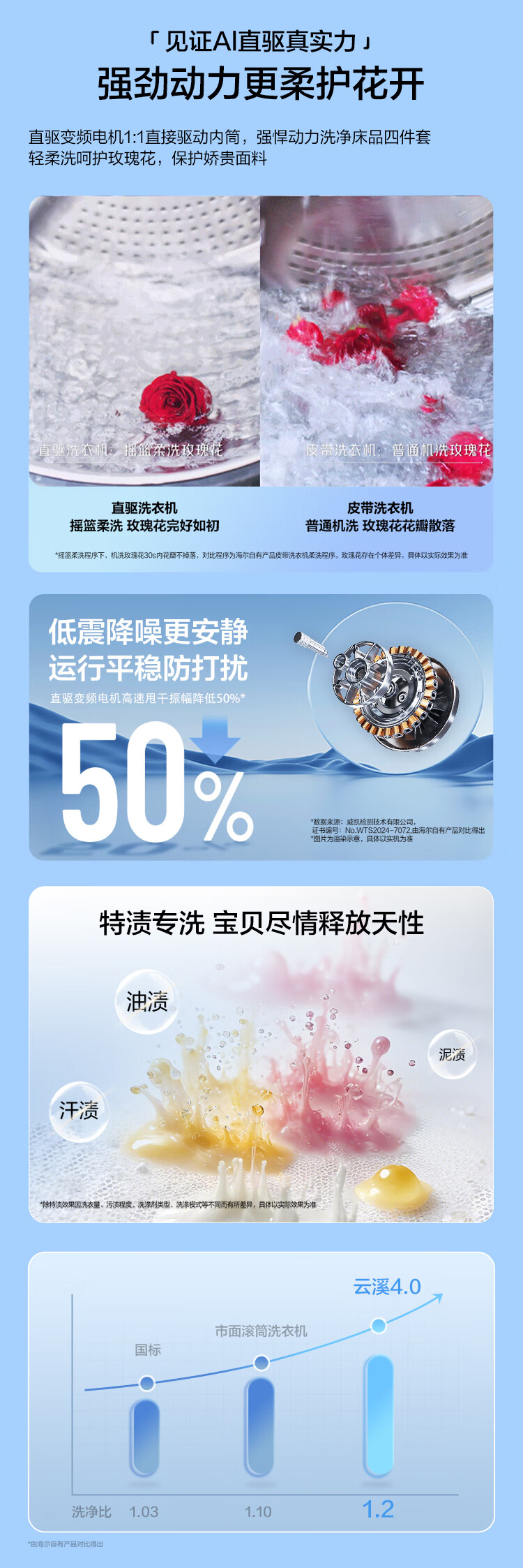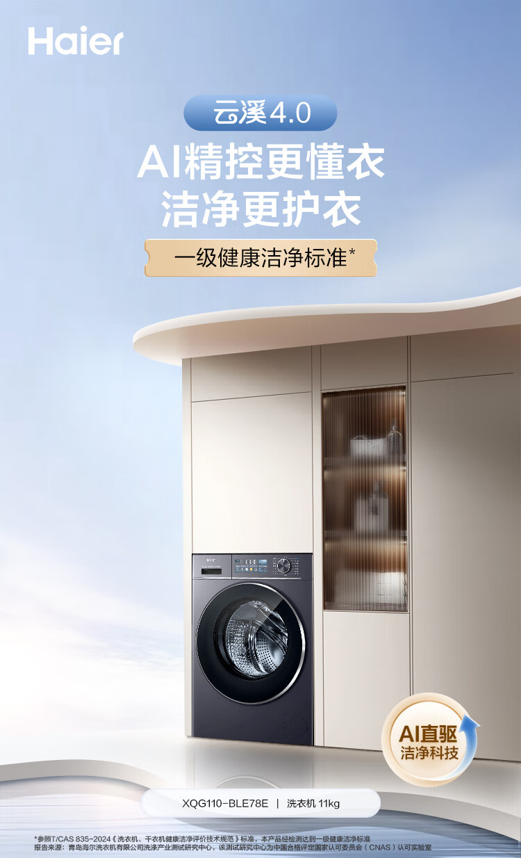 海尔(Haier)【行业TOP】云溪4.0 滚筒洗衣机 全自动大容量 家用直驱精华洗一级能效家电国家补贴20%洗衣机 10Kg灰色376丨直驱精华洗双智投光等离子