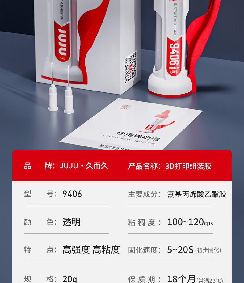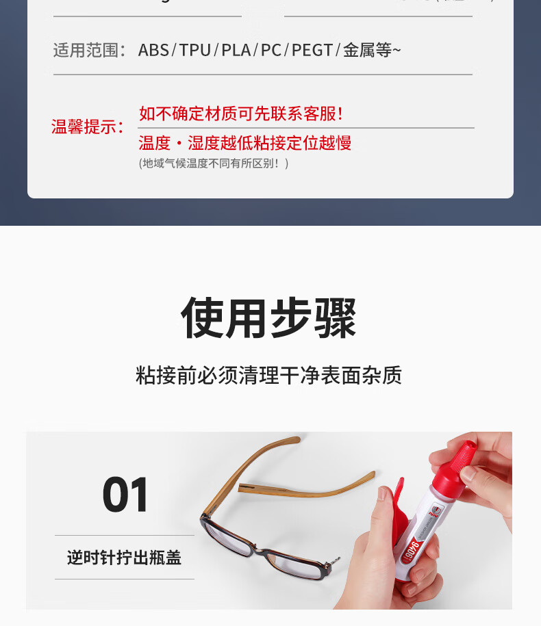 久而久3d打印胶水专用粘手办PLA PETG ABS PA PVA TPU塑料组装固定胶强力快干透明高韧性万能强力模型胶 3D打印组装专用胶【2瓶装+50个针头】