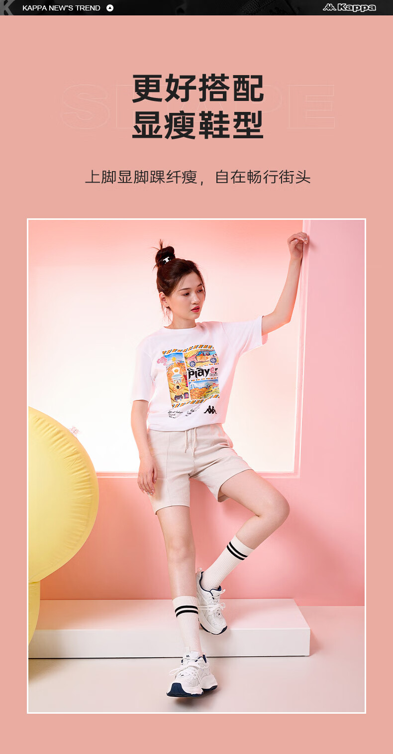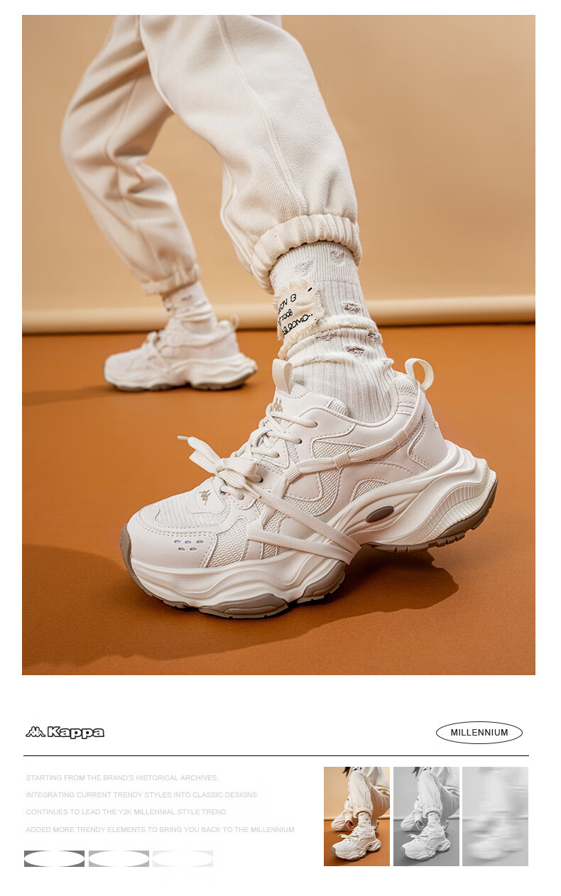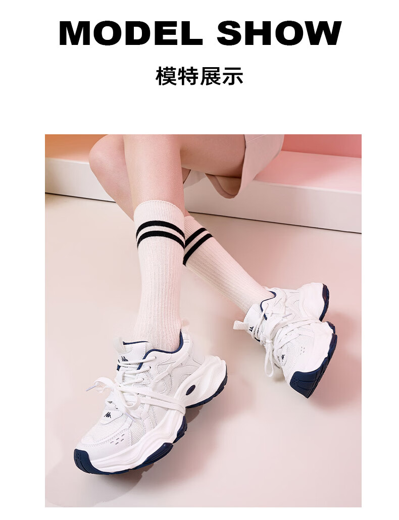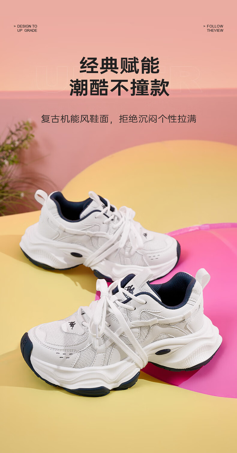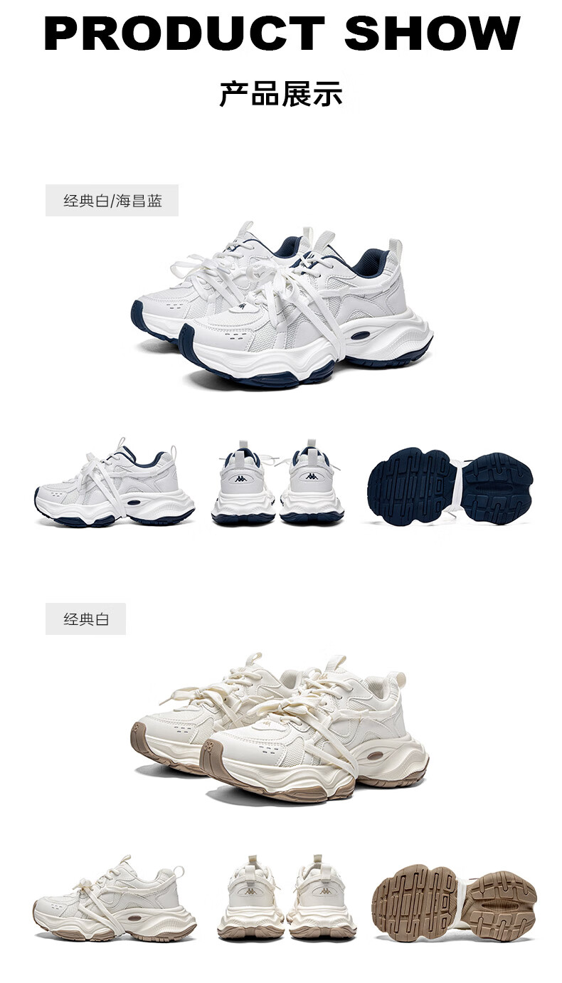 KAPPA卡帕女鞋百搭老爹鞋女2025冬季新款轻便休闲鞋软底增高运动鞋子女 经典白/海昌蓝 38