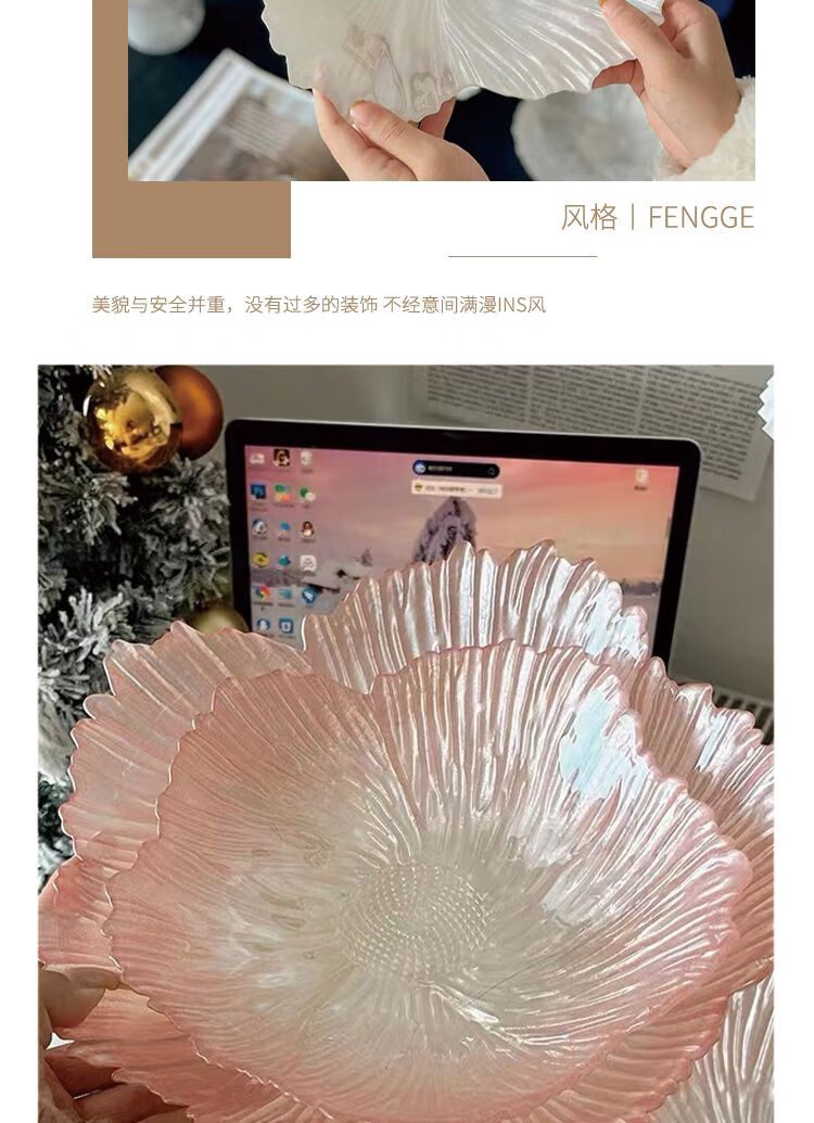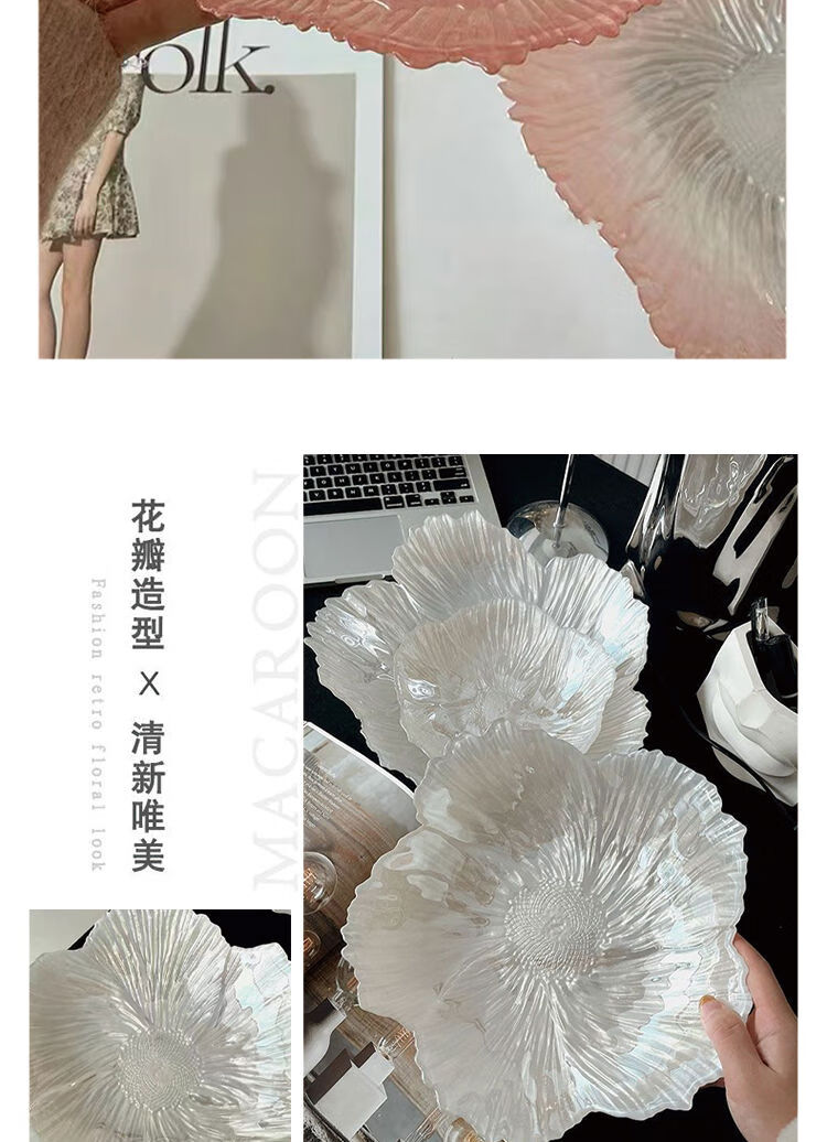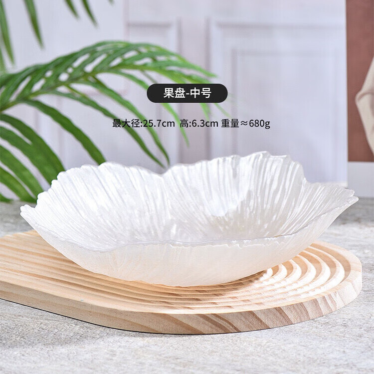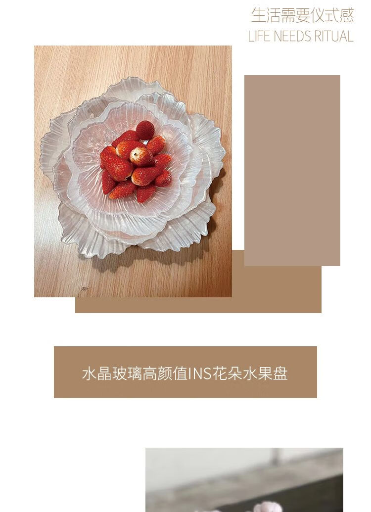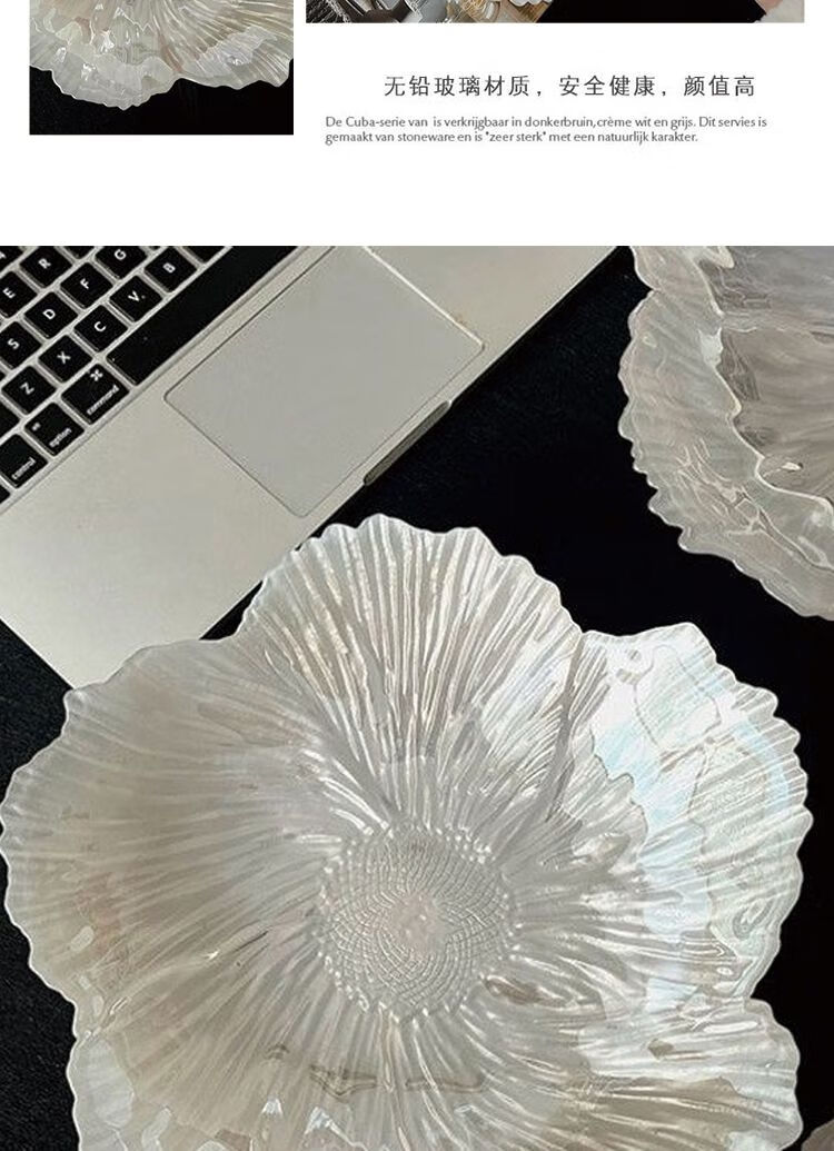 简漾玻璃贝壳果盘家用高颜值零食盘花朵型水果盘婚礼装饰不规则奶油盘 透明 三件套
