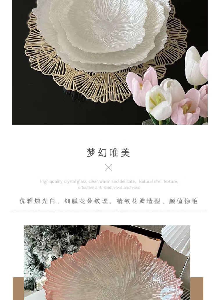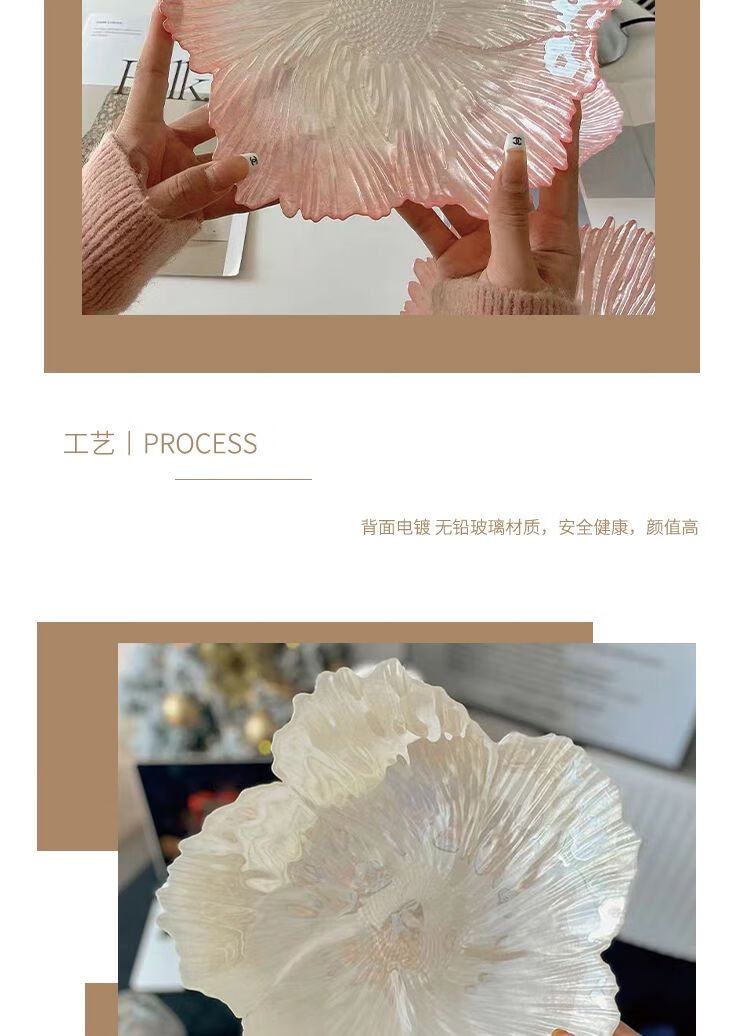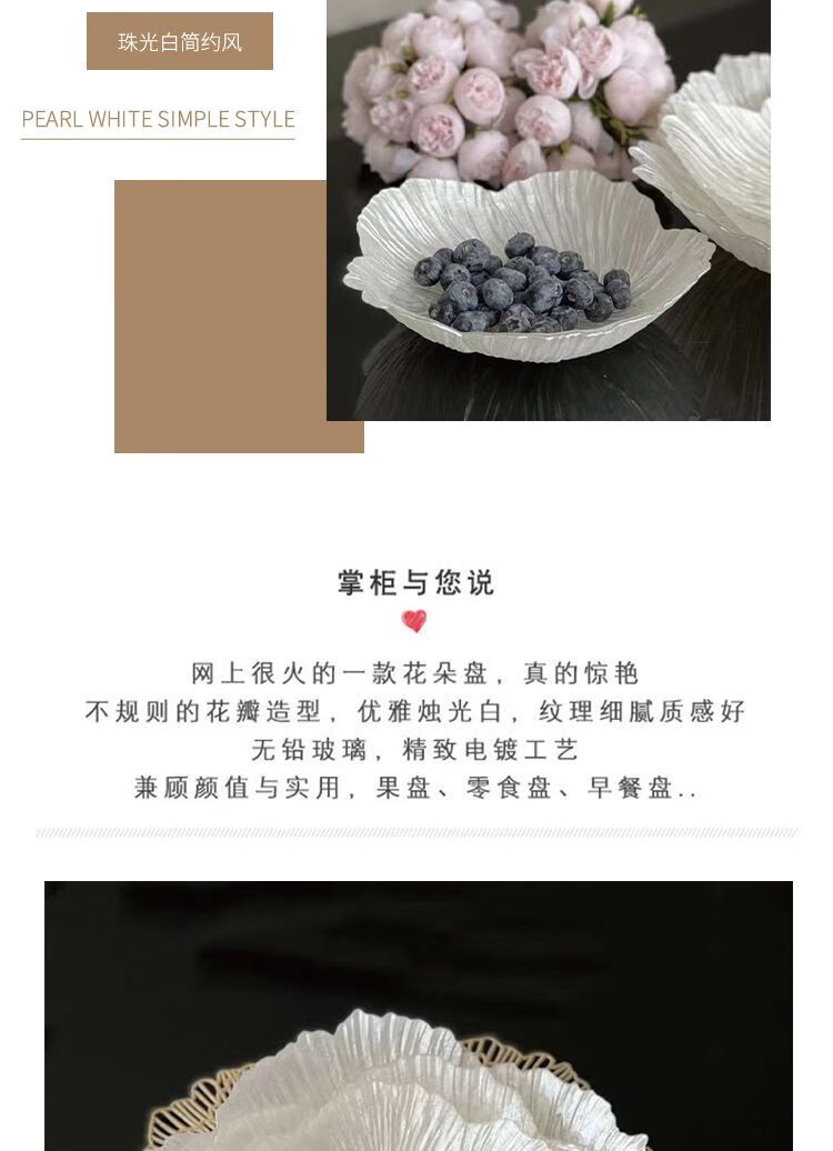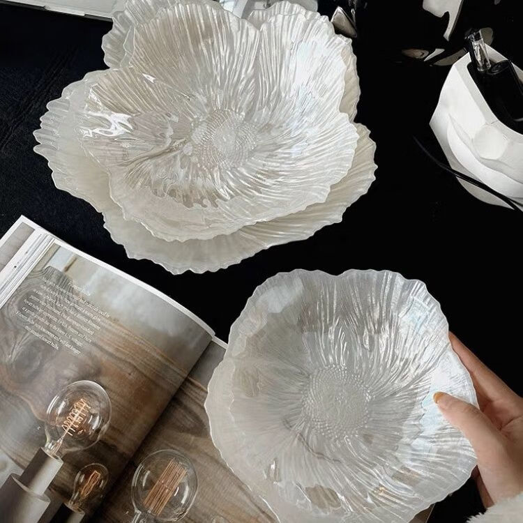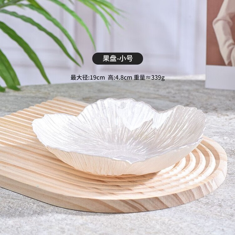 简漾玻璃贝壳果盘家用高颜值零食盘花朵型水果盘婚礼装饰不规则奶油盘 透明 三件套