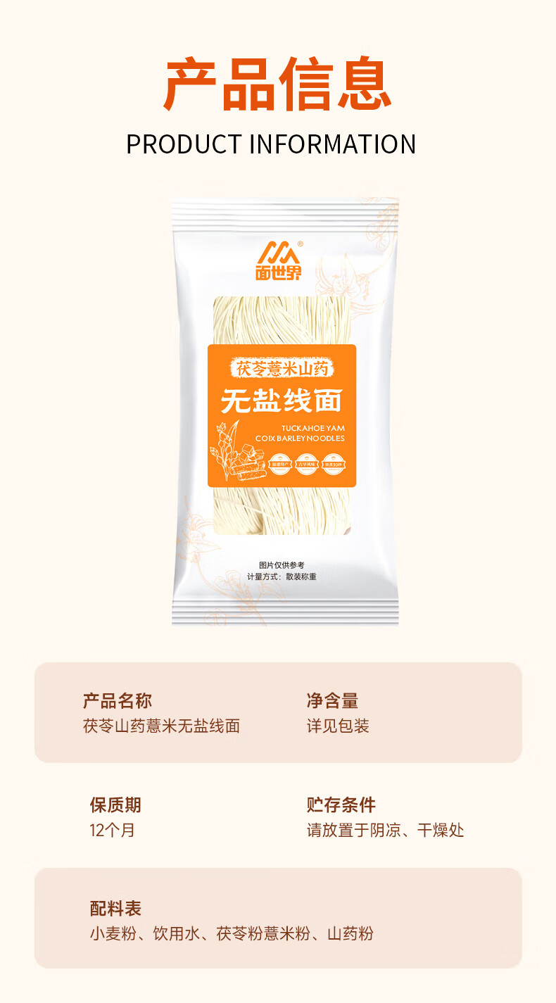 贯池正宗福建线面茯苓薏米山药淮山铁棍福州无盐面线龙须挂面细面线糊 (无盐)茯苓薏米山药线面40g*10包【多人选择】