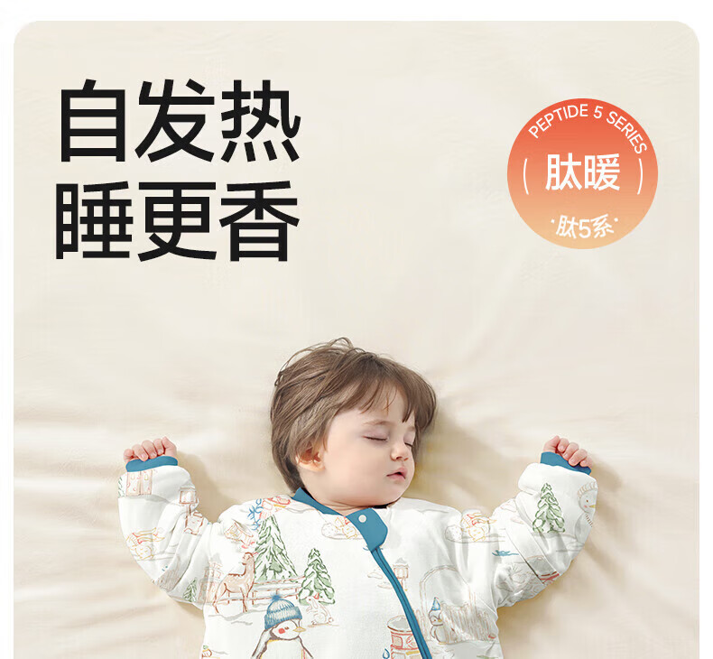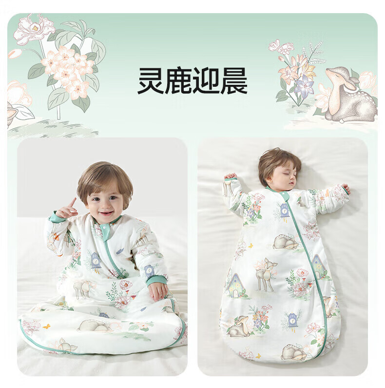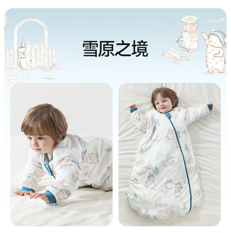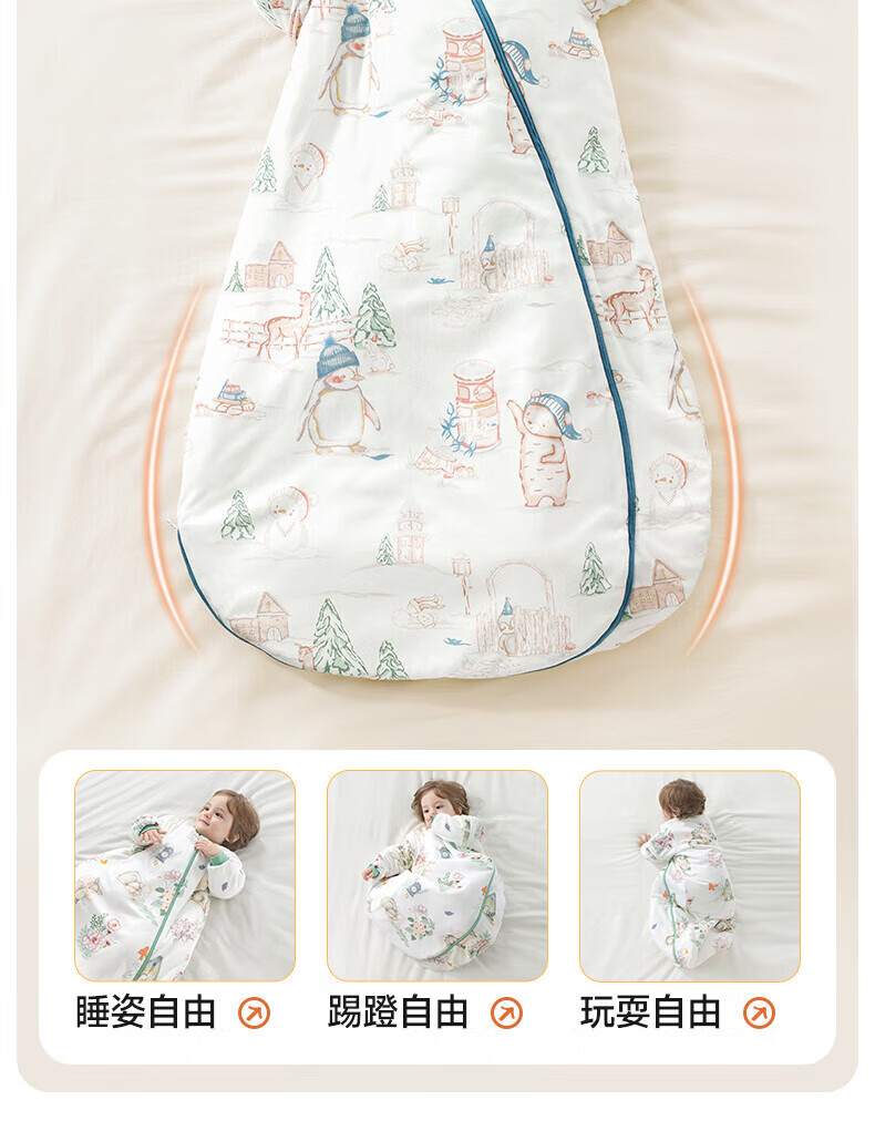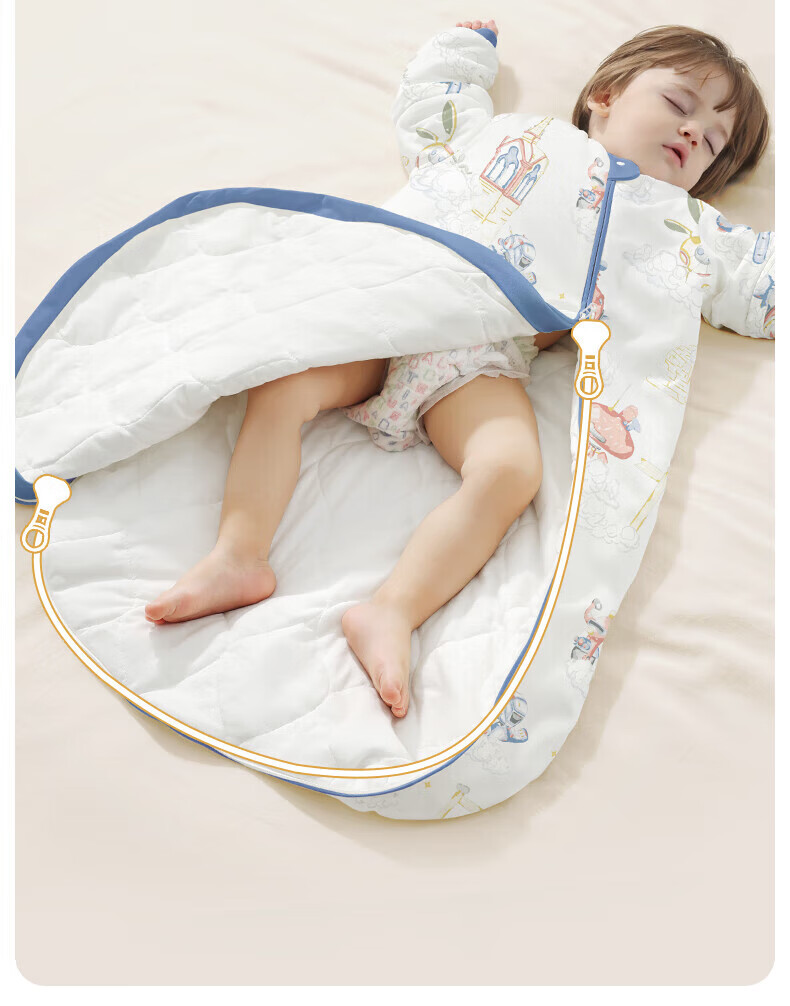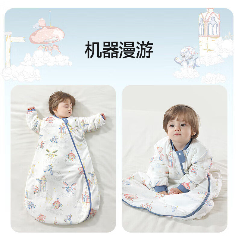 贝肽斯睡袋婴儿春秋恒温新生儿童宝宝睡袋一体式防踢被惊跳包被发热神器 海之微笑【秋冬中厚 10-20°】 M码【适合身高62-85cm】建议年龄9个月-2岁