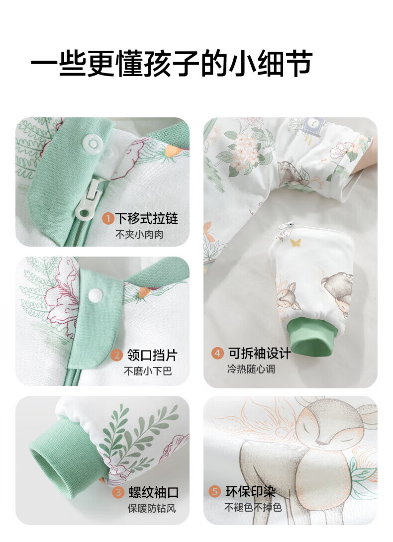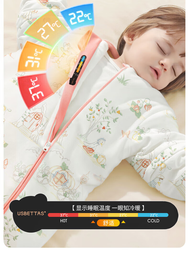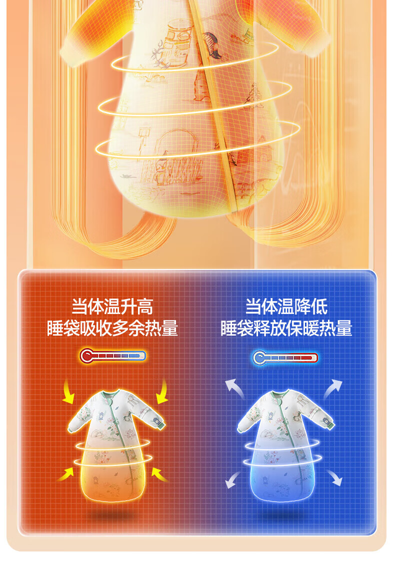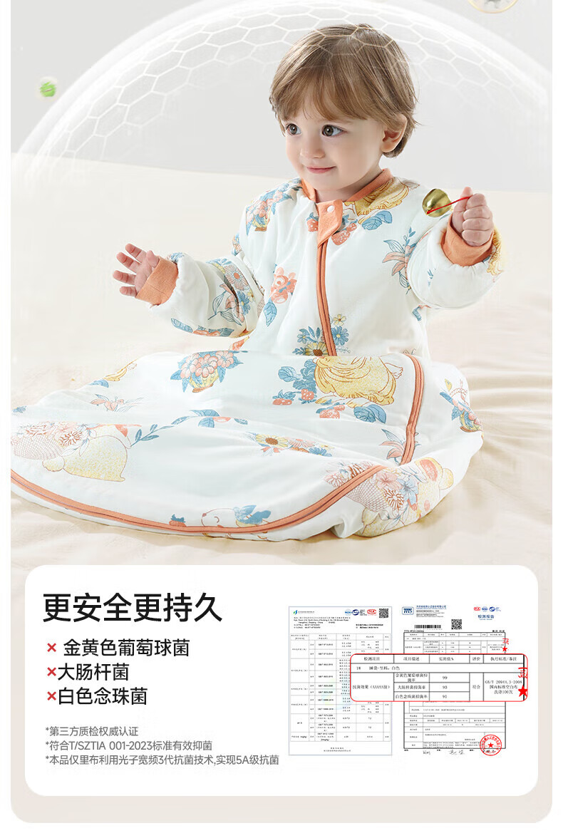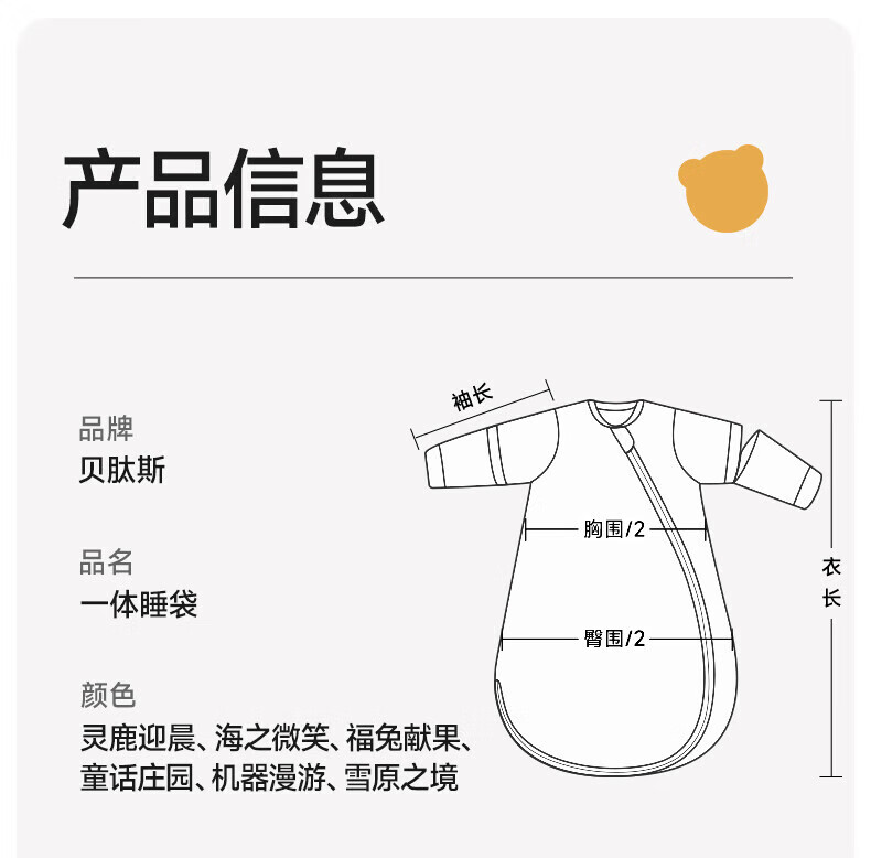 贝肽斯睡袋婴儿春秋恒温新生儿童宝宝睡袋一体式防踢被惊跳包被发热神器 海之微笑【秋冬中厚 10-20°】 M码【适合身高62-85cm】建议年龄9个月-2岁