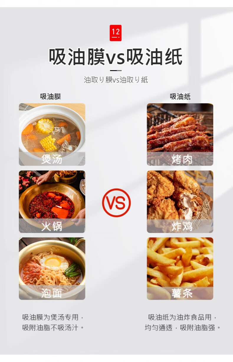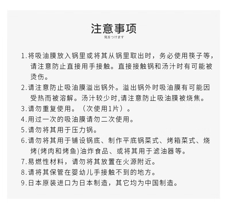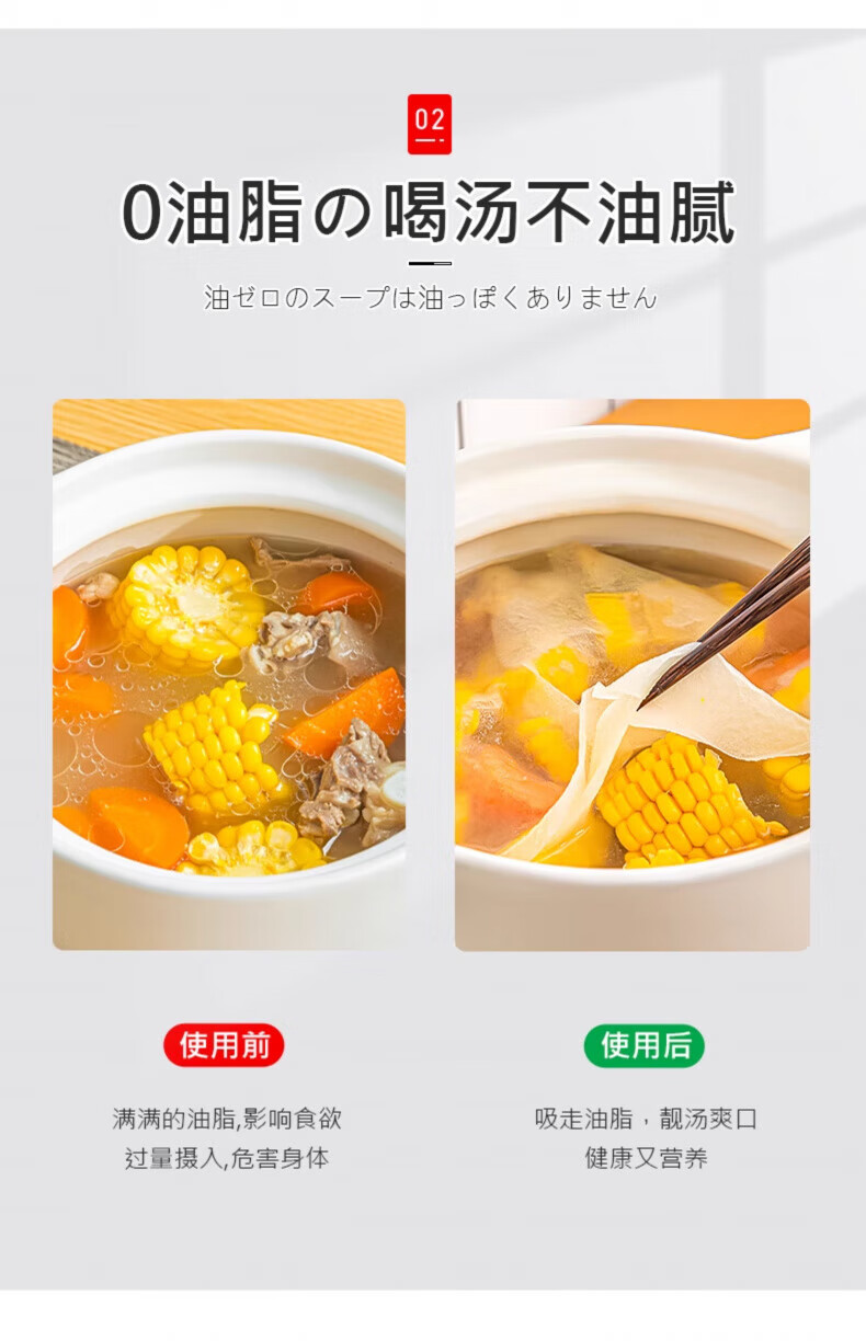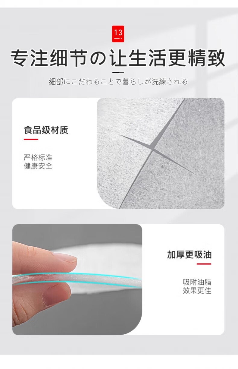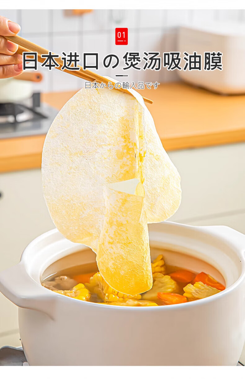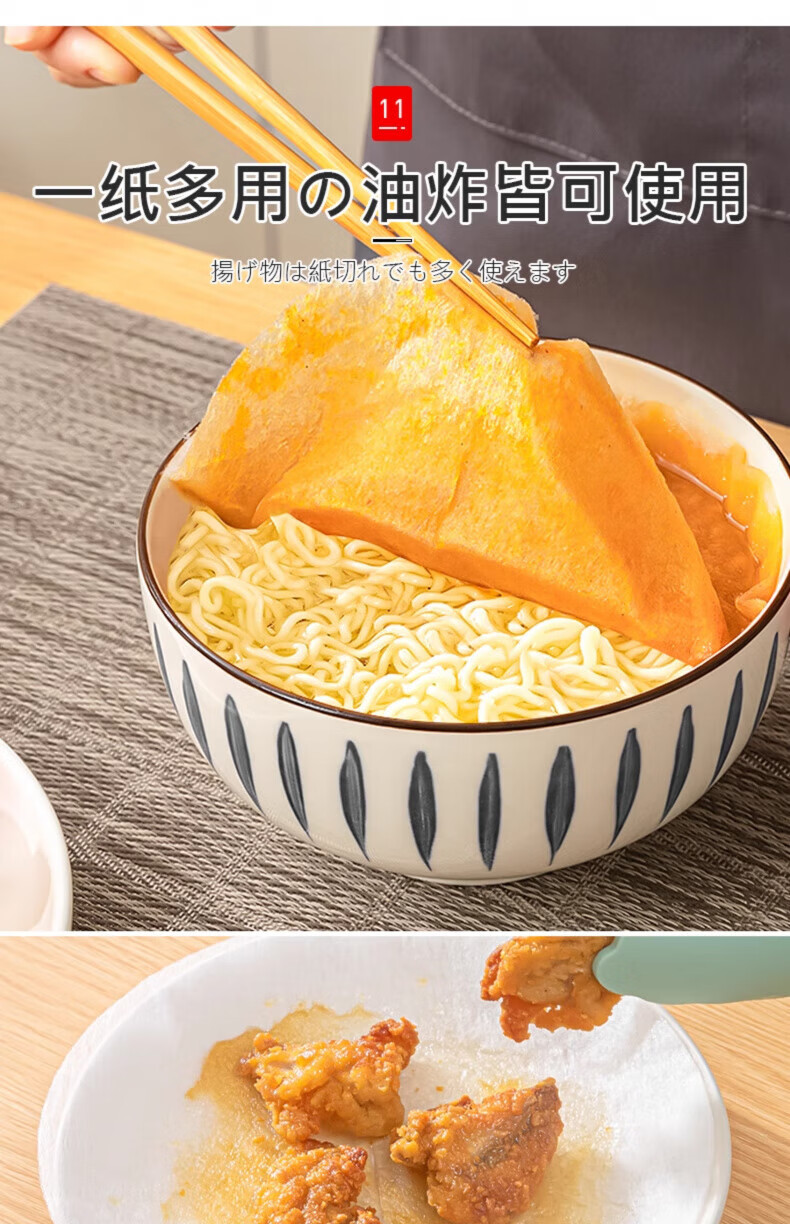 AILUKI日本高端日本原装食品吸油纸食物专用孕妇厨房煲汤炖食用滤油纸吸 2盒【200片装】食品级材质
