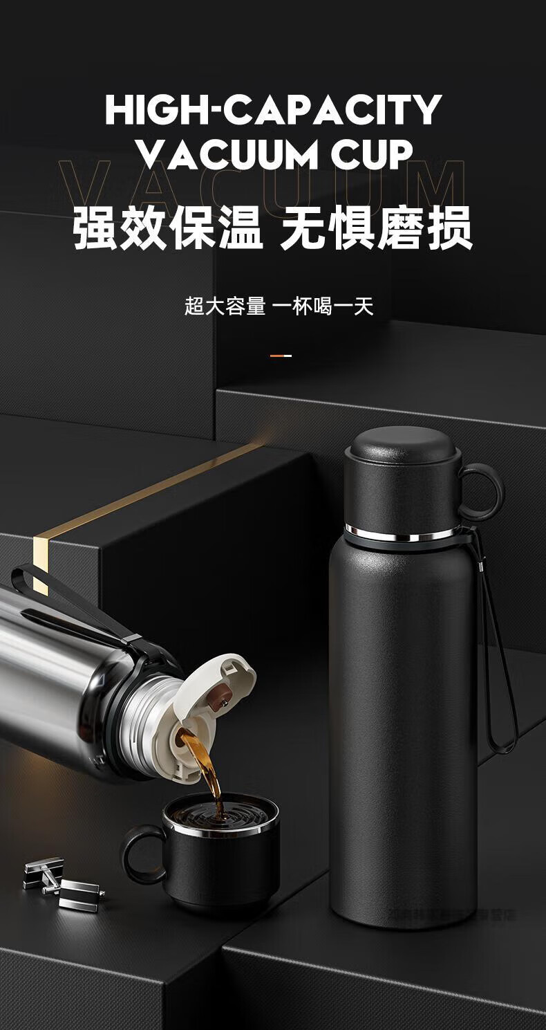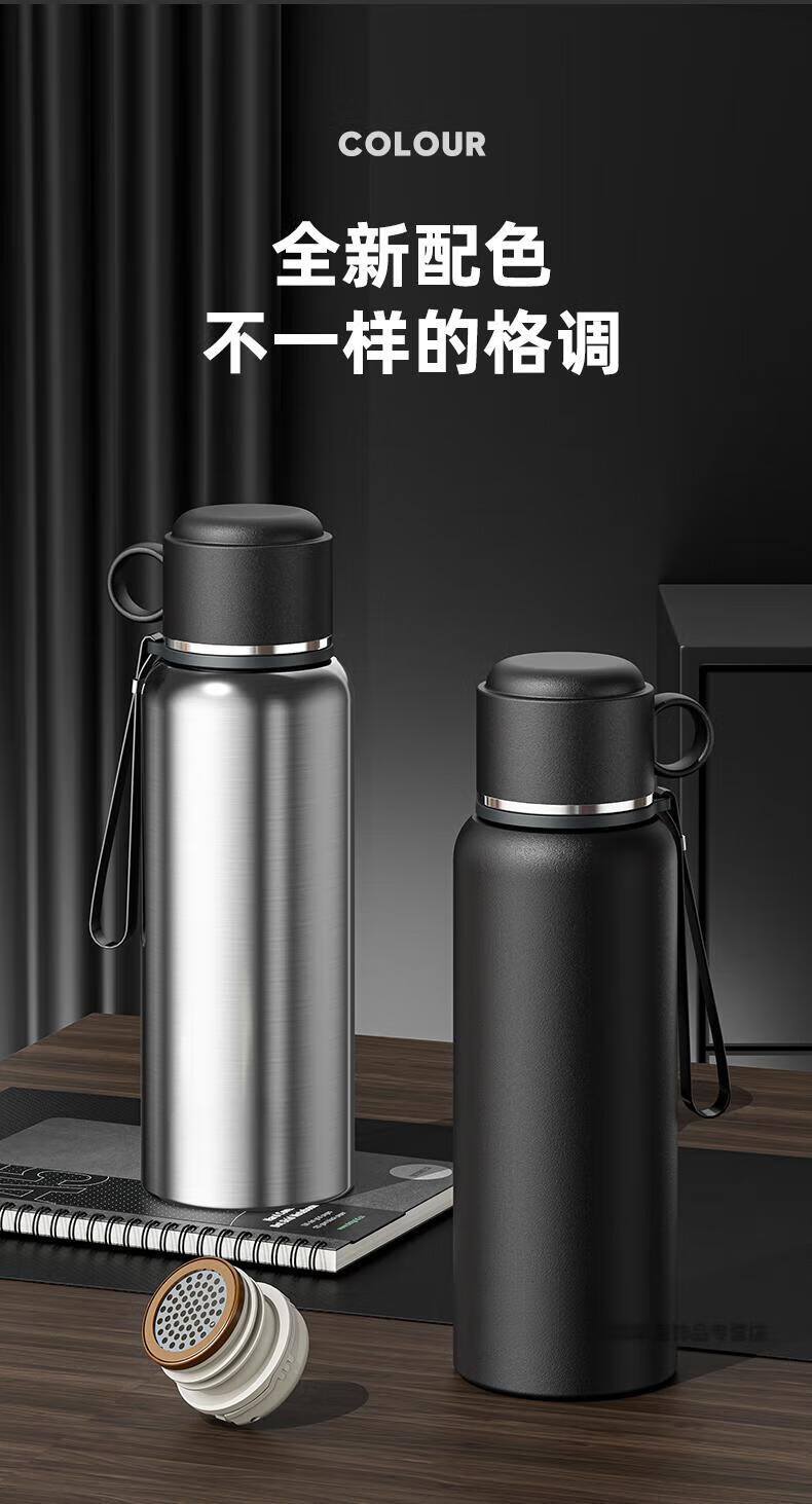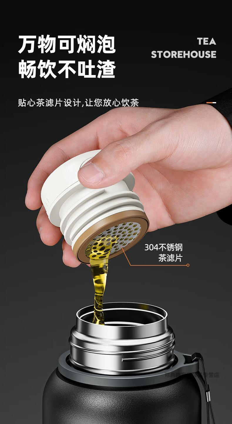 DEATKN德国大容量保温杯男款茶水分离泡茶杯新款不锈钢焖水壶冬季水杯子 睿智黑【茶水分离_杯盖可喝水】 600ml