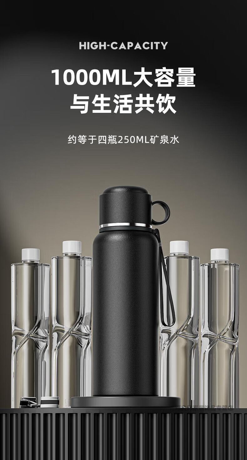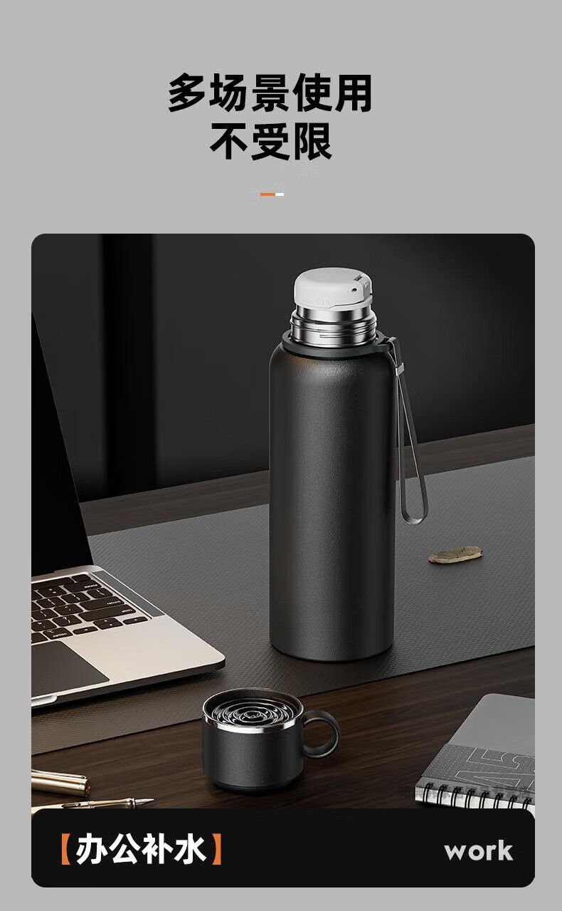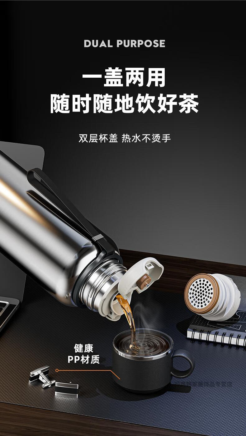 DEATKN德国大容量保温杯男款茶水分离泡茶杯新款不锈钢焖水壶冬季水杯子 睿智黑【茶水分离_杯盖可喝水】 600ml
