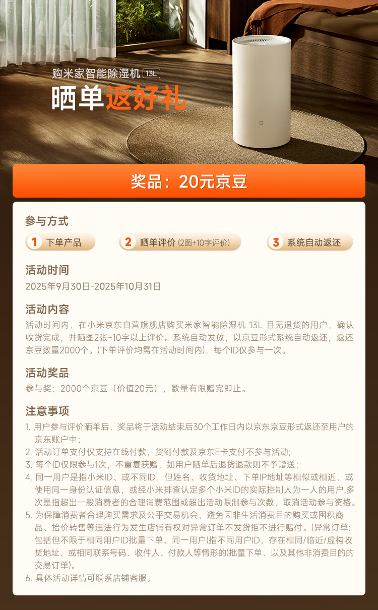 米家小米除湿机除湿器除湿量13L/天 7重降噪卧室轻音除潮空气干衣机DM-CS13BFA5A