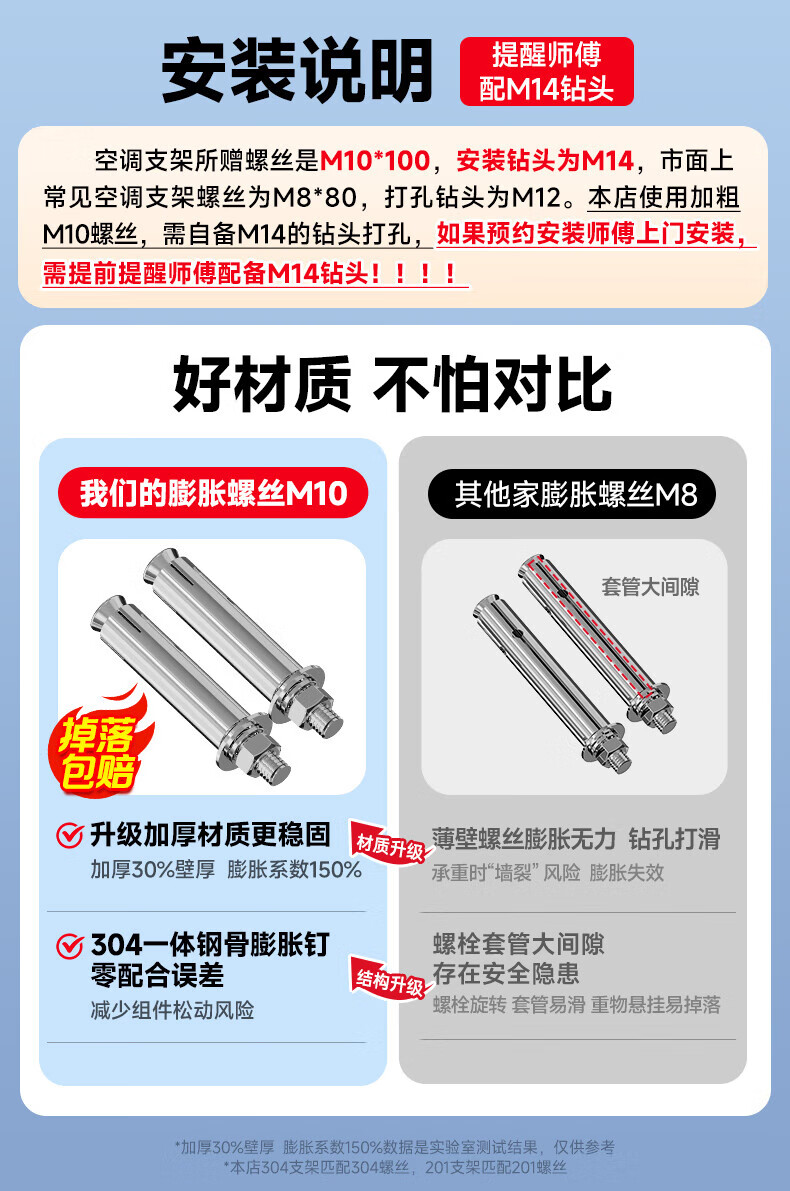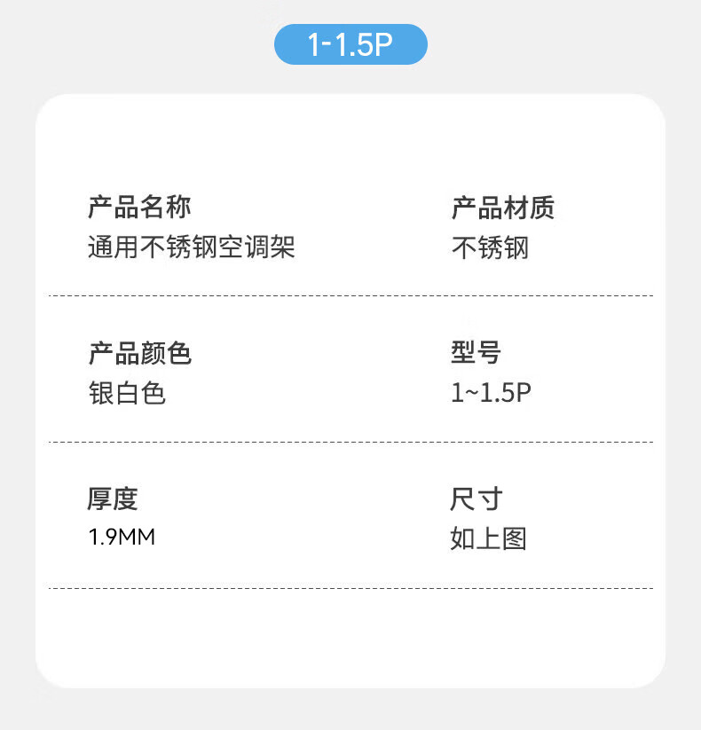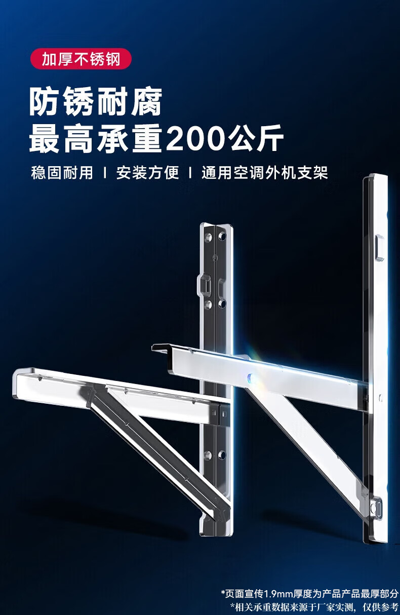 贝石空调支架 通用1.9mm加厚201不锈钢空调外机支架挂架托架适用于小米格力美的海尔TCL等空调架1-1.5P