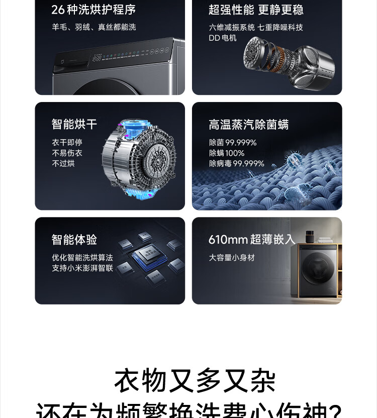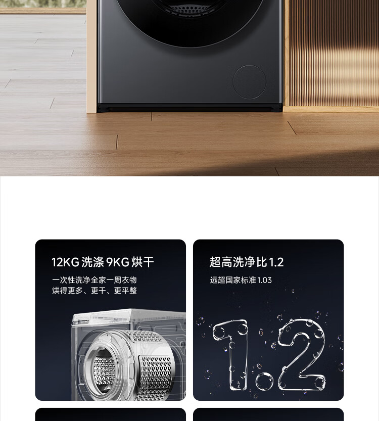小米米家【新品首发】12公斤大容量直驱洗烘一体全自动洗衣机 高温蒸汽除菌螨 1.2超高洗净比 智能烘干