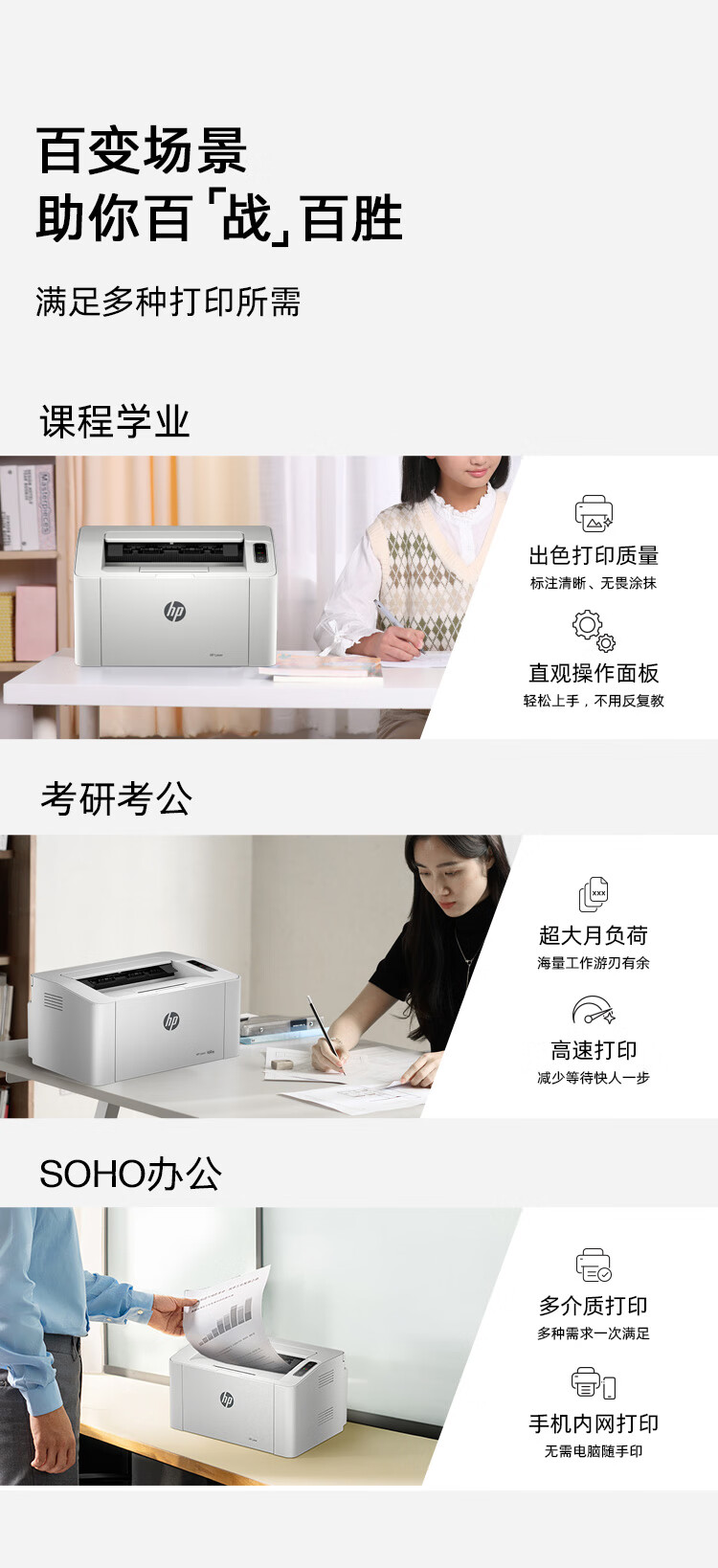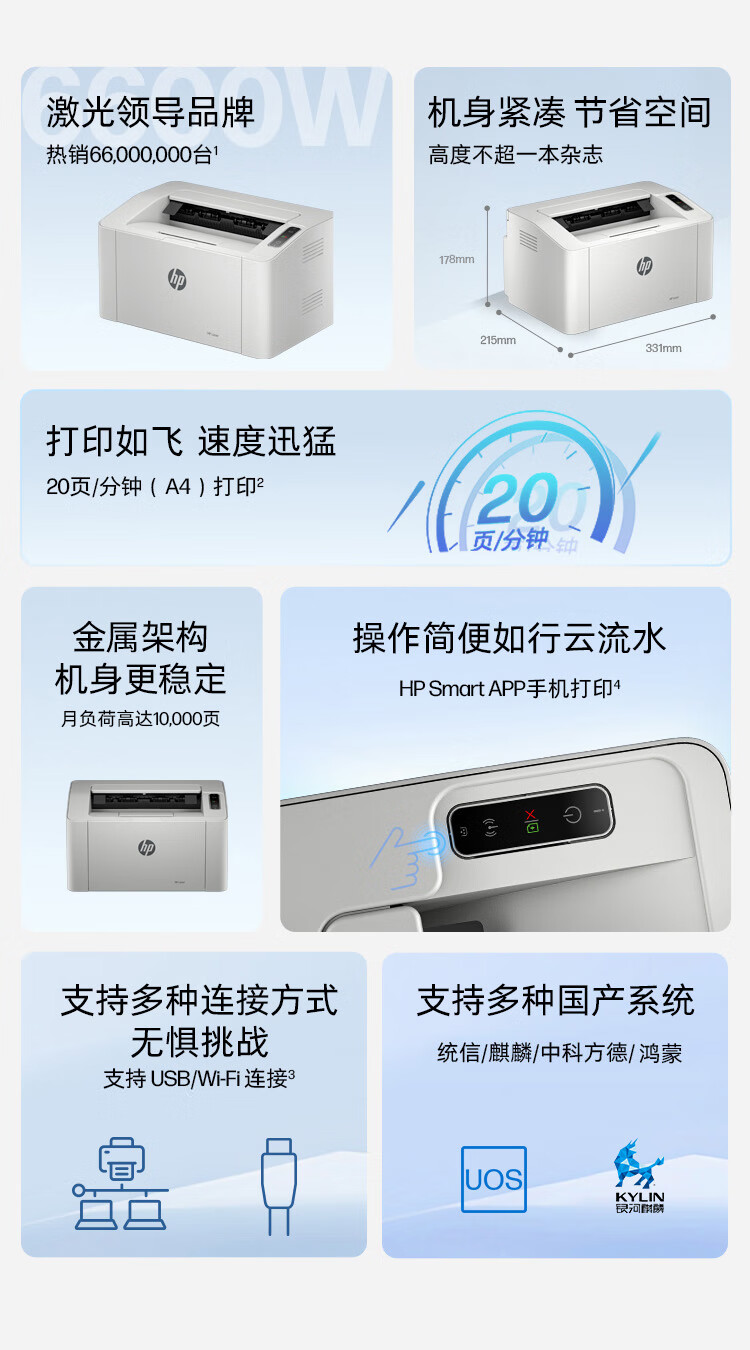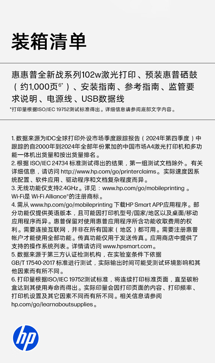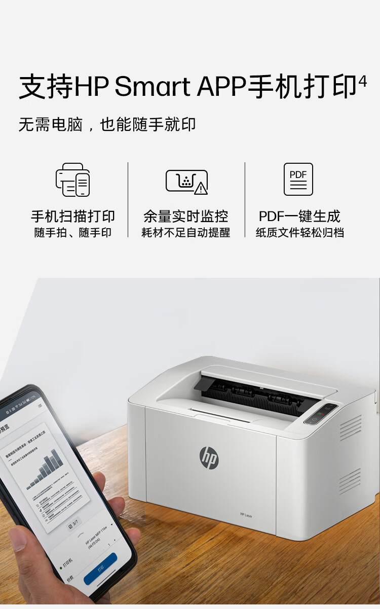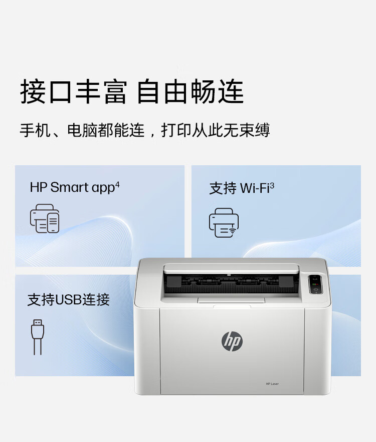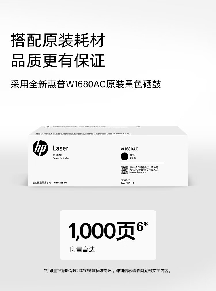 惠普(HP)102w激光无线家用打印机 无线家庭打印 作业打印 小巧简约打印机 国家补贴