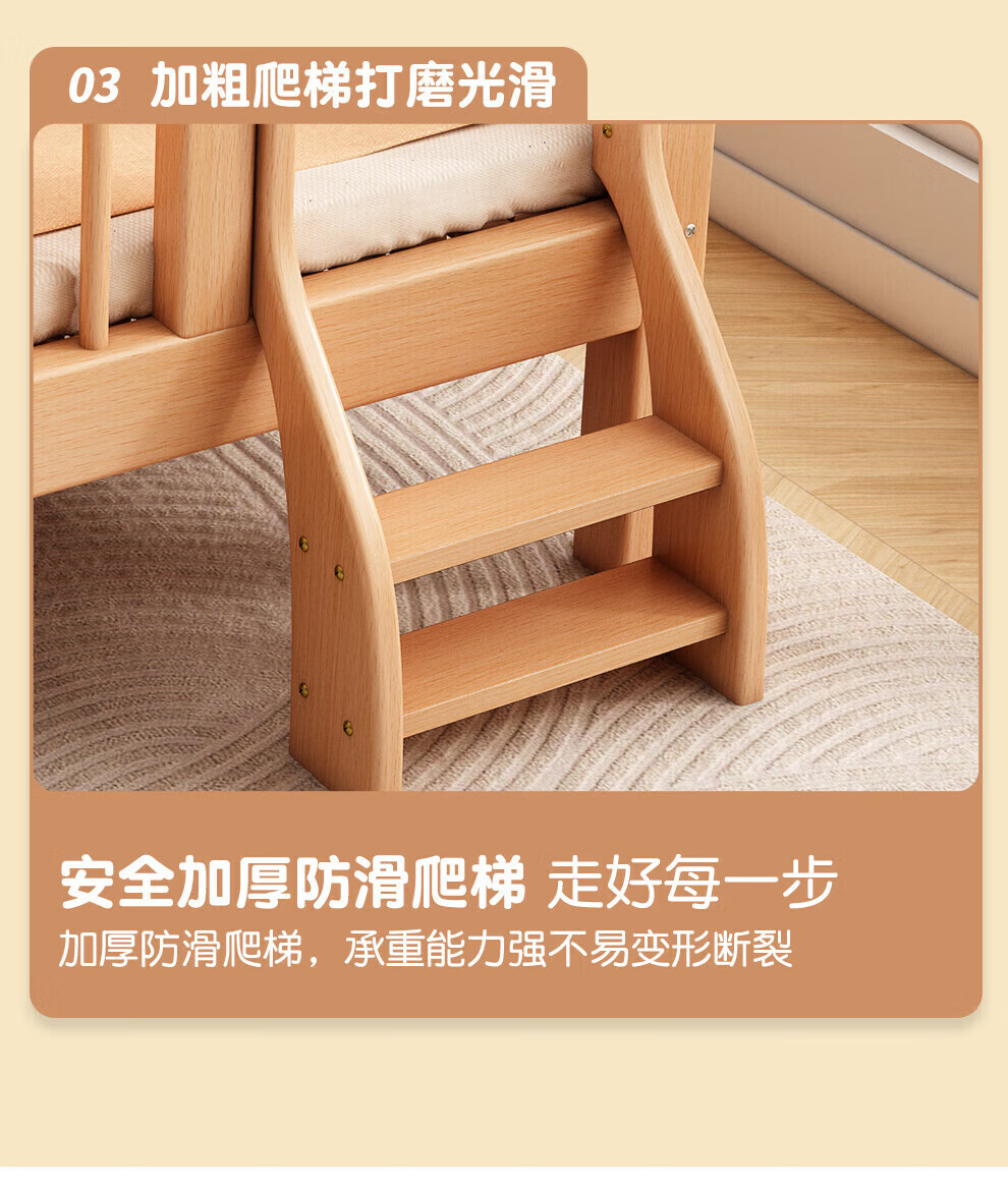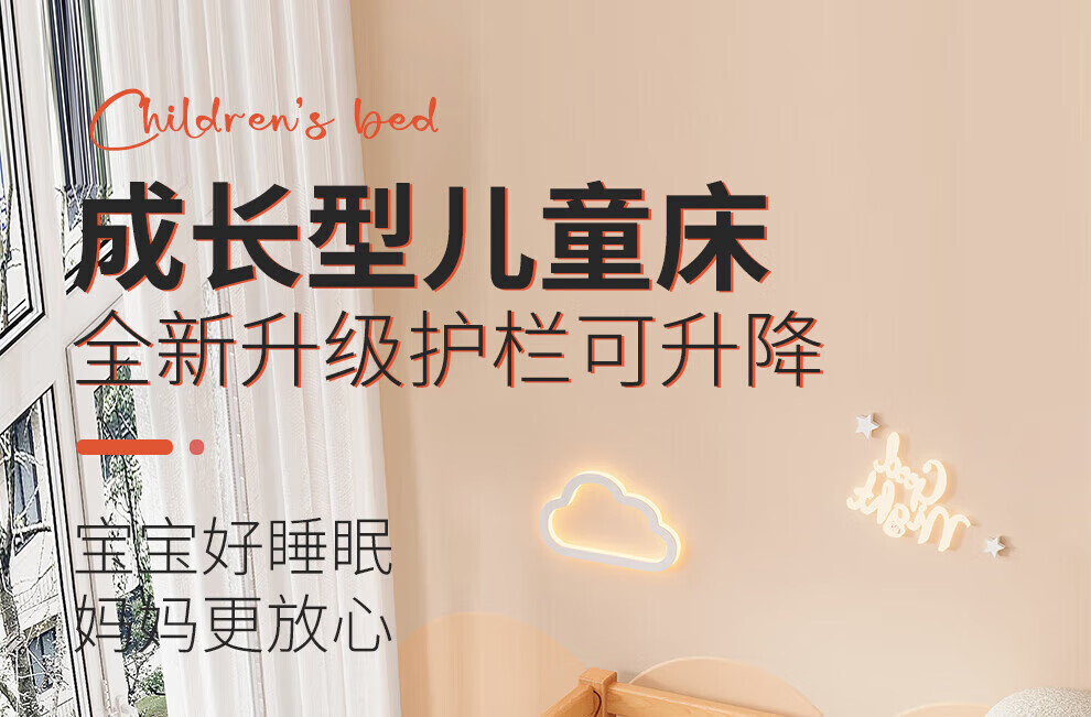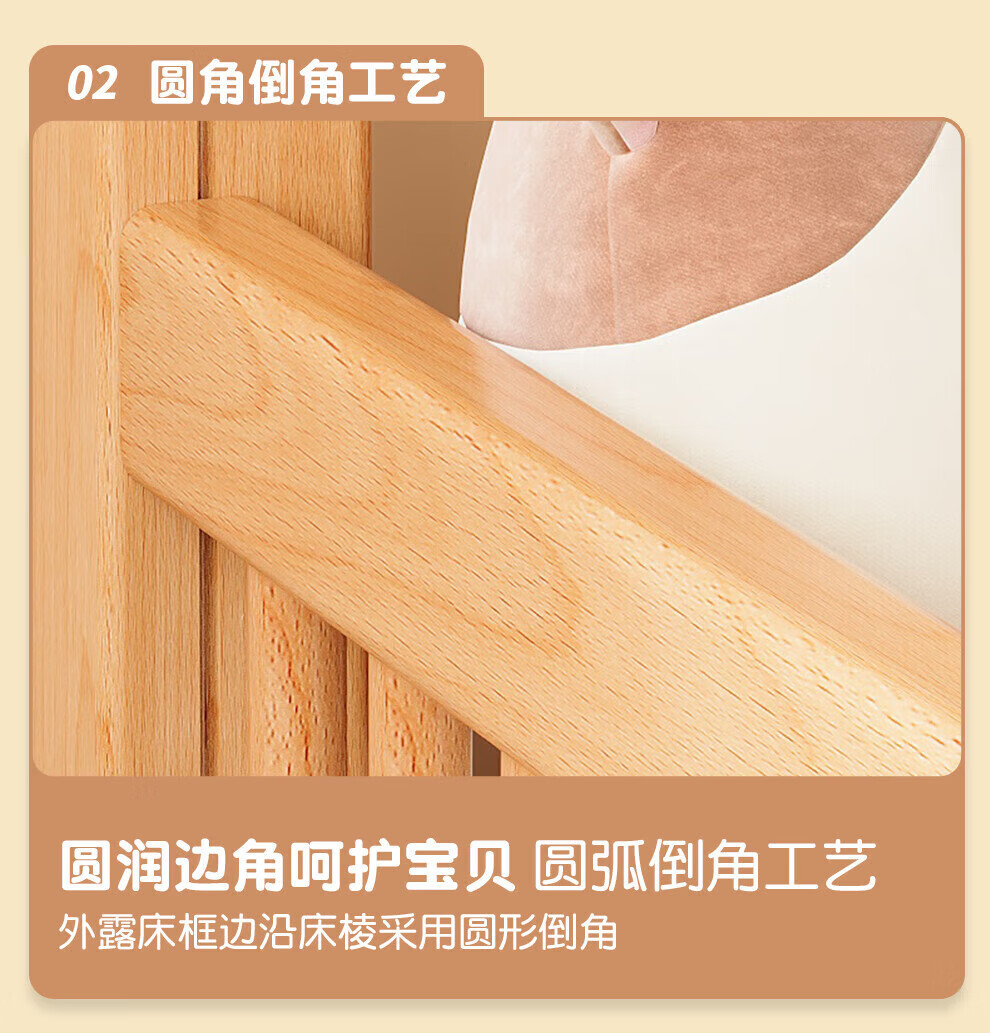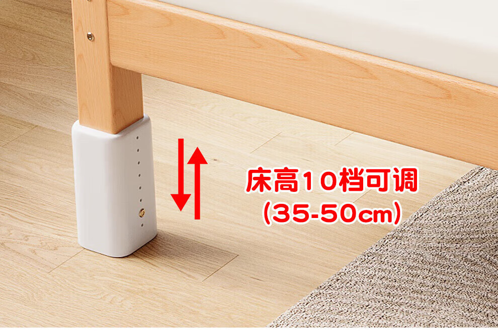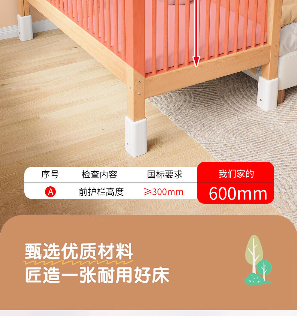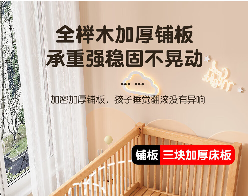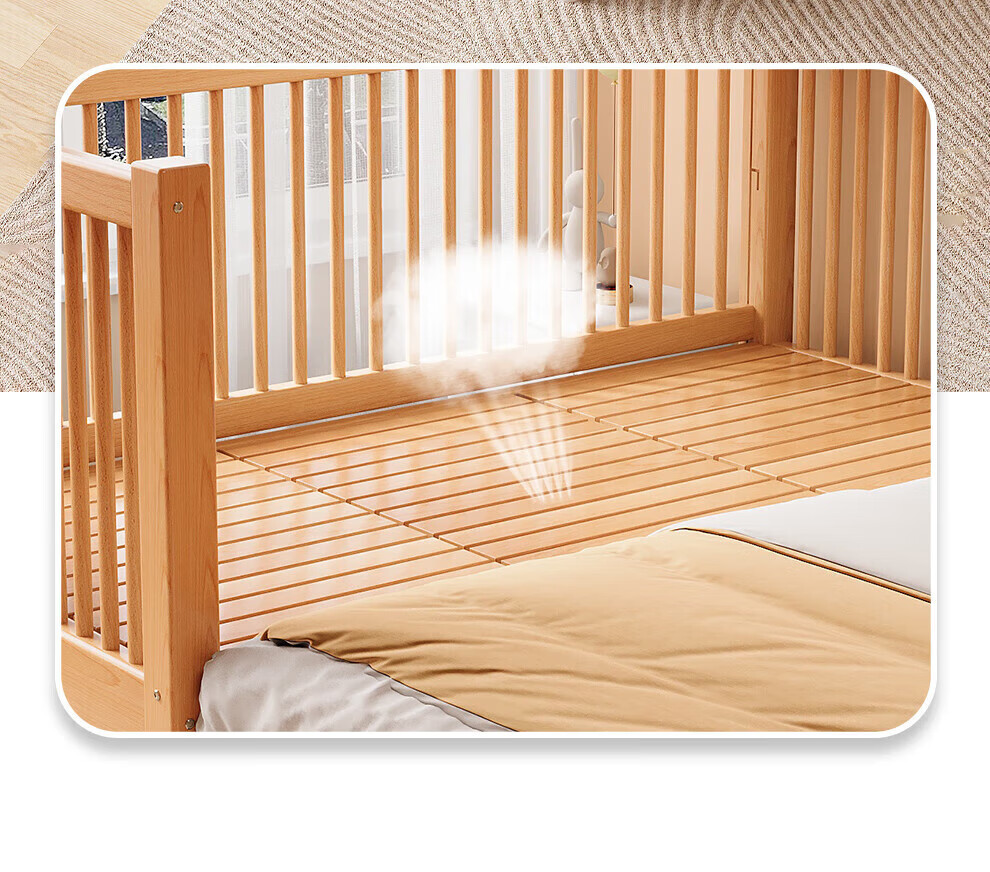 秋莹可升降榉木拼接床实木儿童床婴儿床加宽拼接大床小孩床边床拼接床 三护栏+5cm椰棕床垫(高度可调节) 可升降长200宽60高35【60护栏】