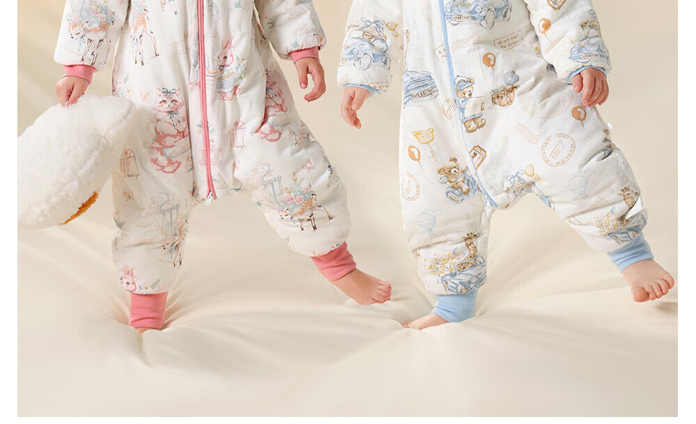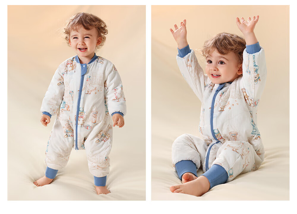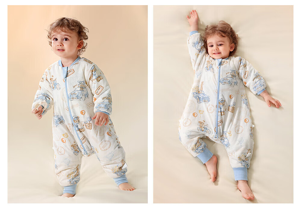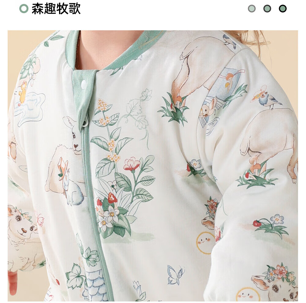 贝肽斯睡袋婴儿春秋季儿童宝宝3-6岁纯棉分腿式防踢被保暖防惊跳连体衣 森趣牧歌【春秋双层 20-26°C】猫肚棉 M码 建议身高80-95cm建议1.5-2.5岁