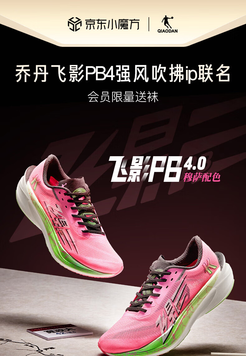乔丹飞影PB4.0强风吹拂联名款马拉松竞速跑步鞋巭pro回弹科技运动鞋男 极光粉/霓虹绿(男款39-46码) 42