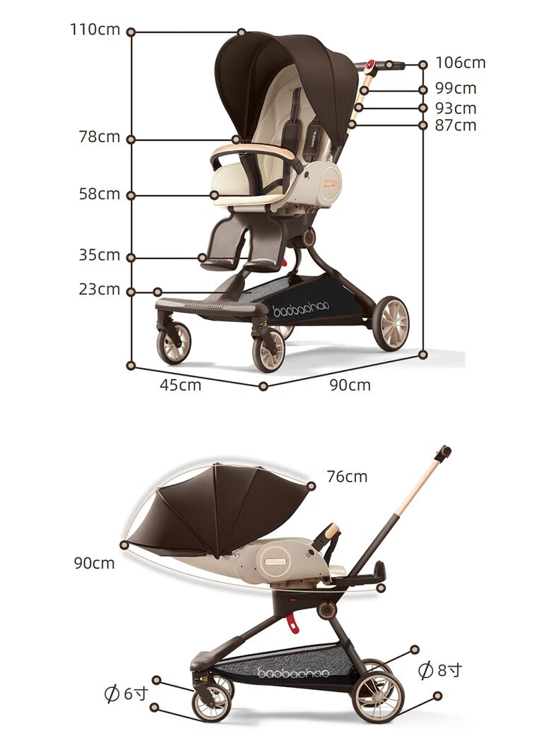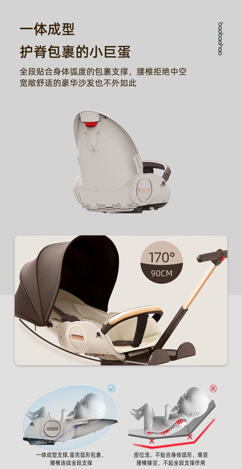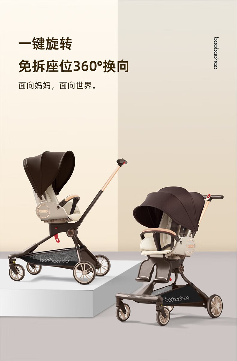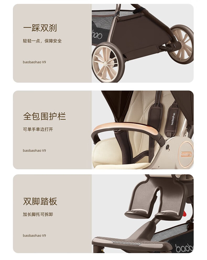 宝宝好V9-C遛娃神器遛娃手推车双向高景观轻便折叠可坐可平躺婴儿推车 V9-C焦糖奶茶+原厂原装餐盘