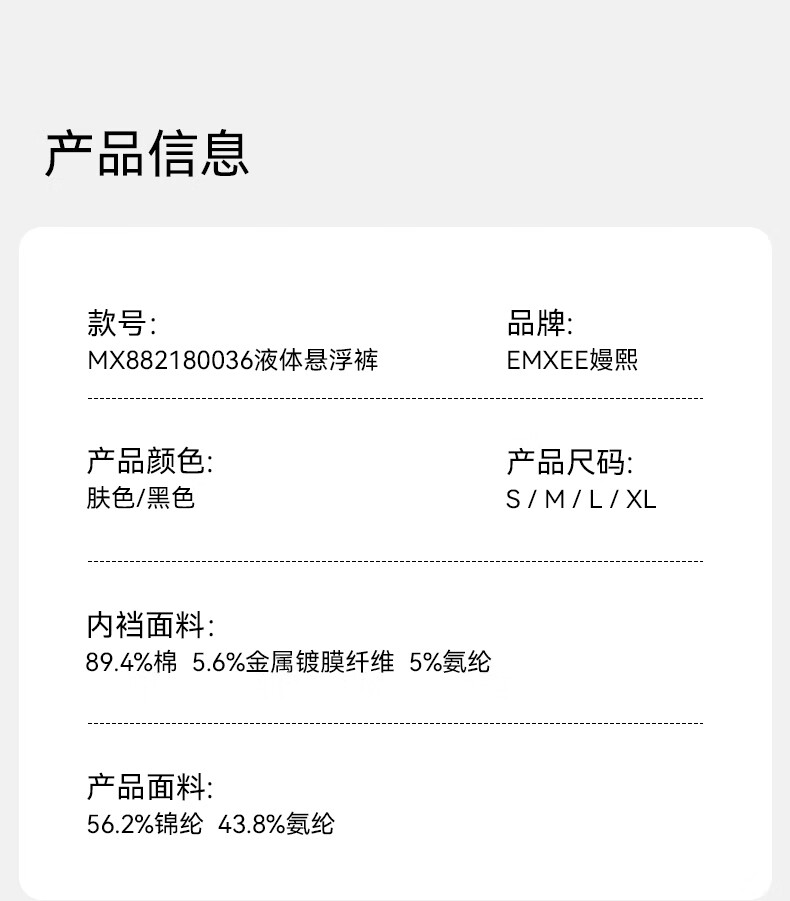 嫚熙(EMXEE)收腹裤悬浮裤提臀裤女塑形束腰高腰塑身裤收肚子春秋款 【黑色】 -液体悬浮收腹裤 常规款 L