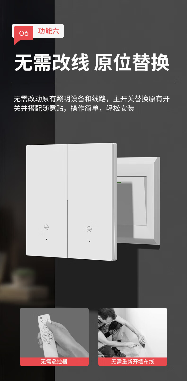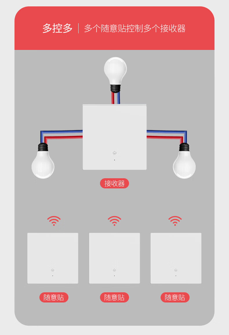 国际电工明装无线遥控开关随意贴家用客厅卧室220V免布线灯双控远程控制器 明装一开【1主开关+1随意贴】白