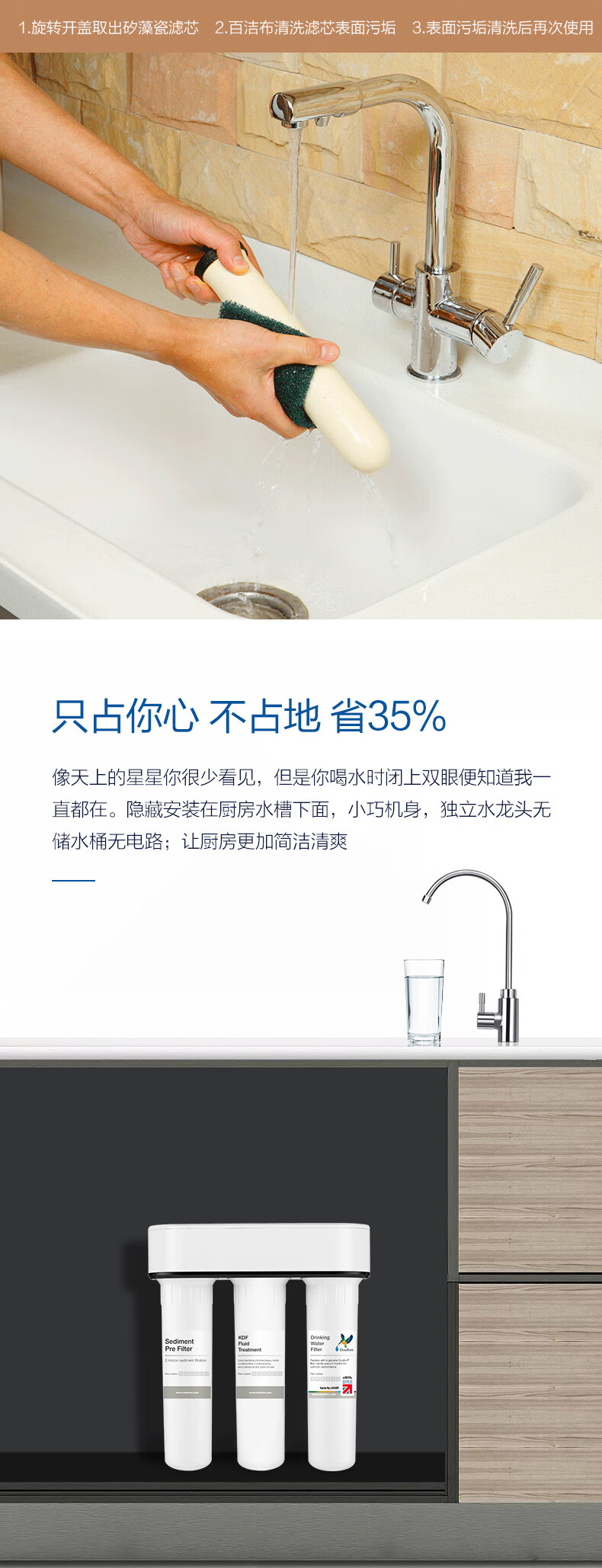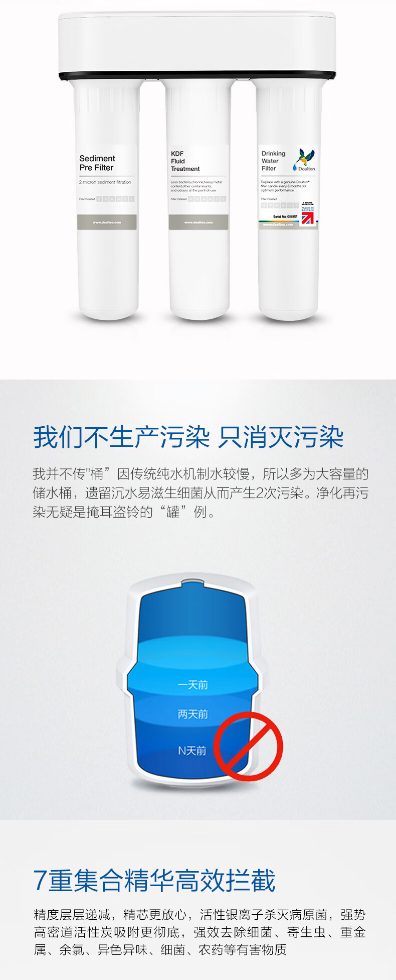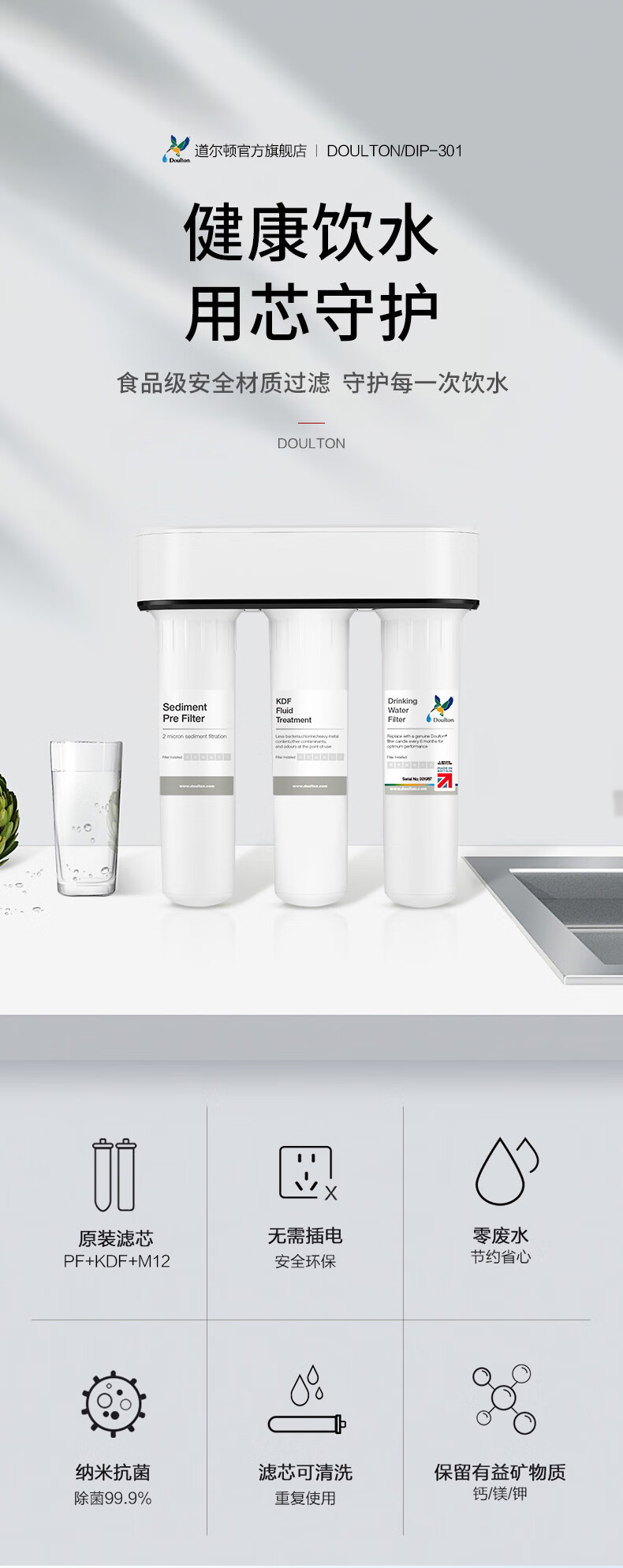道尔顿(Doulton) 道尔顿净水器家用台下直饮机DIP301无废水不插电超滤机陶瓷滤芯可清洗厨下净饮机 白色