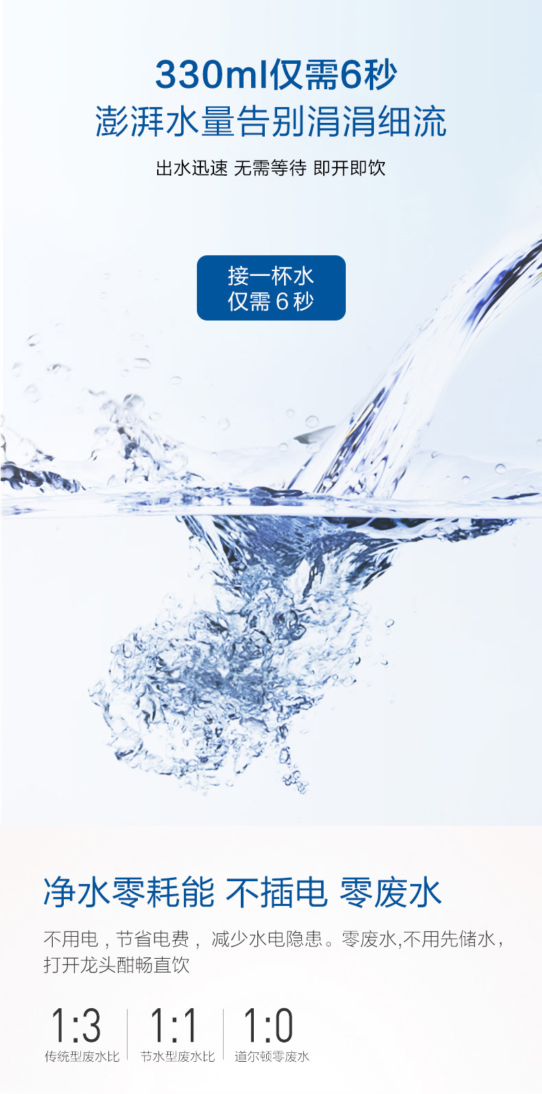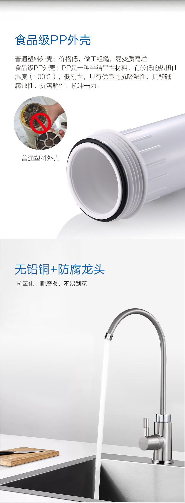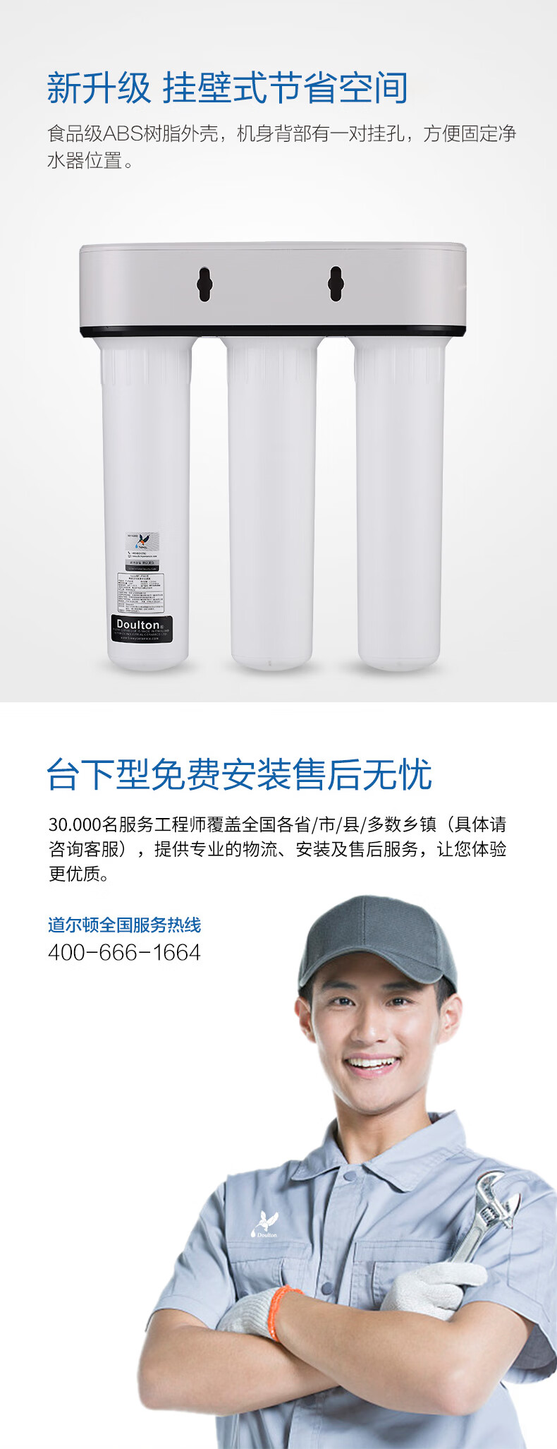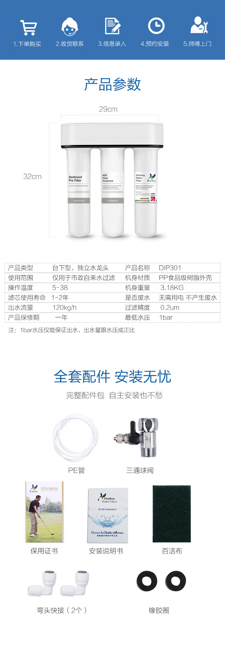 道尔顿(Doulton) 道尔顿净水器家用台下直饮机DIP301无废水不插电超滤机陶瓷滤芯可清洗厨下净饮机 白色