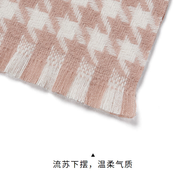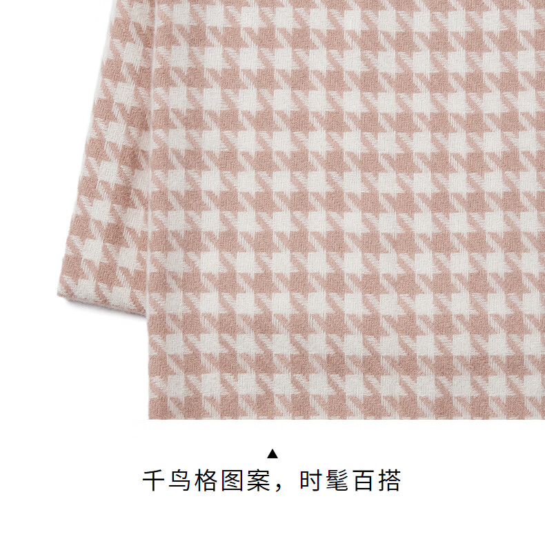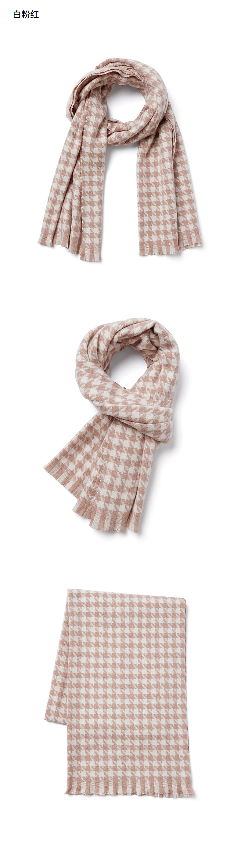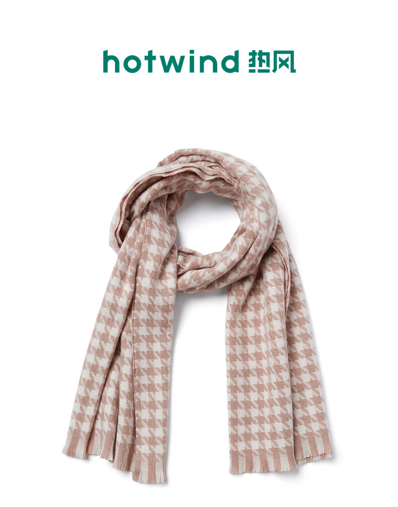 热风(Hotwind)【商场同款】女士格纹围巾2025年冬季新款女士小千鸟格梭织围巾 67白粉红 F