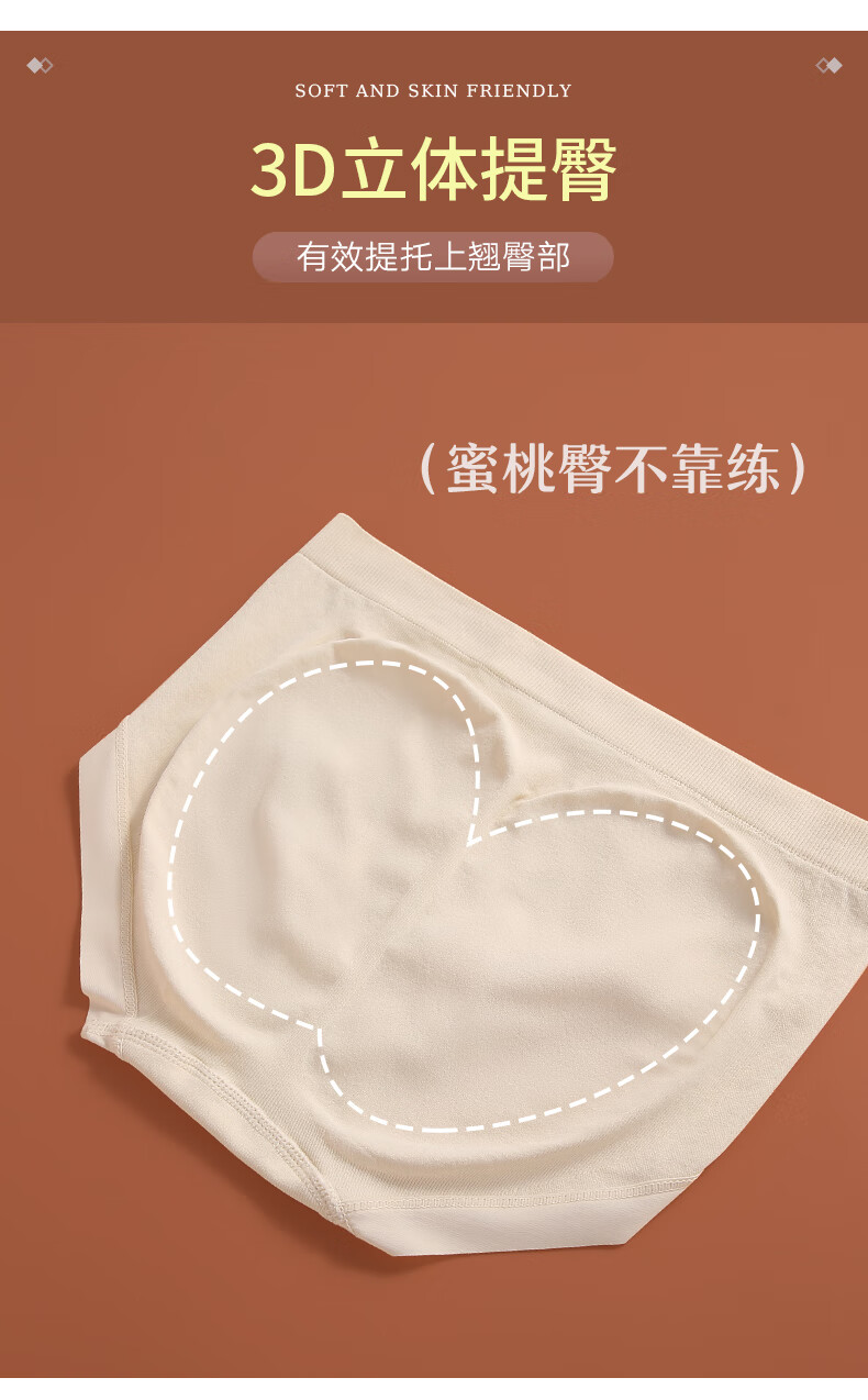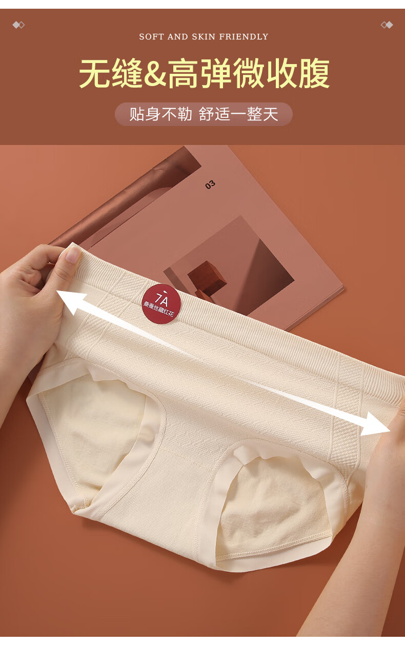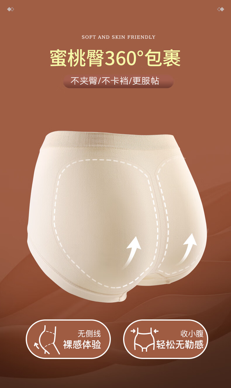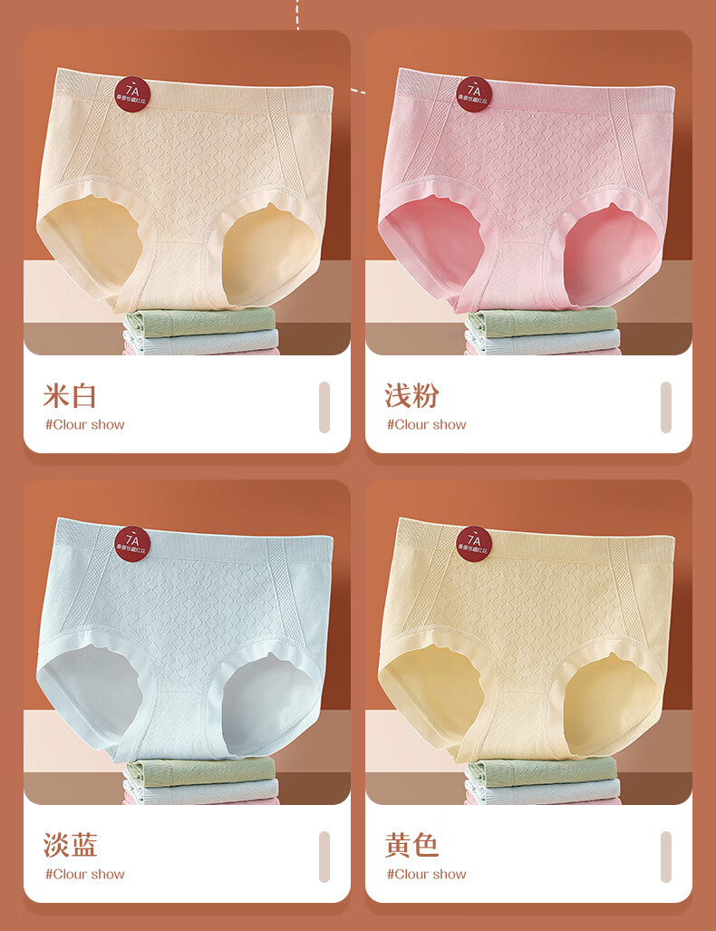 无痕内裤女7A抗菌底裆收腹提臀舒适透气收小腹塑身中腰女士三角裤 2条装-黄色+淡蓝 M (80-100斤)