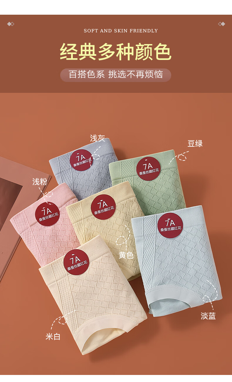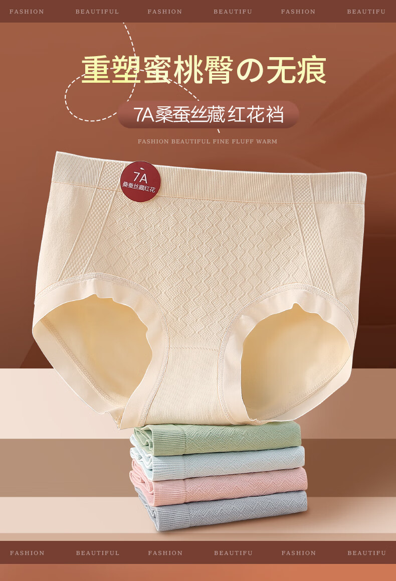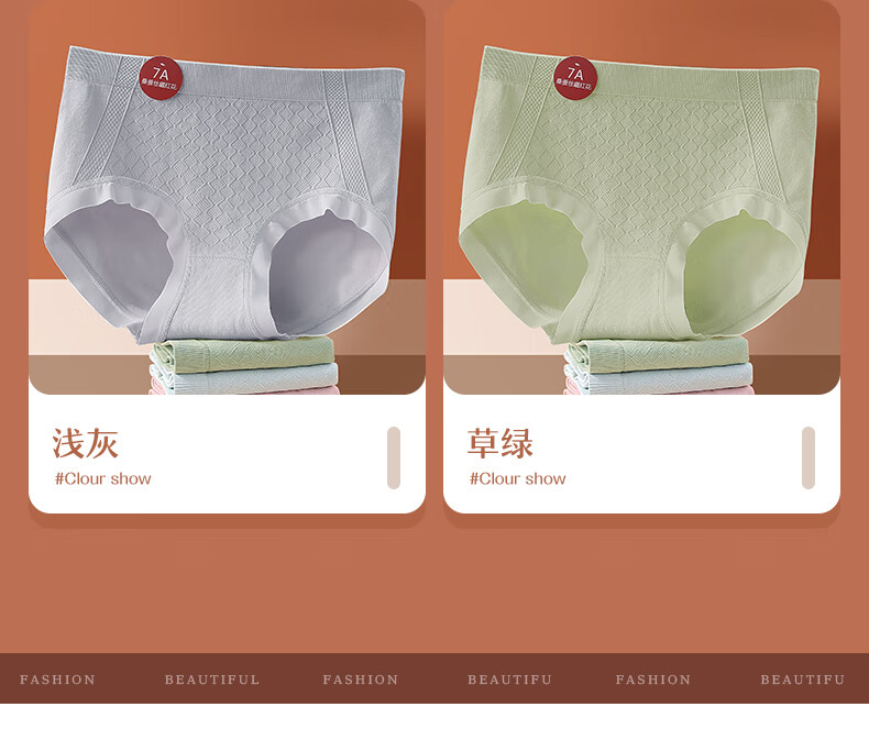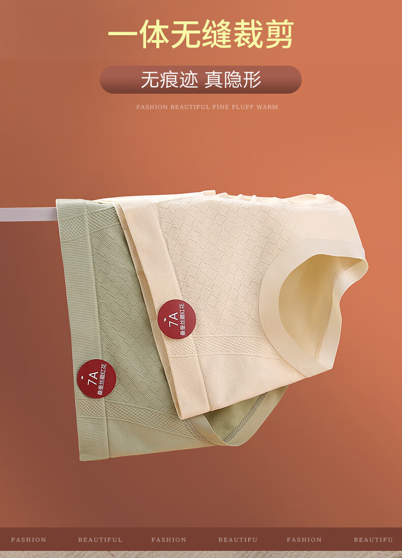 无痕内裤女7A抗菌底裆收腹提臀舒适透气收小腹塑身中腰女士三角裤 2条装-黄色+淡蓝 M (80-100斤)