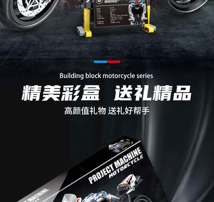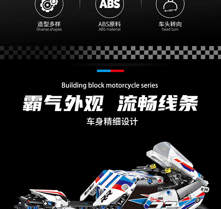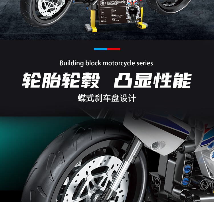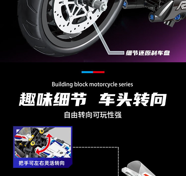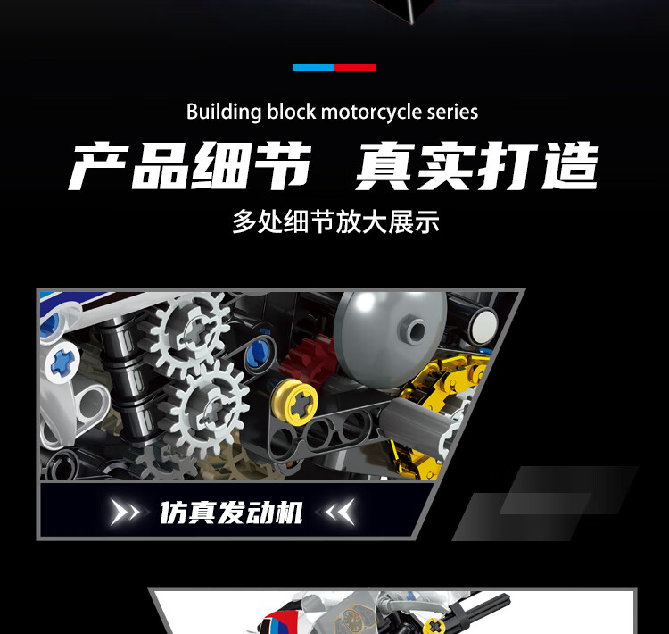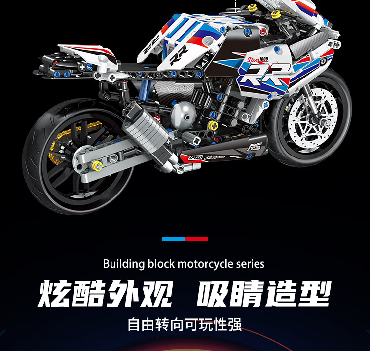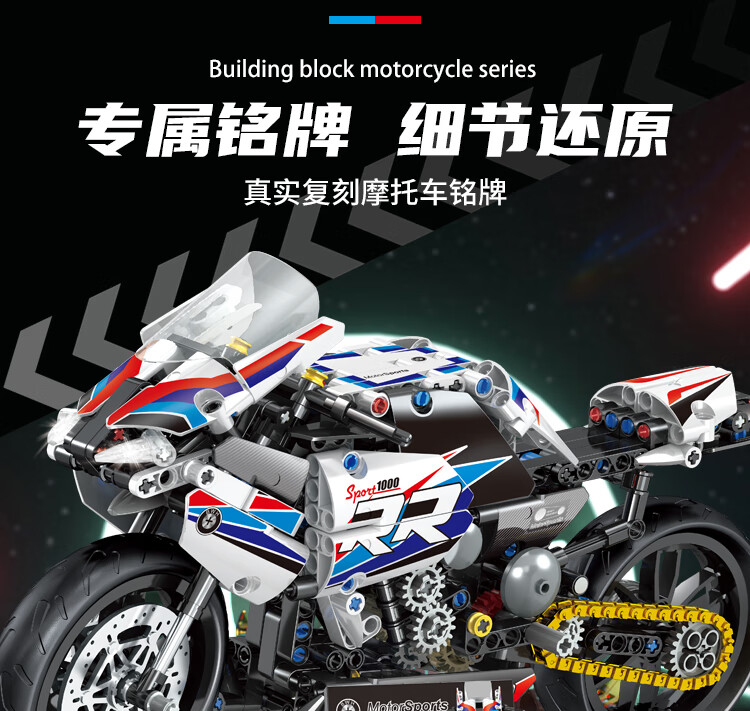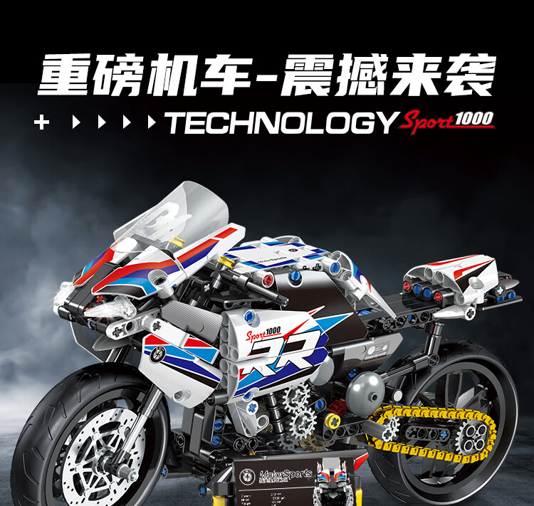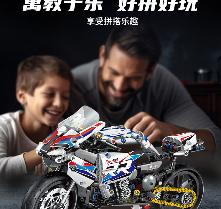 乐爱祥 儿童宝马摩托车高难度拼装兼容乐高积木6-12岁男孩生日礼物