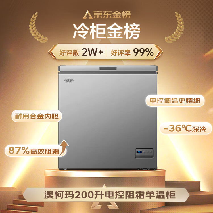 澳柯玛(AUCMA)200升家用冰柜 87%减霜 大容量冷藏柜冷冻柜 电脑控温冷柜 一级能效 BC/BD-200DNE国家补贴20%