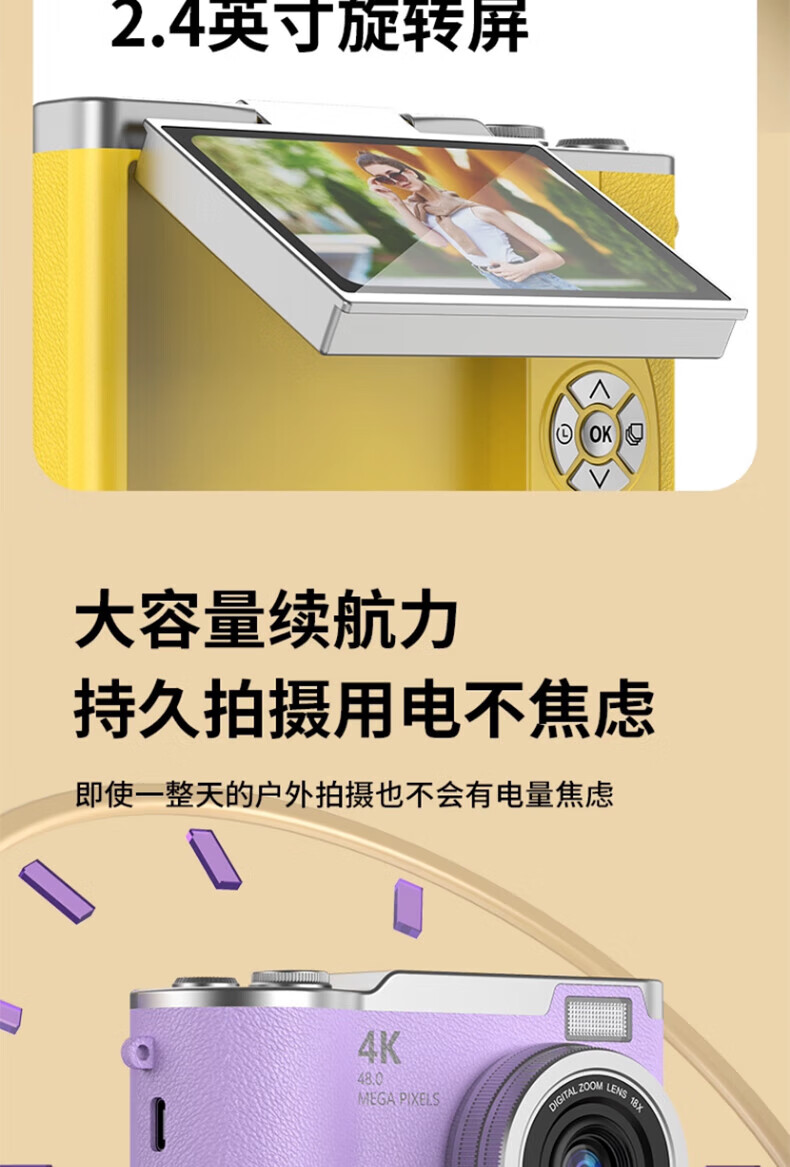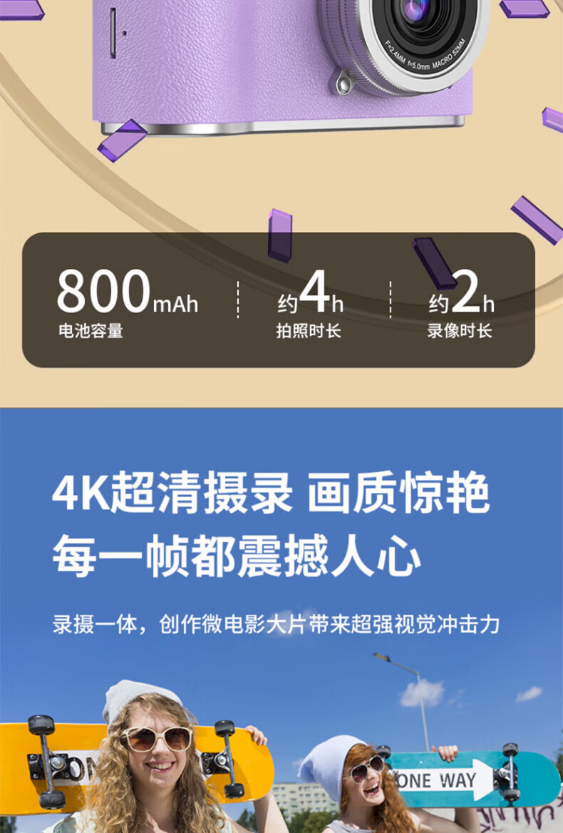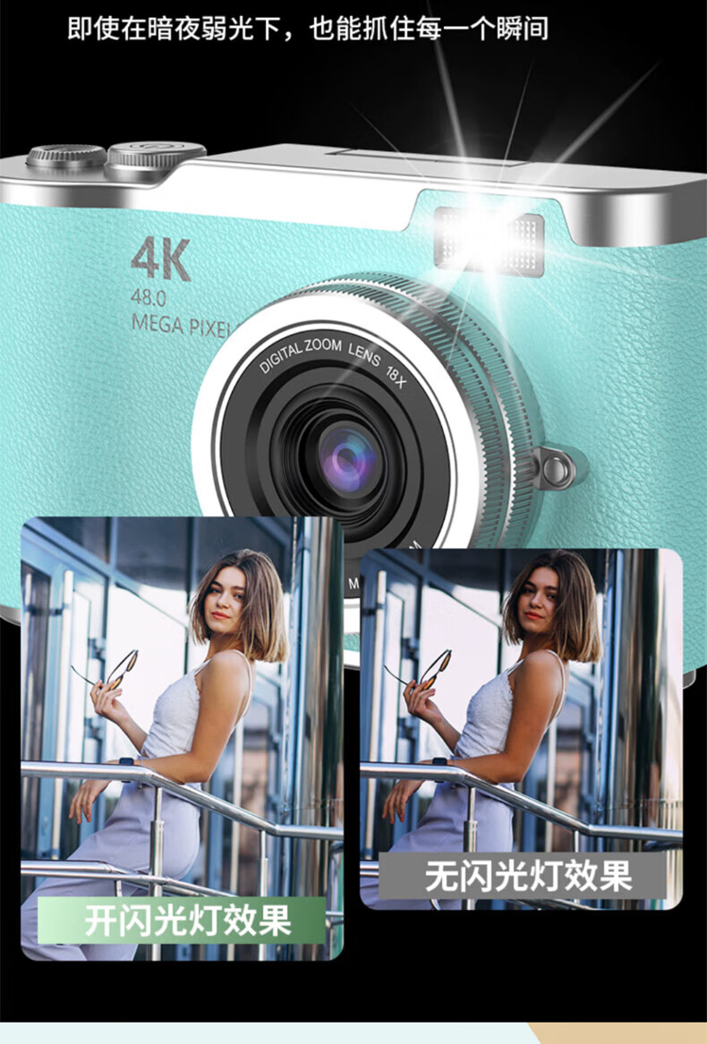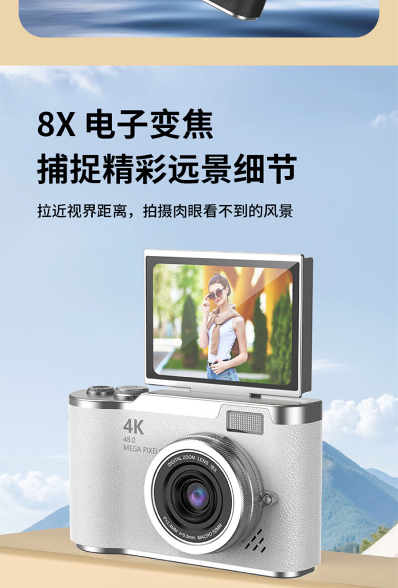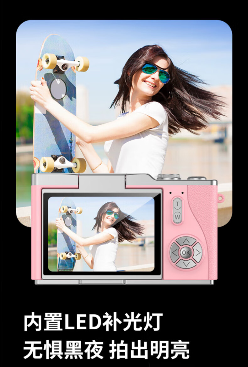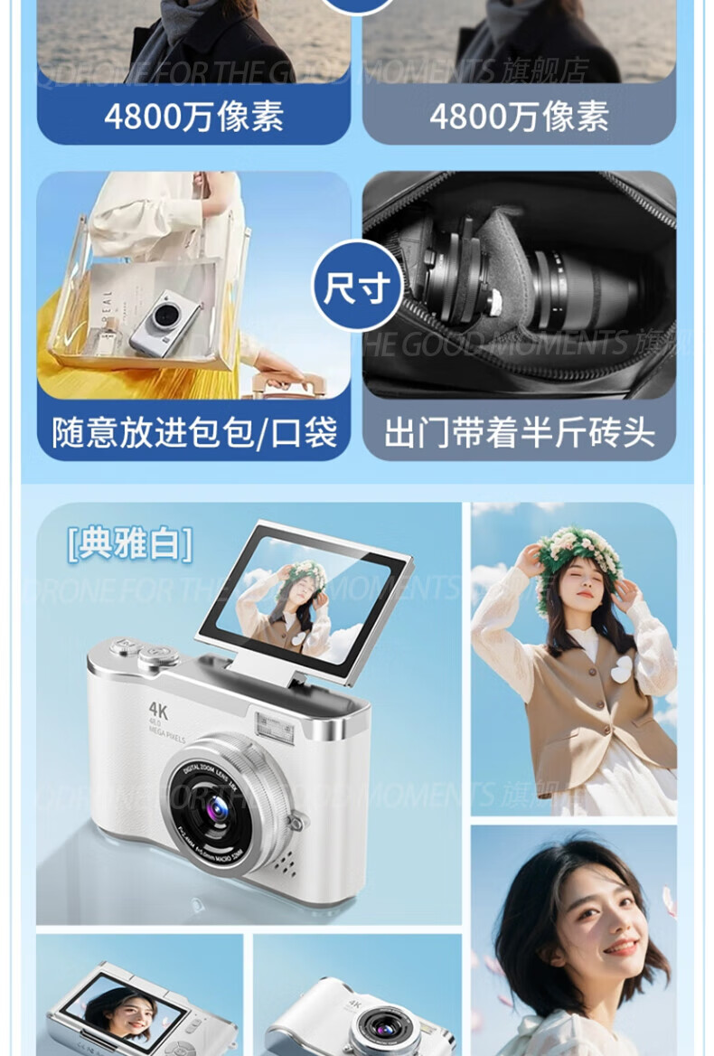 qdrone For the Good Moments学生党ccd相机数码照相机翻转屏儿童玩具女孩生日礼物送女朋友14 翻转大屏白【128G+补光灯+可传手机+精美礼盒】 自动对焦+防抖+超清像素