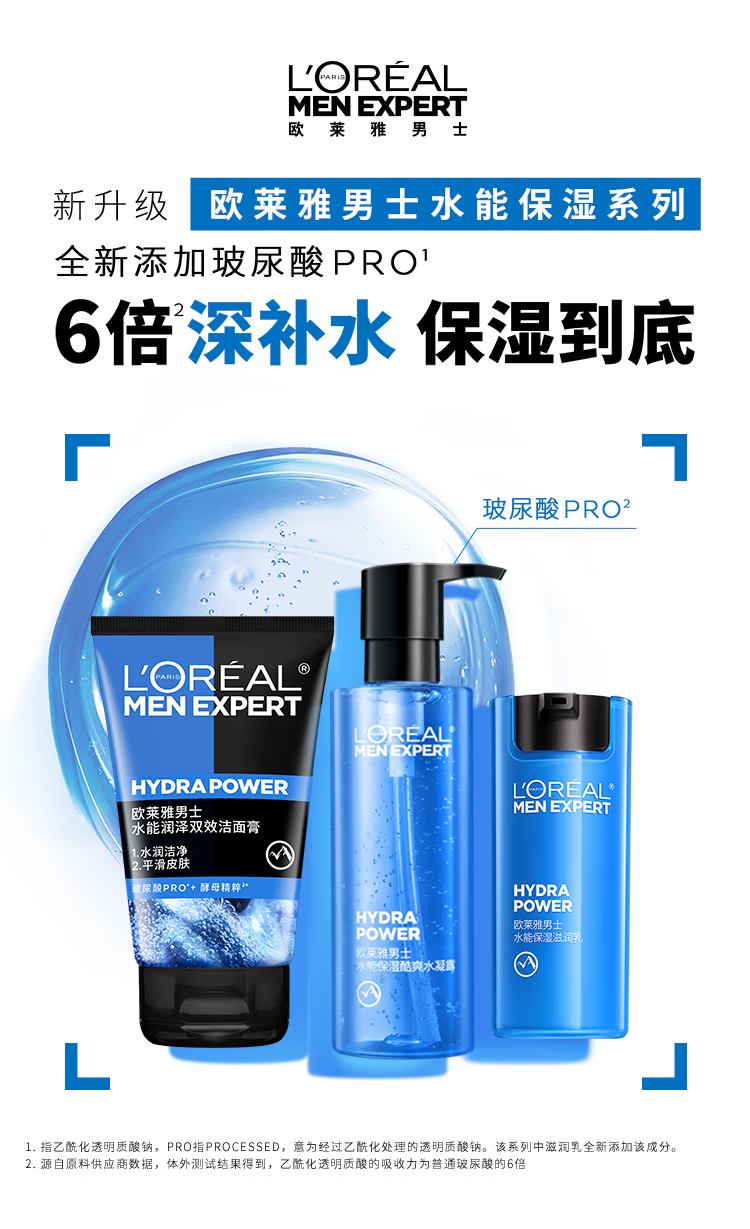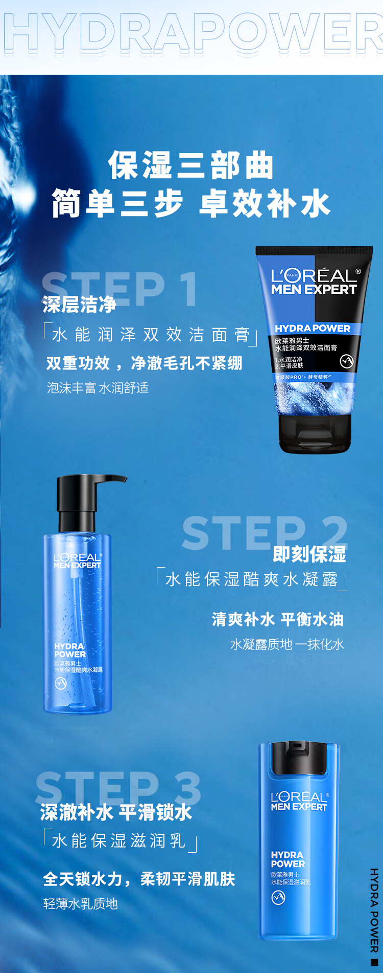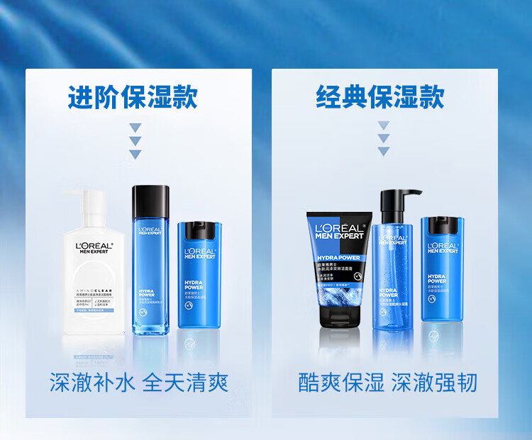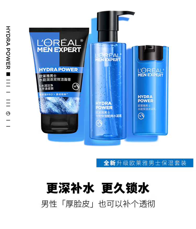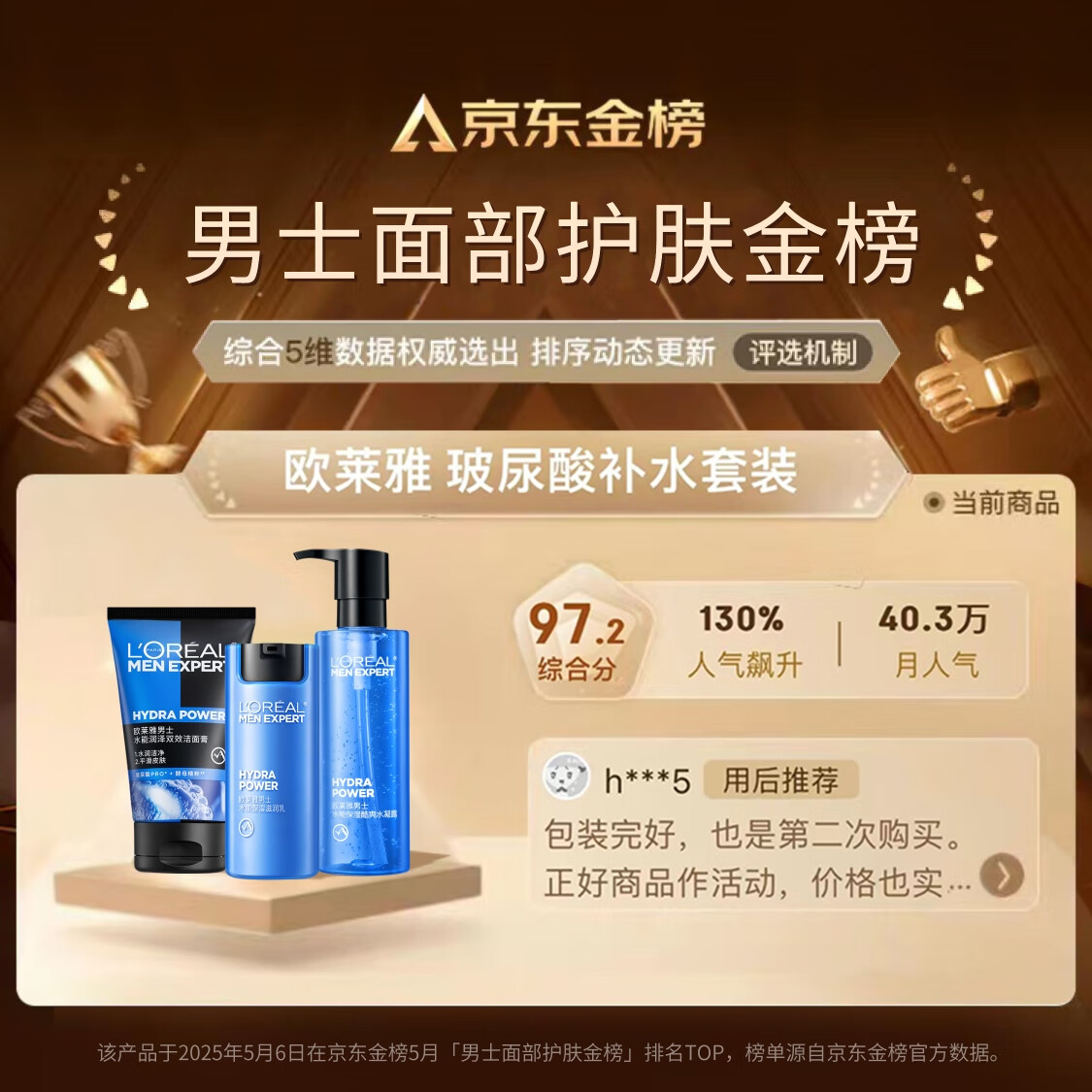 欧莱雅男士水能保湿洗面奶水乳三件套装补水护肤品实用生日礼物送男朋友