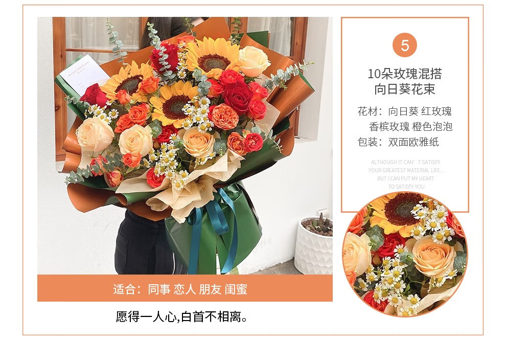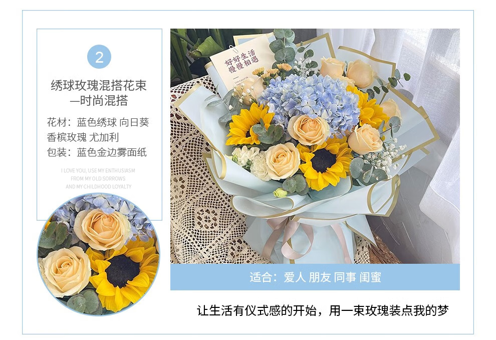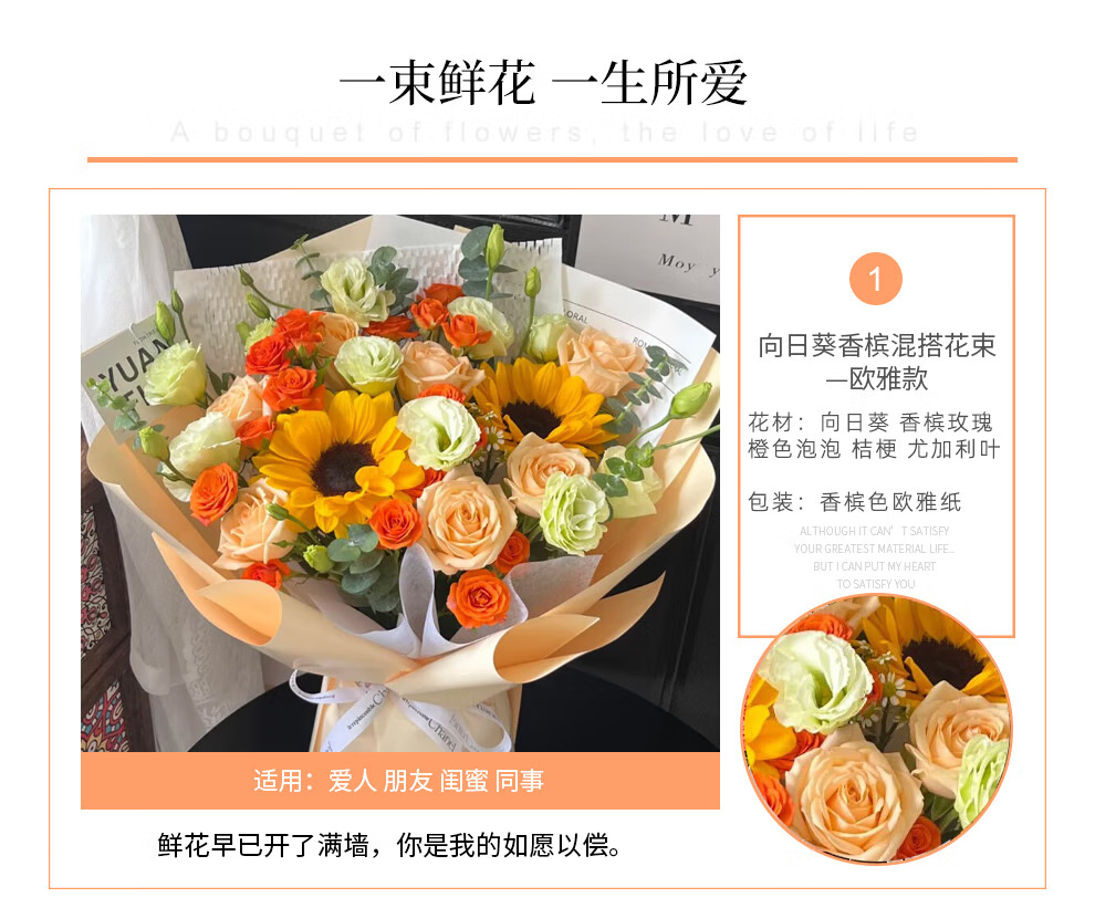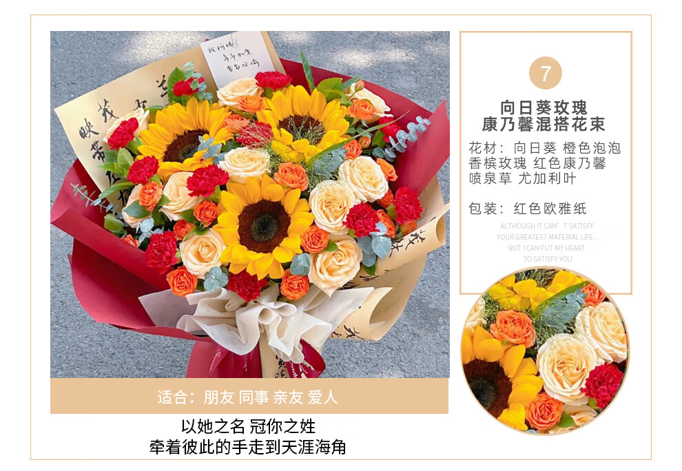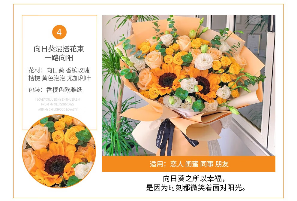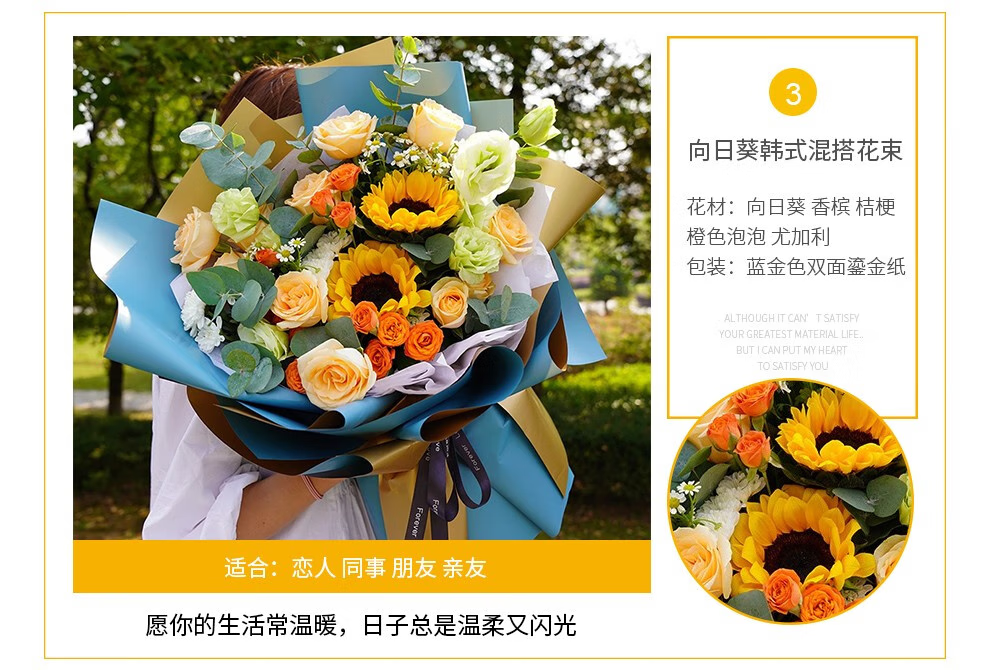 插画鲜花速递向日葵玫瑰混搭花束送女友老婆生日礼物全国同城配送 向日葵香槟混搭花束
