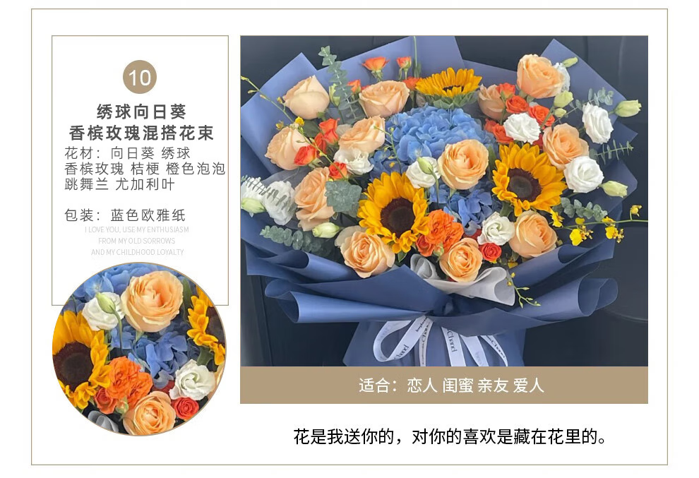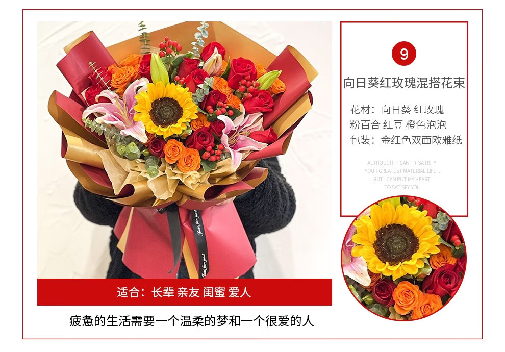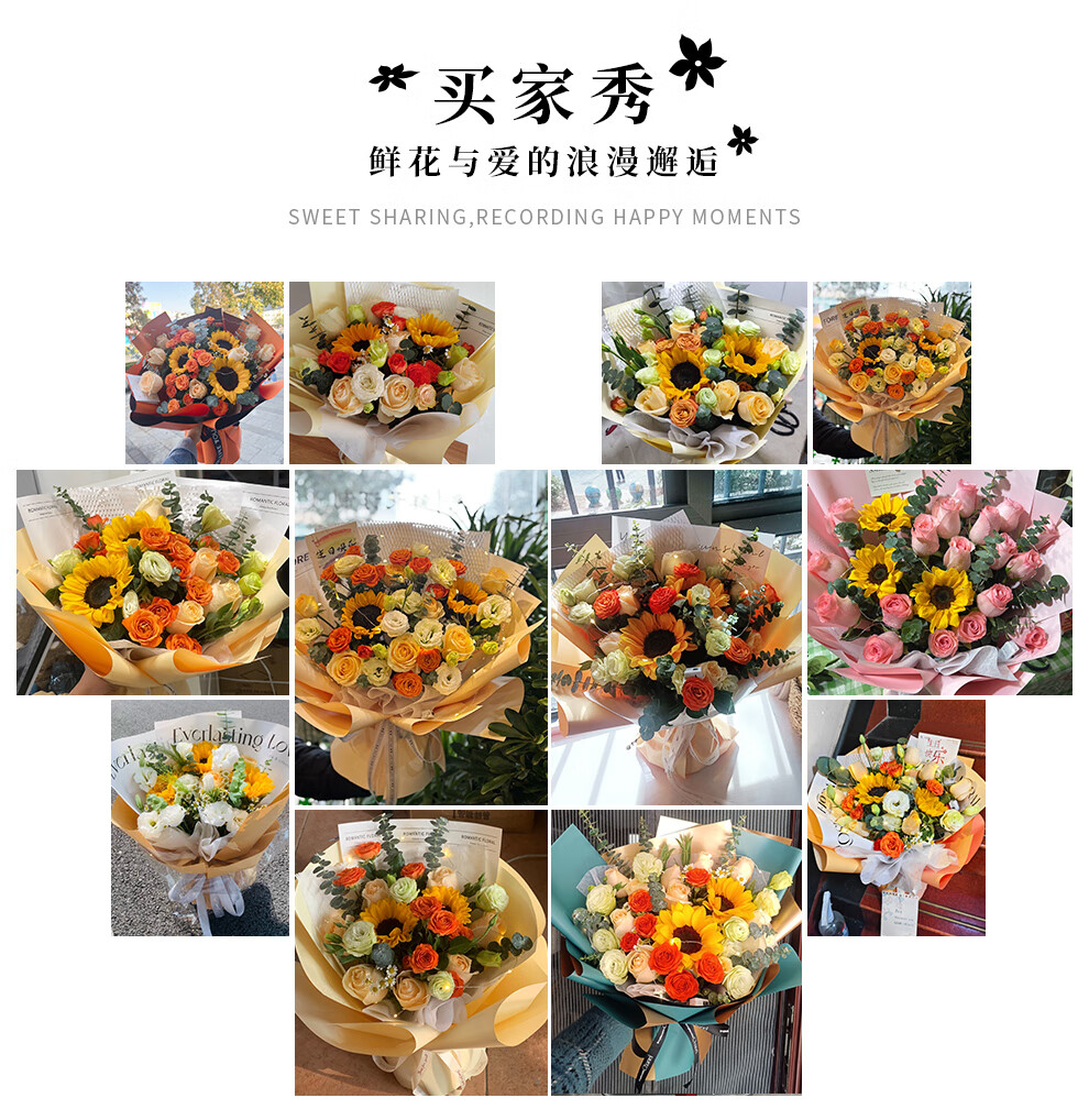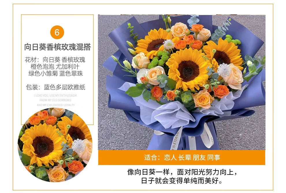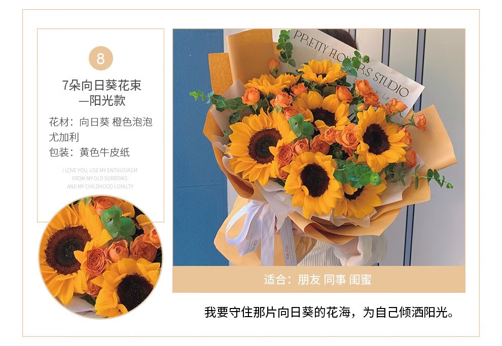 插画鲜花速递向日葵玫瑰混搭花束送女友老婆生日礼物全国同城配送 向日葵香槟混搭花束
