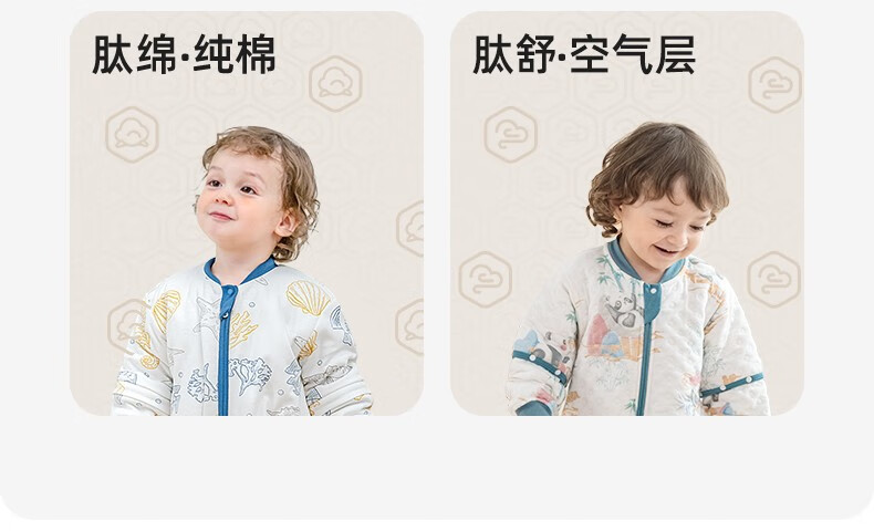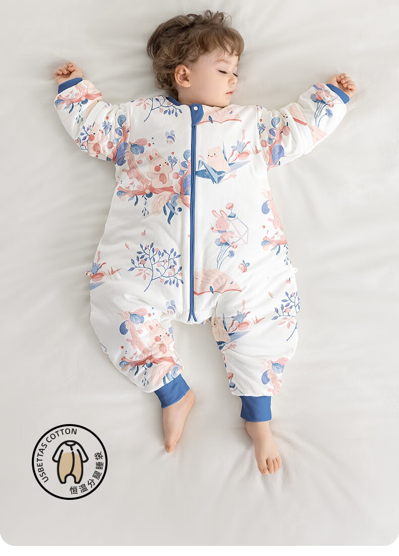 贝肽斯睡袋婴儿春秋新生儿宝宝分腿防踢被恒温大童防惊跳儿童保暖连体衣 春秋双层-感温(20-26℃)海鲸 M码 80-95cm(建议1.5-2.5岁