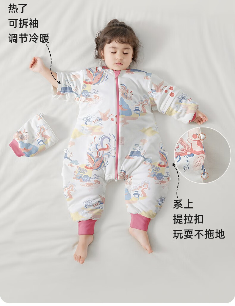 贝肽斯肽柔婴儿睡袋春秋冬新生儿童防踢被分腿感温标识春夏季防惊跳包被 春秋双层-感温(20-26℃)飞驰 M码 80-95cm(建议1.5-2.5岁)