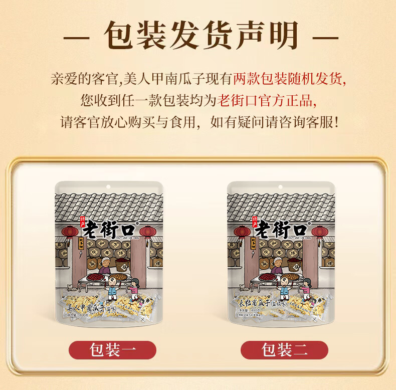 老街口长粒美人甲500g新疆南瓜子南瓜籽盐味原味小包装炒货熟零食a 美人甲南瓜子(盐味)500g*2袋