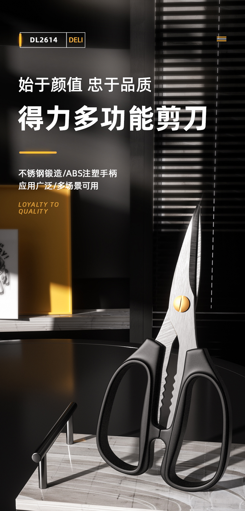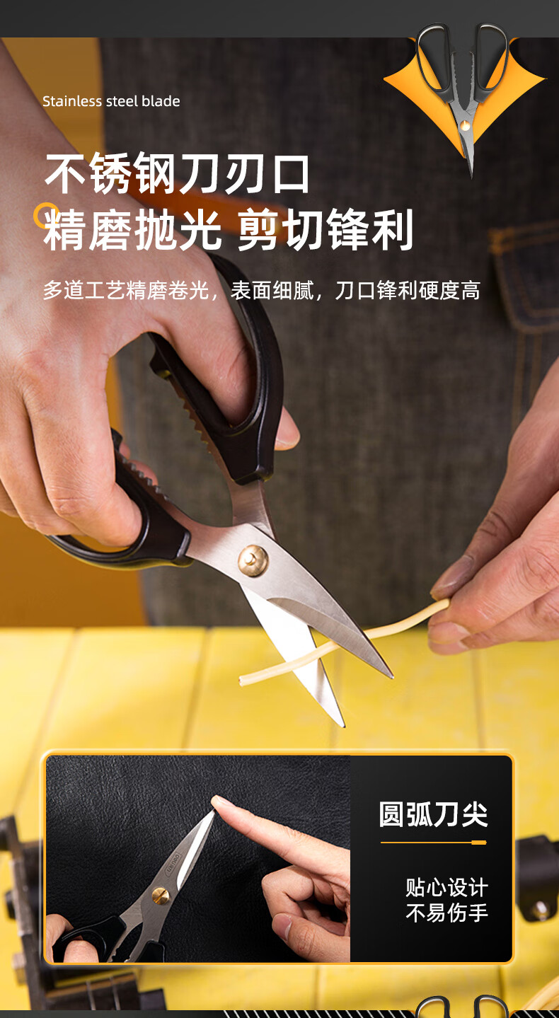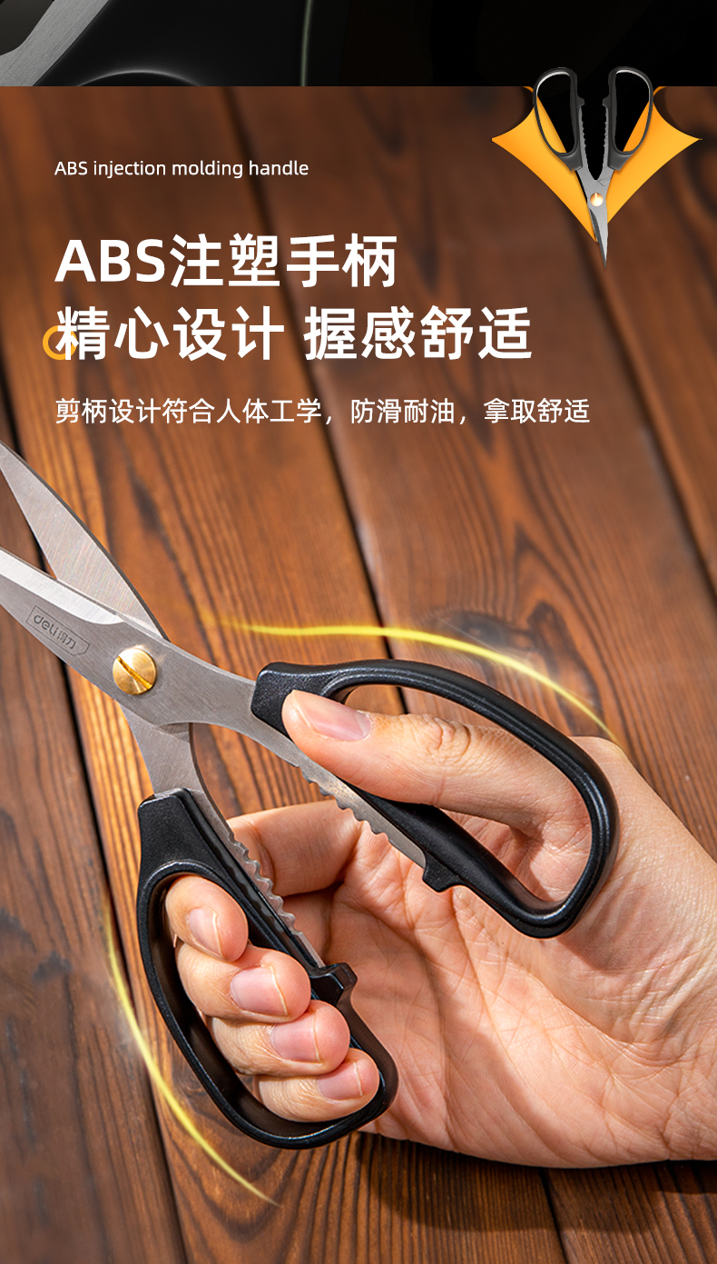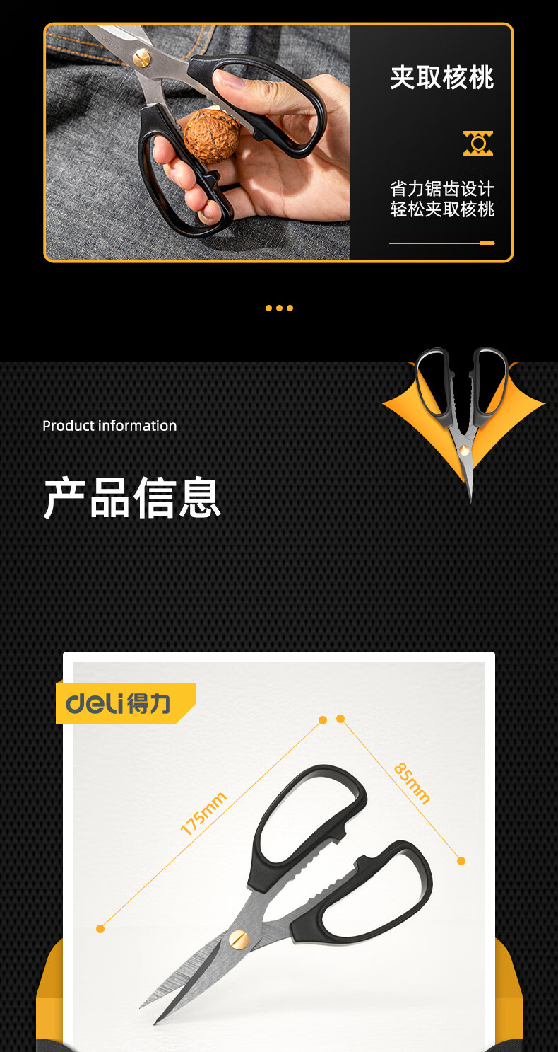 得力(deli)家用强力剪刀不锈钢多功能厨房剪民用剪手动工具175mm DL2614