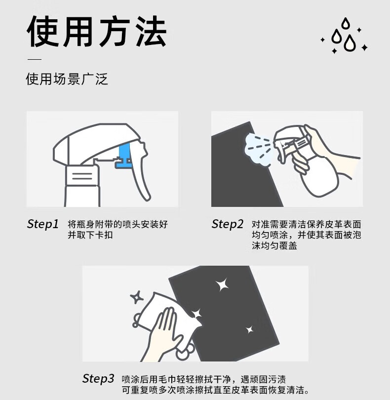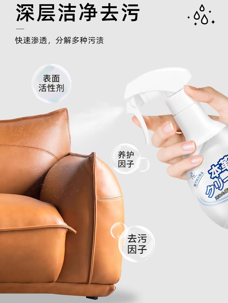 AILUKI日本高端皮革皮具清洁剂沙发去污保养真皮护理沙发清洗剂皮衣皮具 300ml皮革清洁剂*1 深层清洁,全面养护