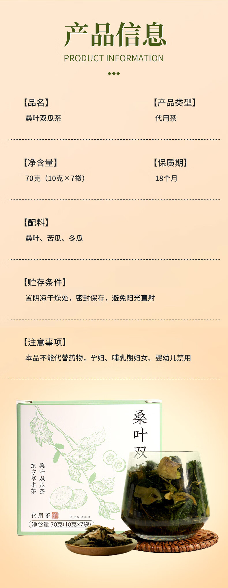 Vecin桑叶双瓜茶 整料组合茶 冬瓜苦瓜茶 桑叶茶源头 70克(10克*7袋)