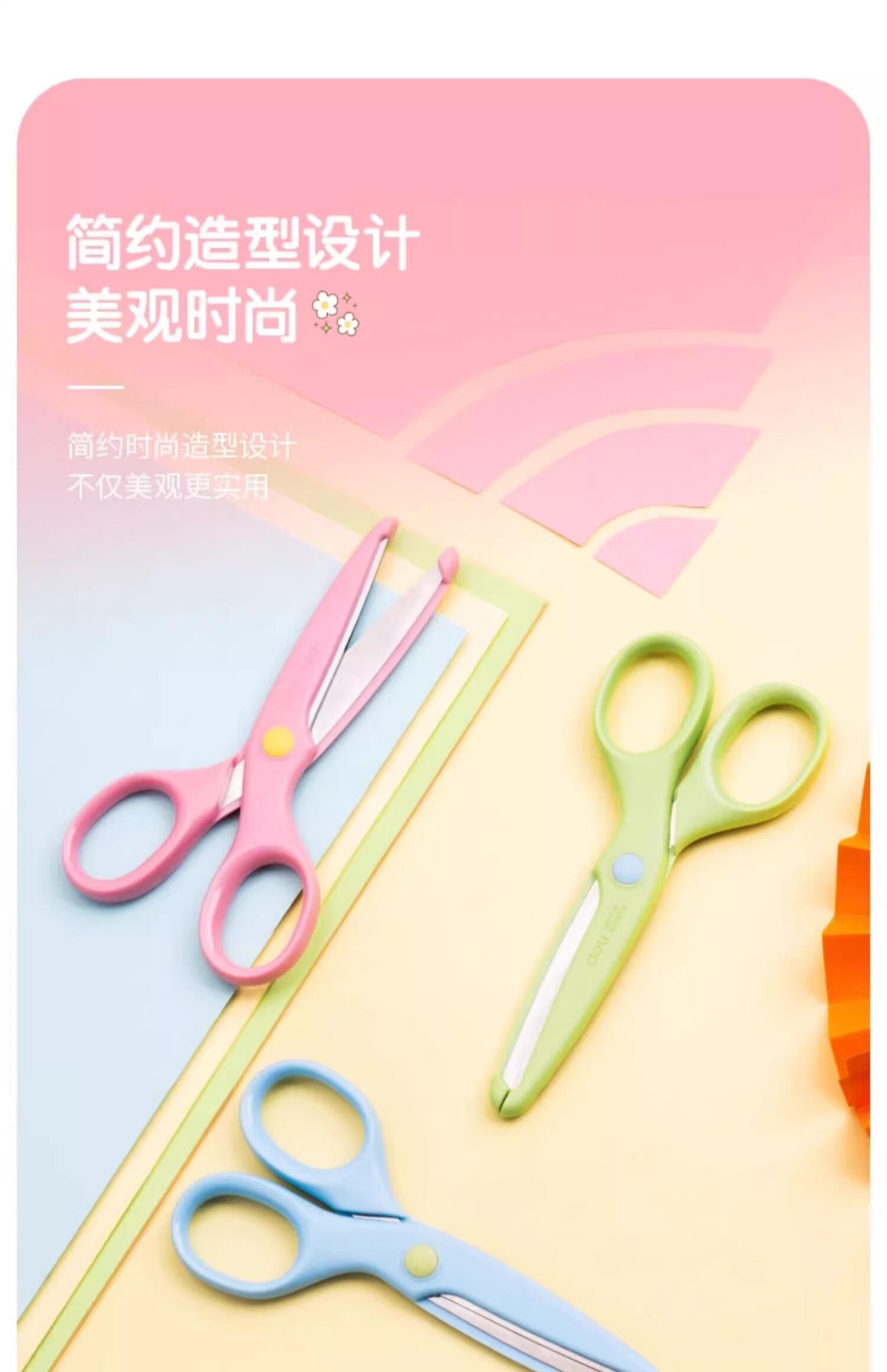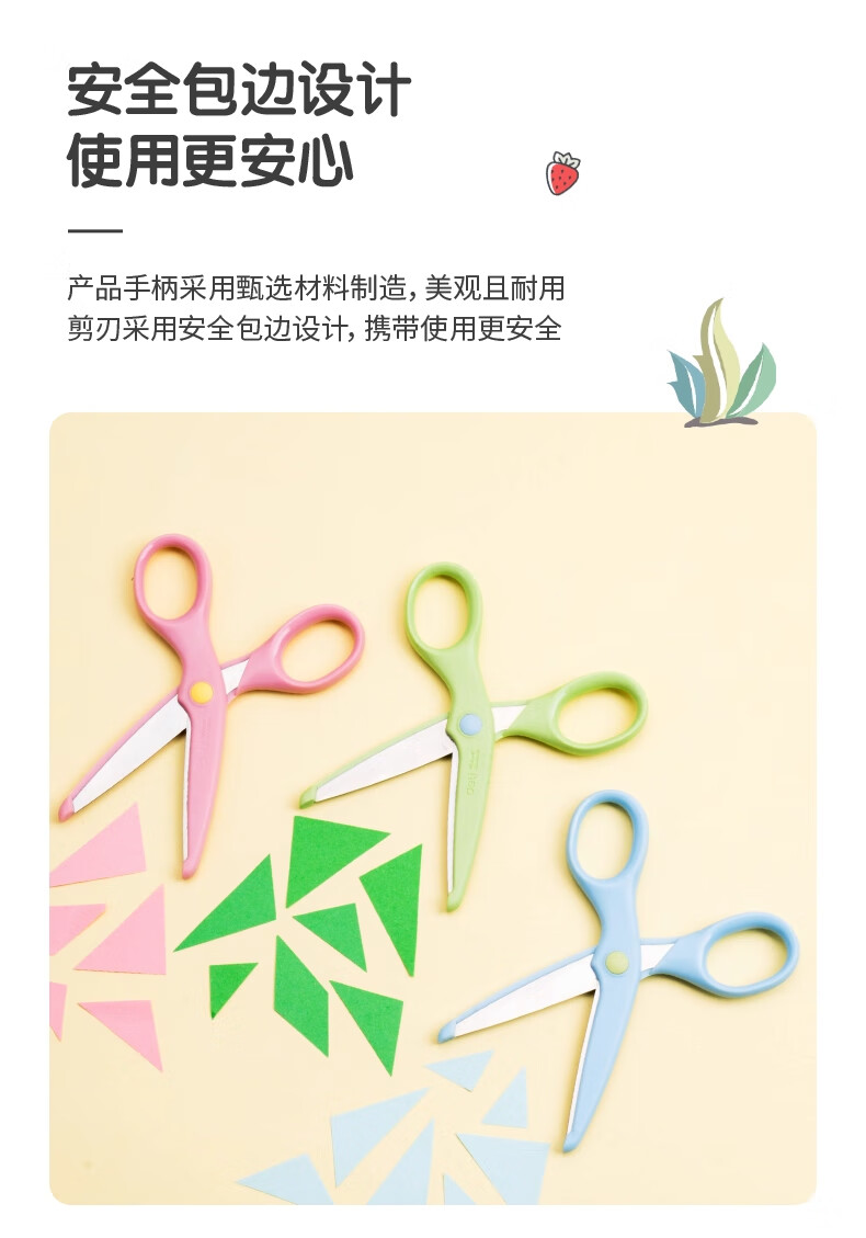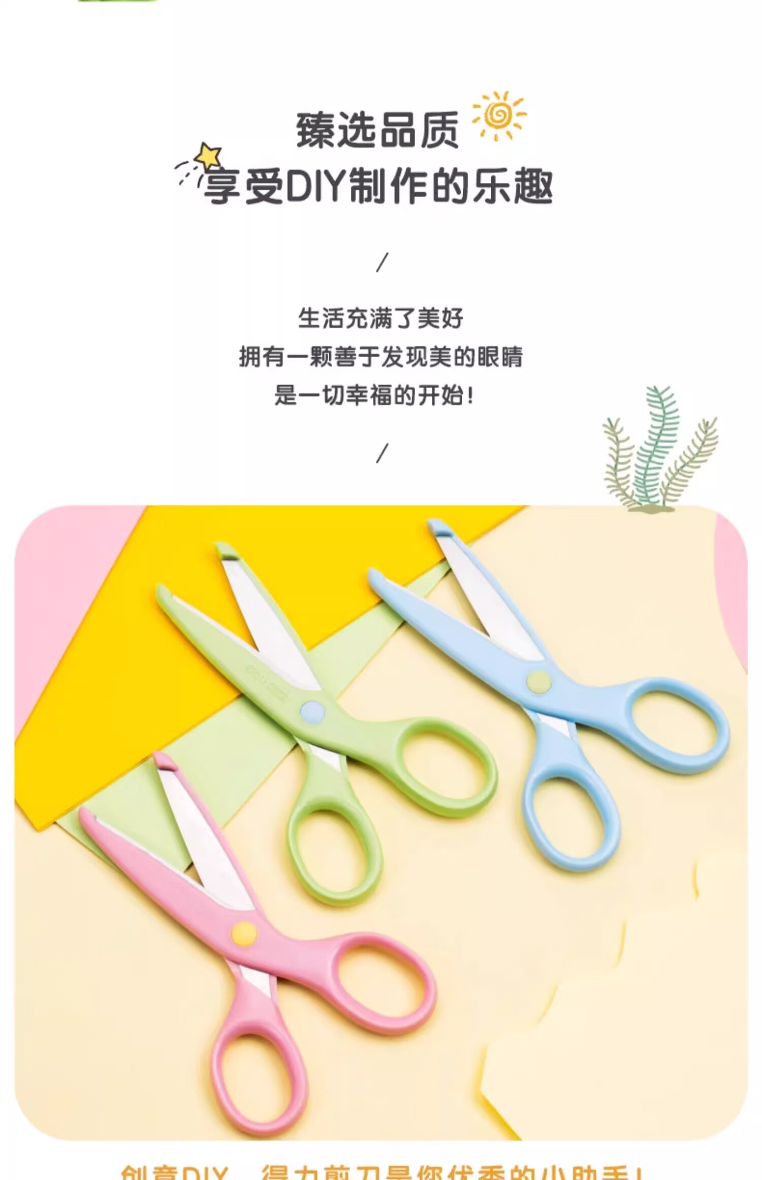 得力儿童剪刀手工安全剪刀小学生diy剪纸折纸剪子美术专用幼儿园手工专用圆头便携式圆头塑料剪子 1把【包边款】云朵粉 无规格